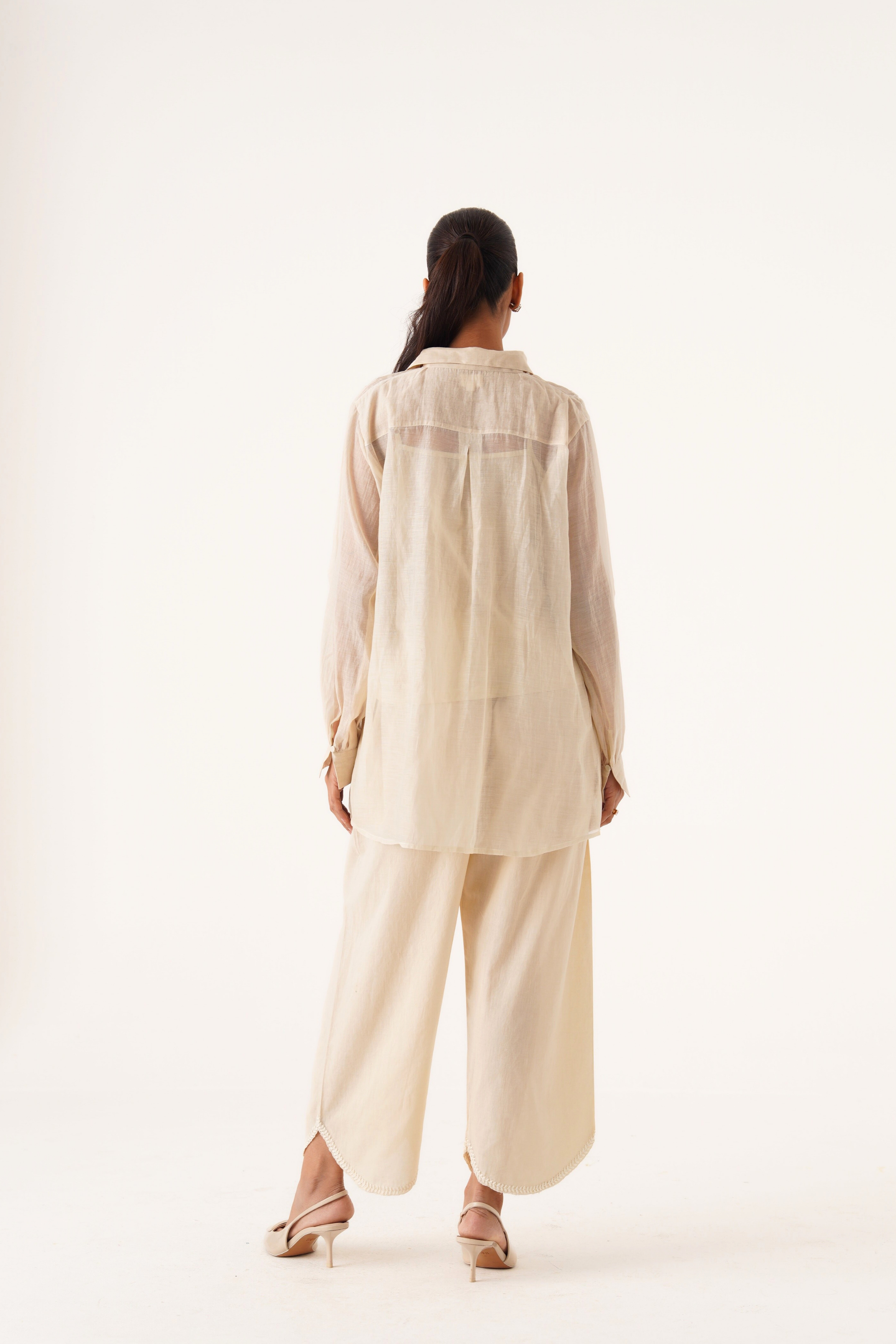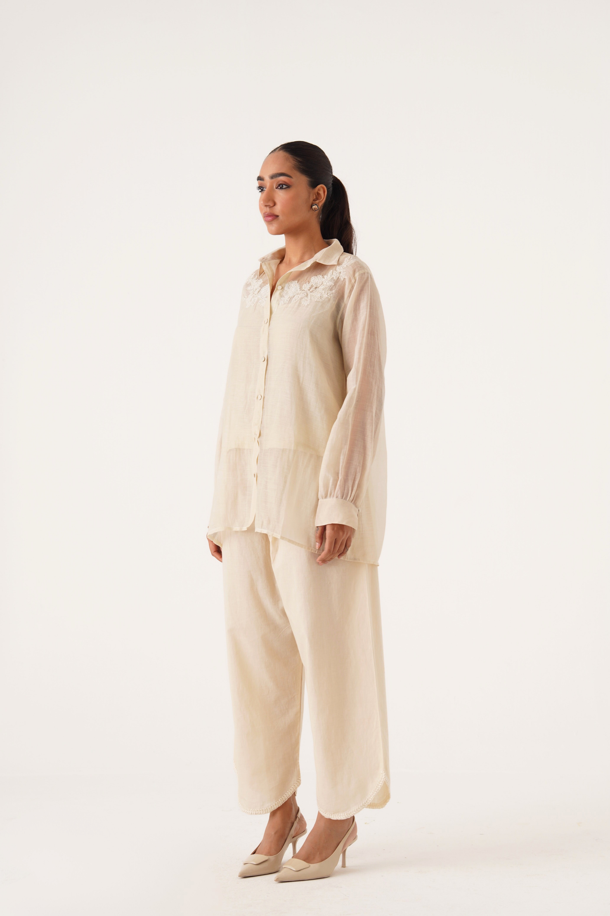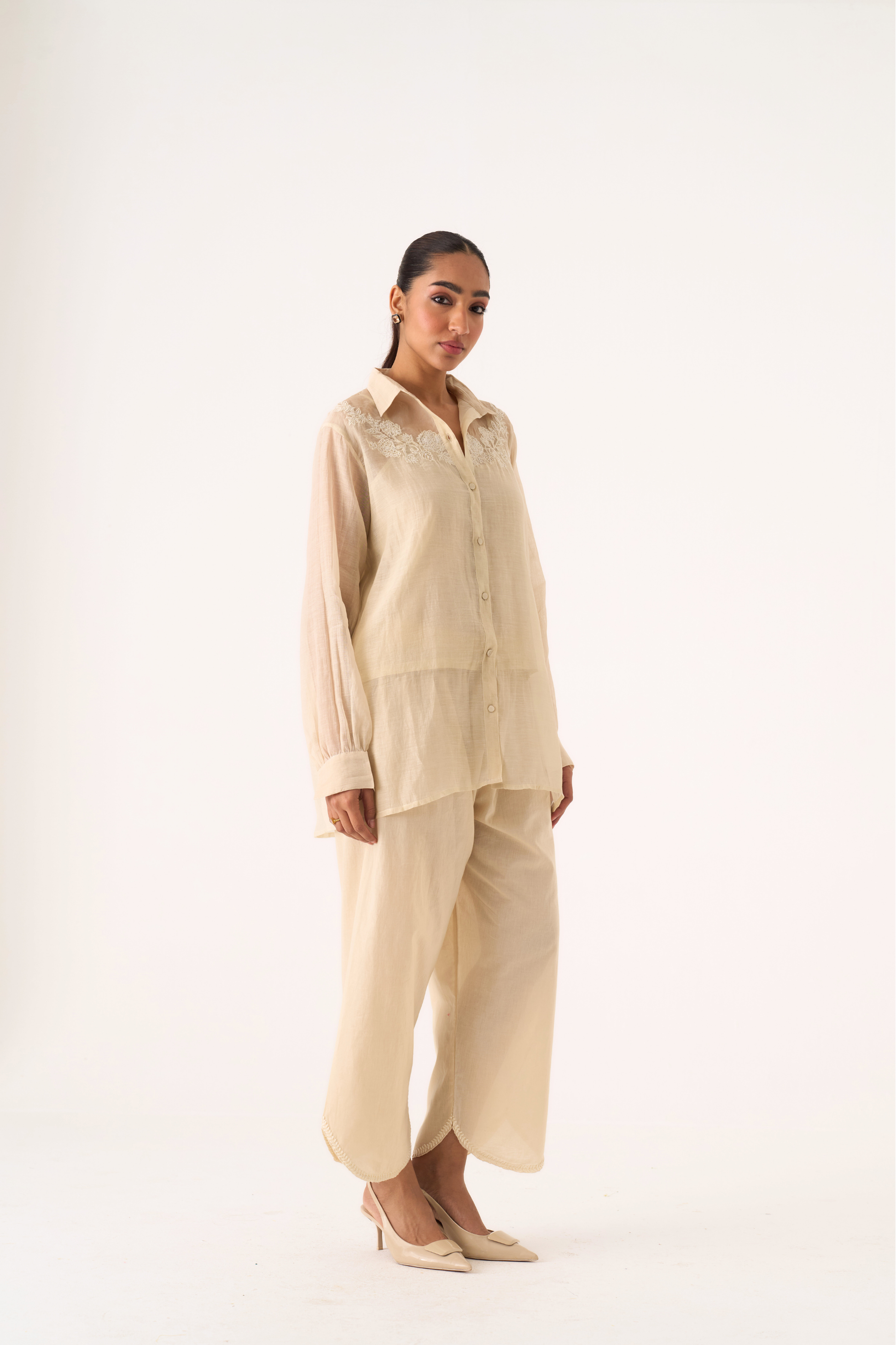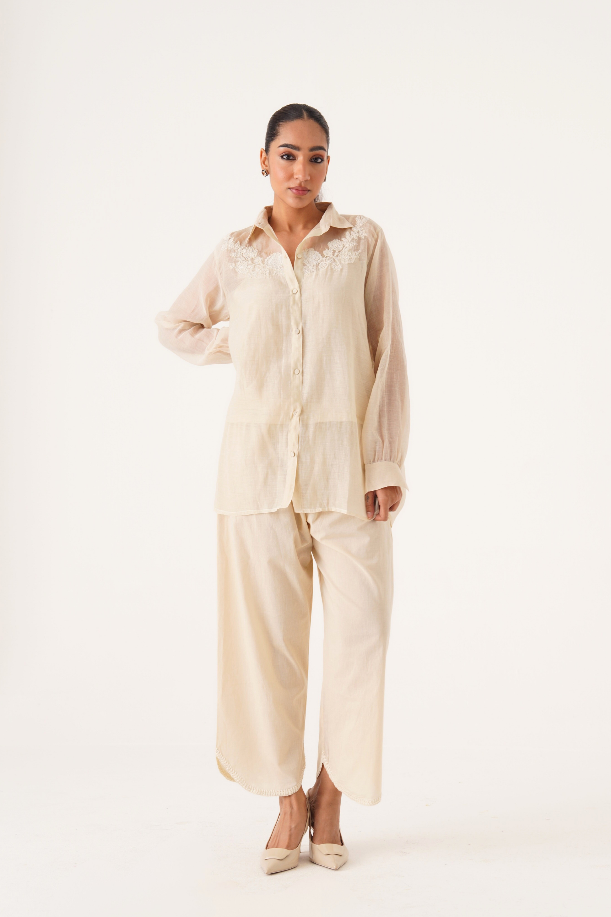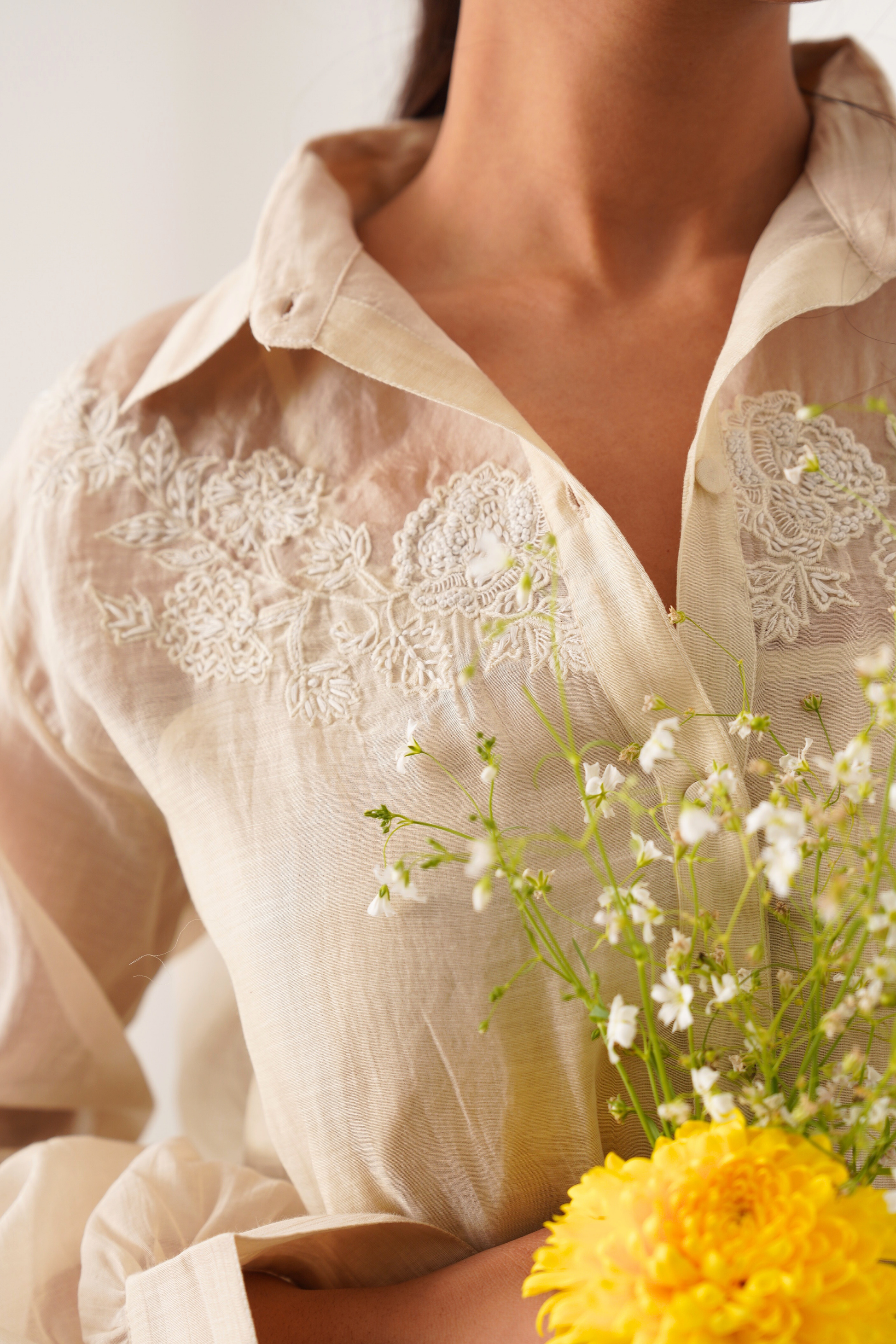 Charlotte ivory hand embroidered chanderi-organza shirt