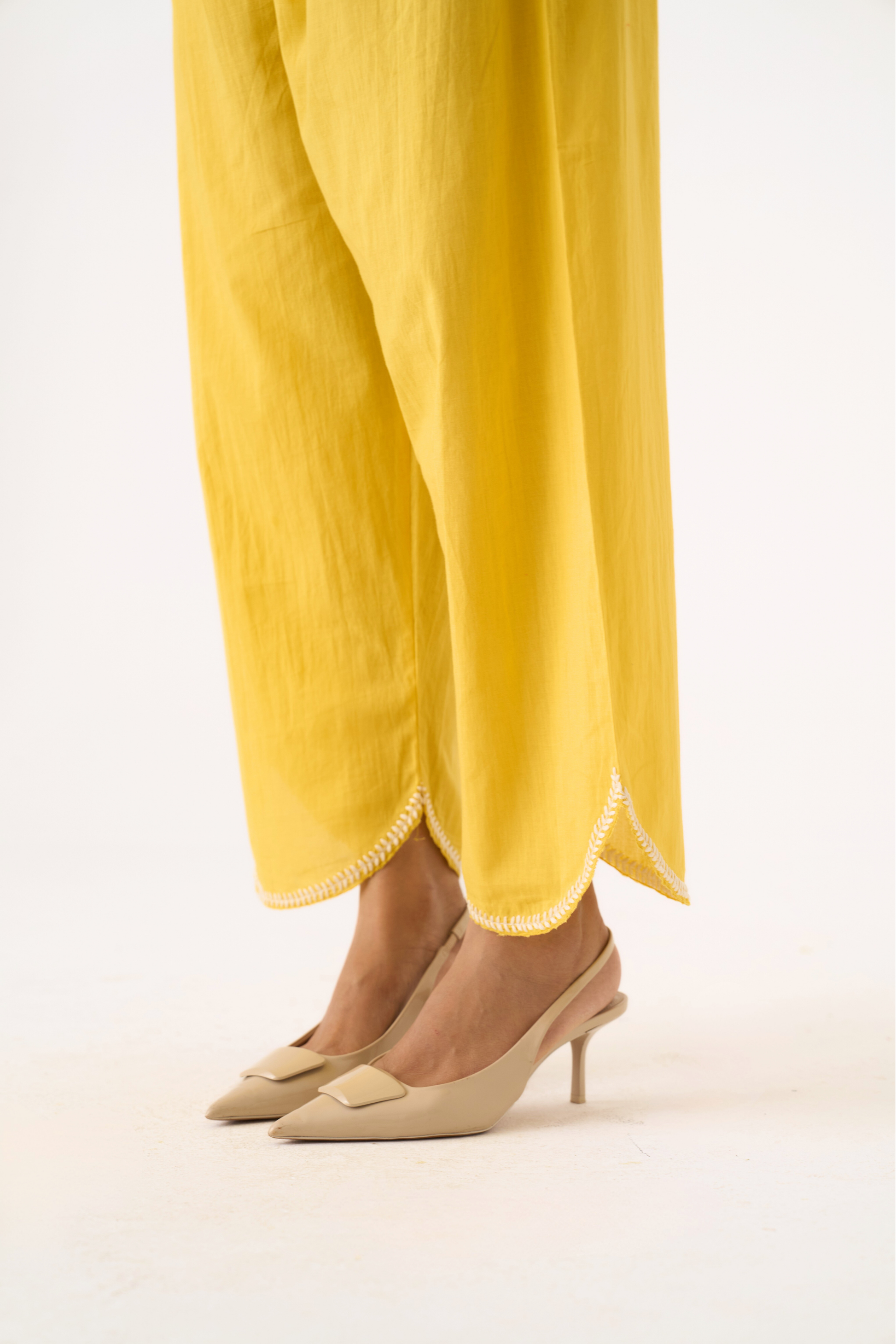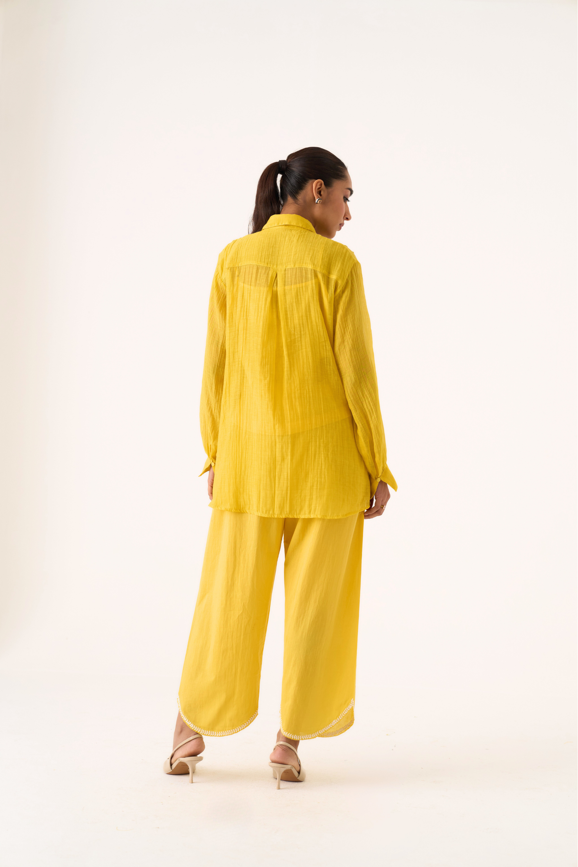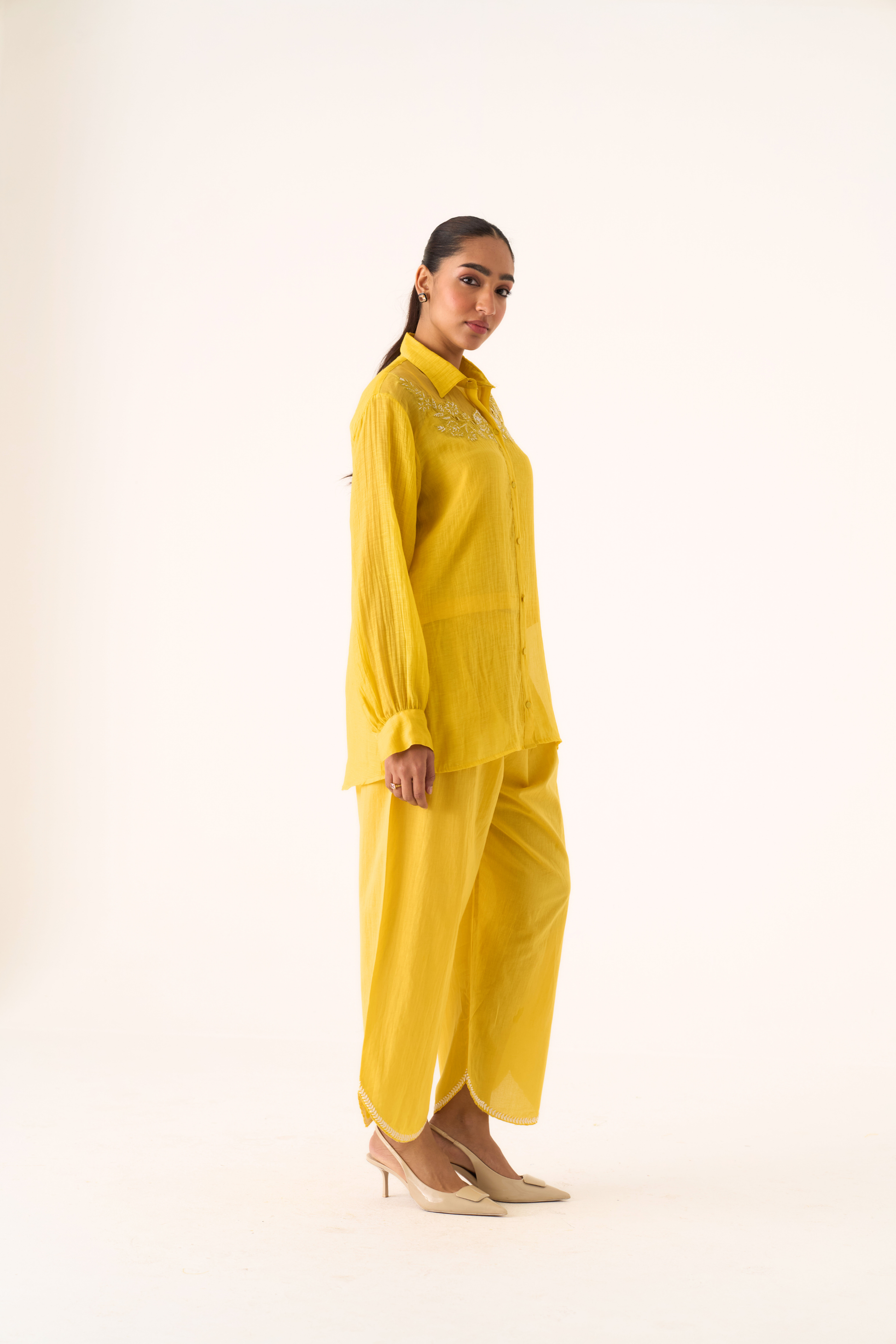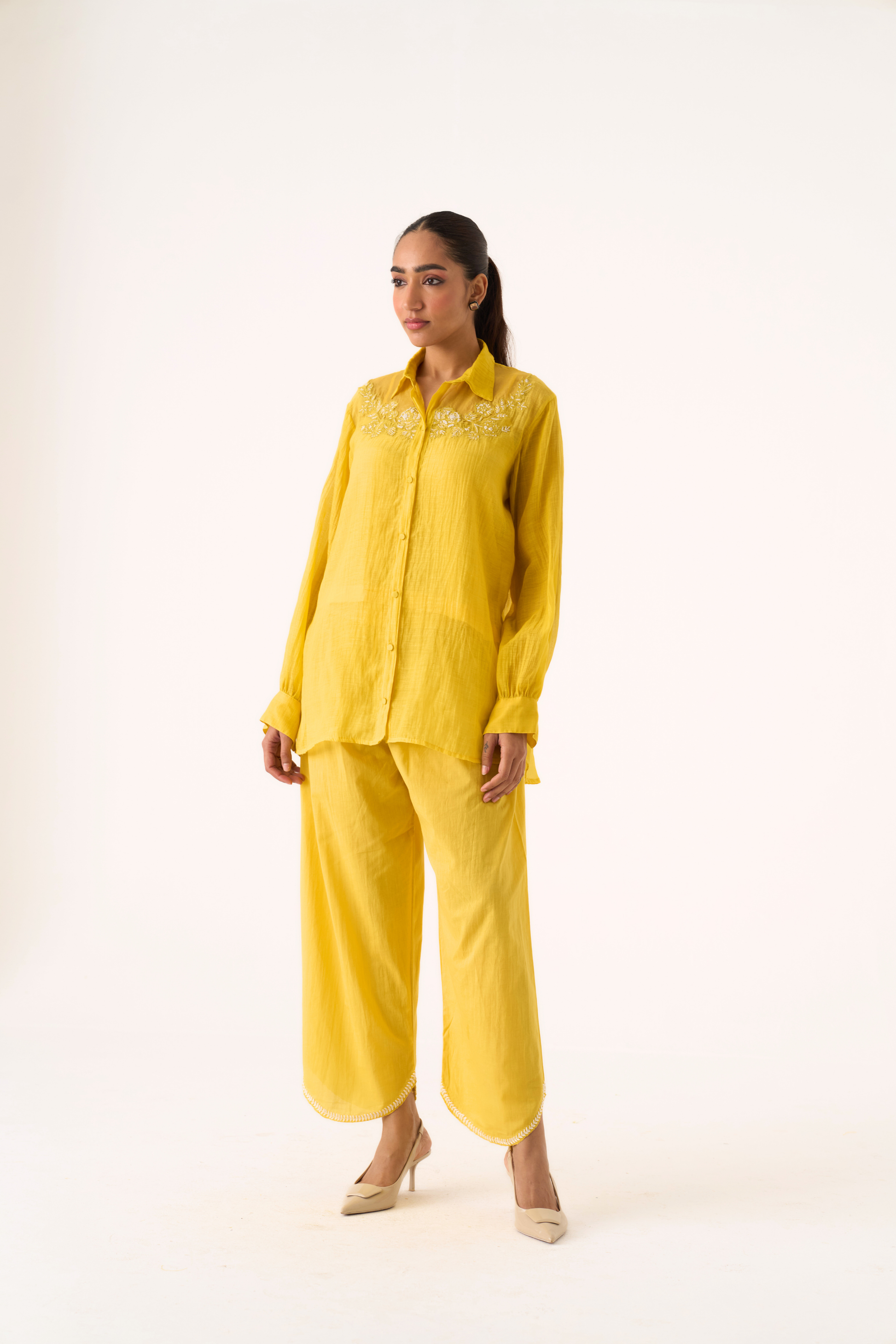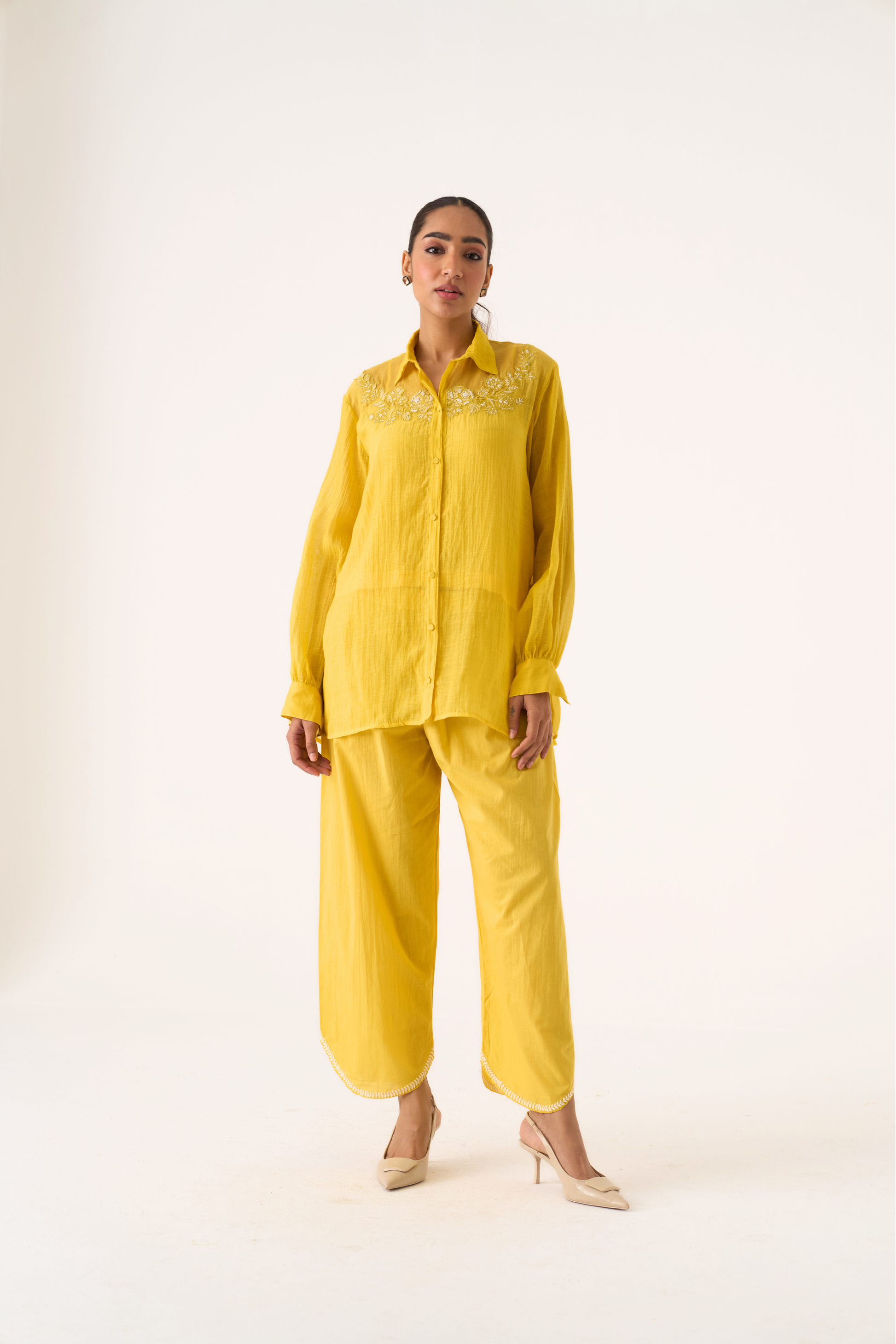 Charlotte yellow hand embroidered chanderi-organza shirt