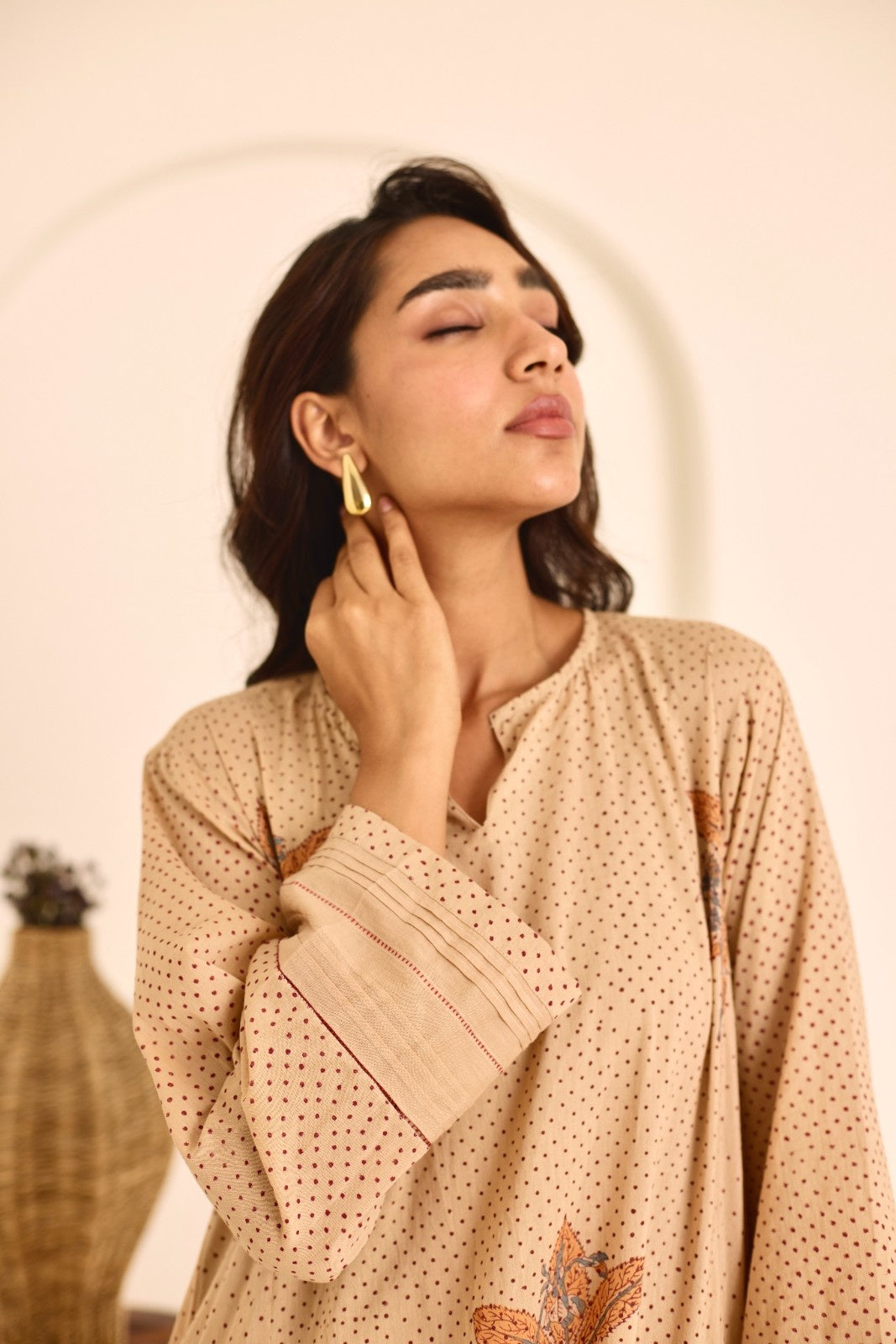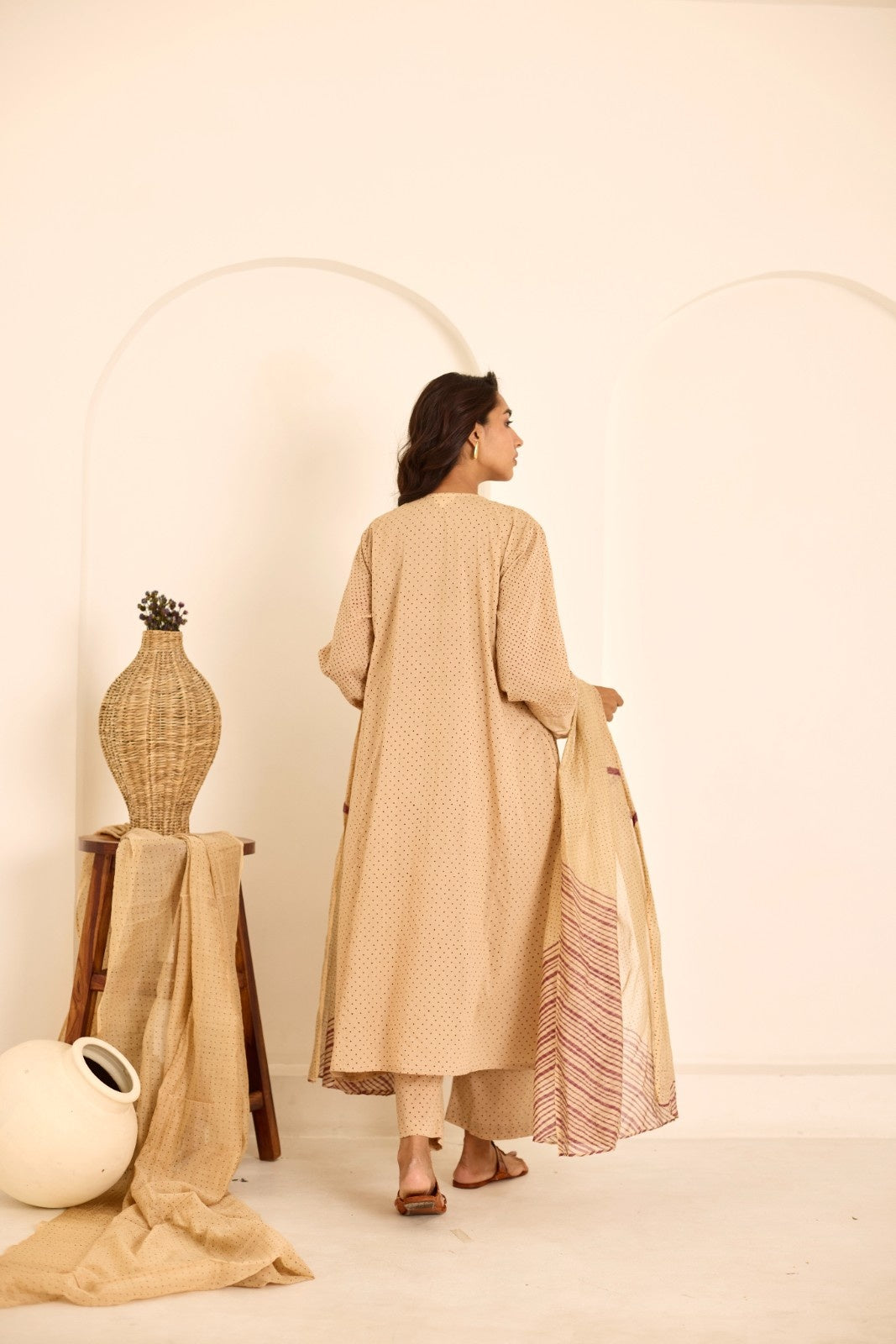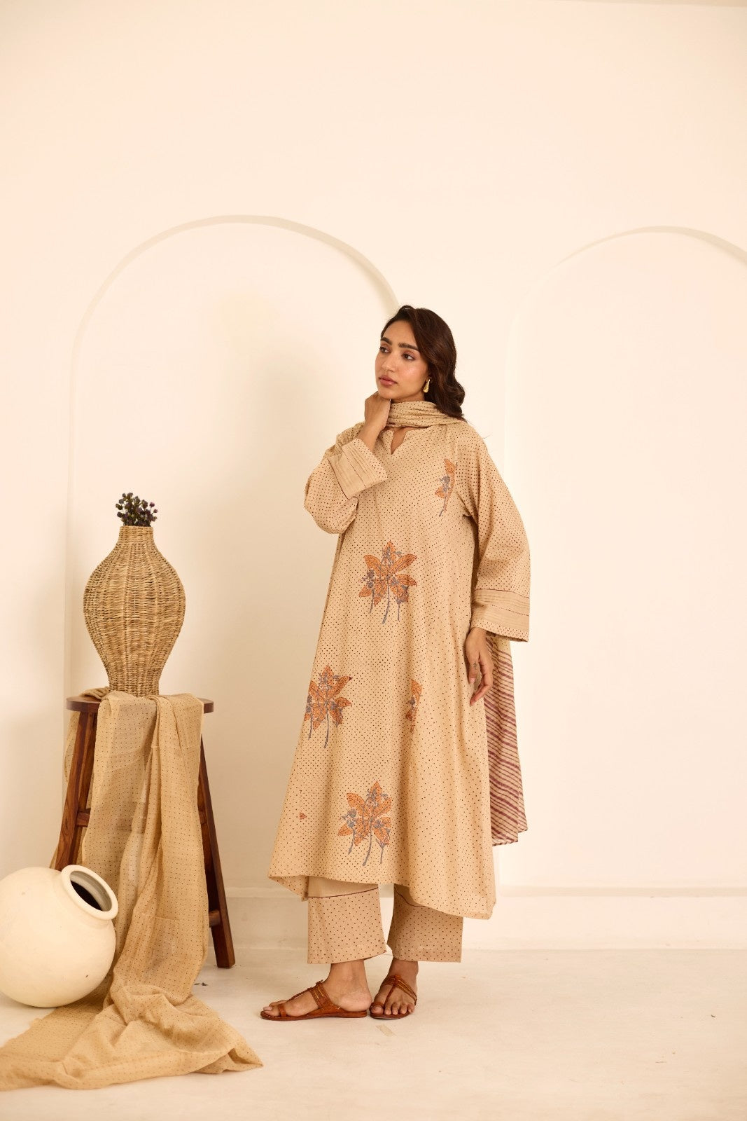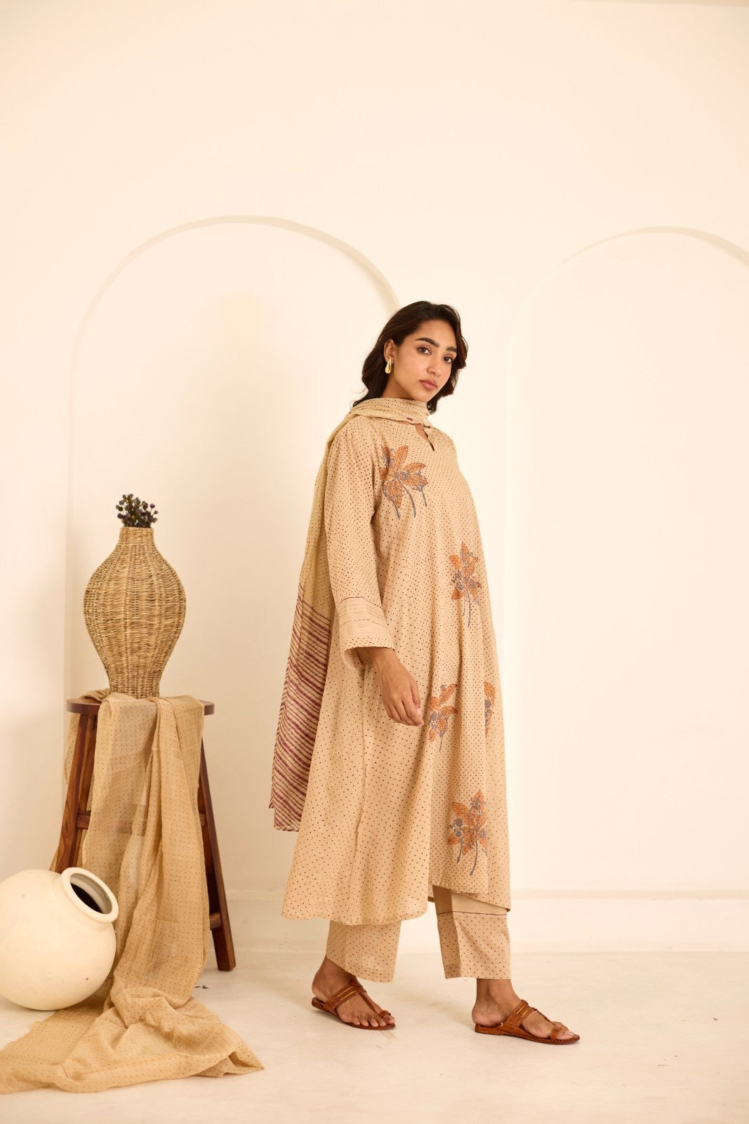 Deeya tea hand block printed mulmul kalidar kurta set (set of 3)