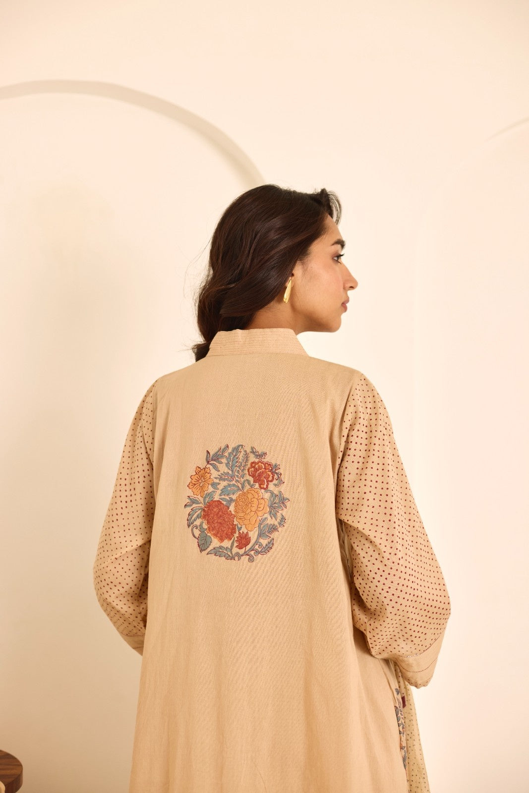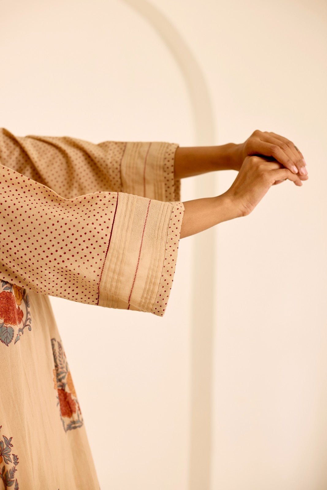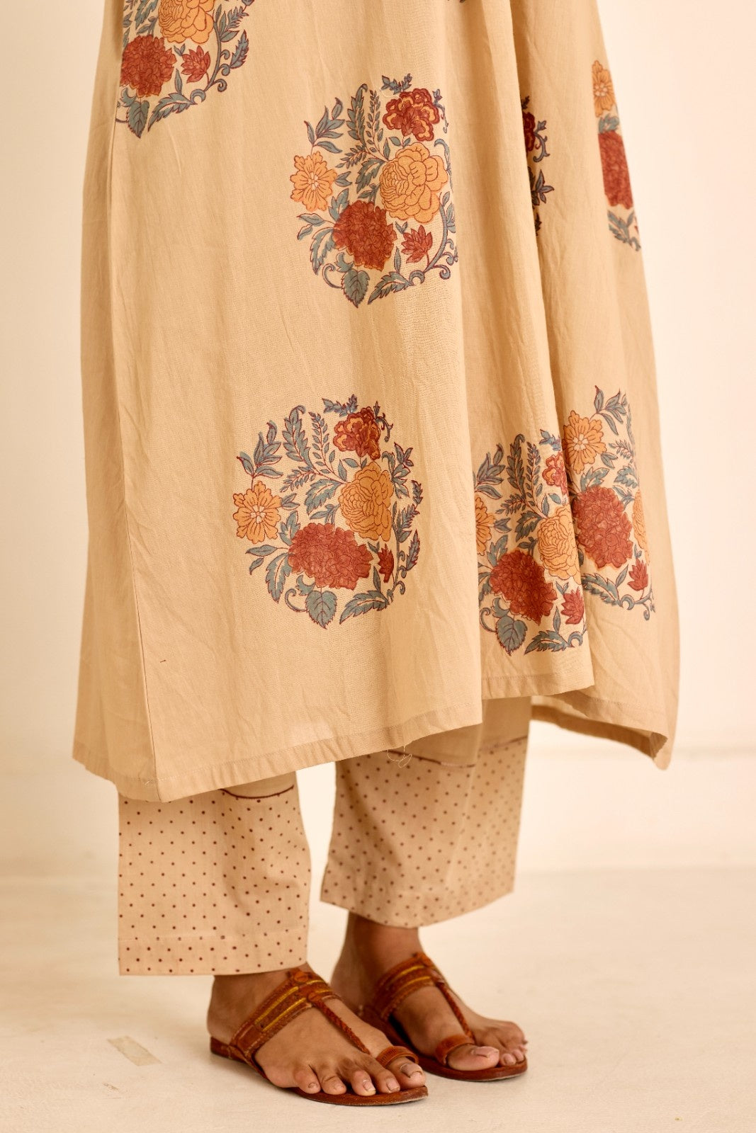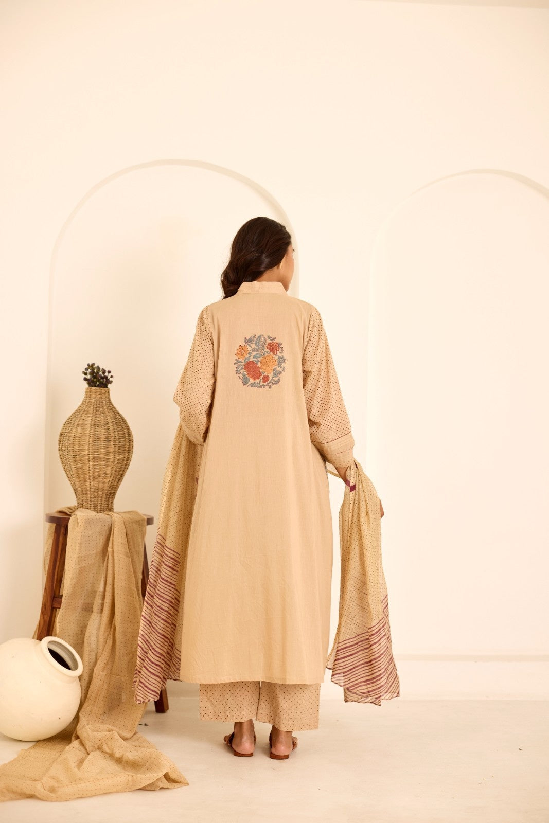 Deeya tea hand block printed mulmul kurta set (set of 3)
