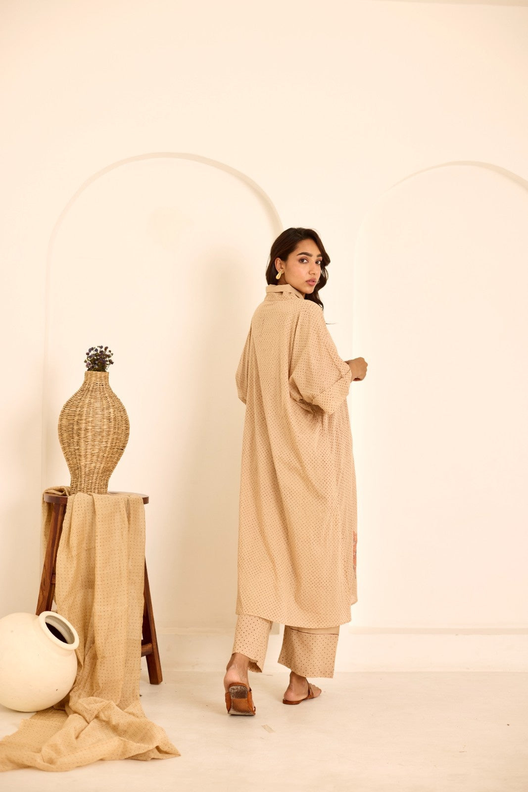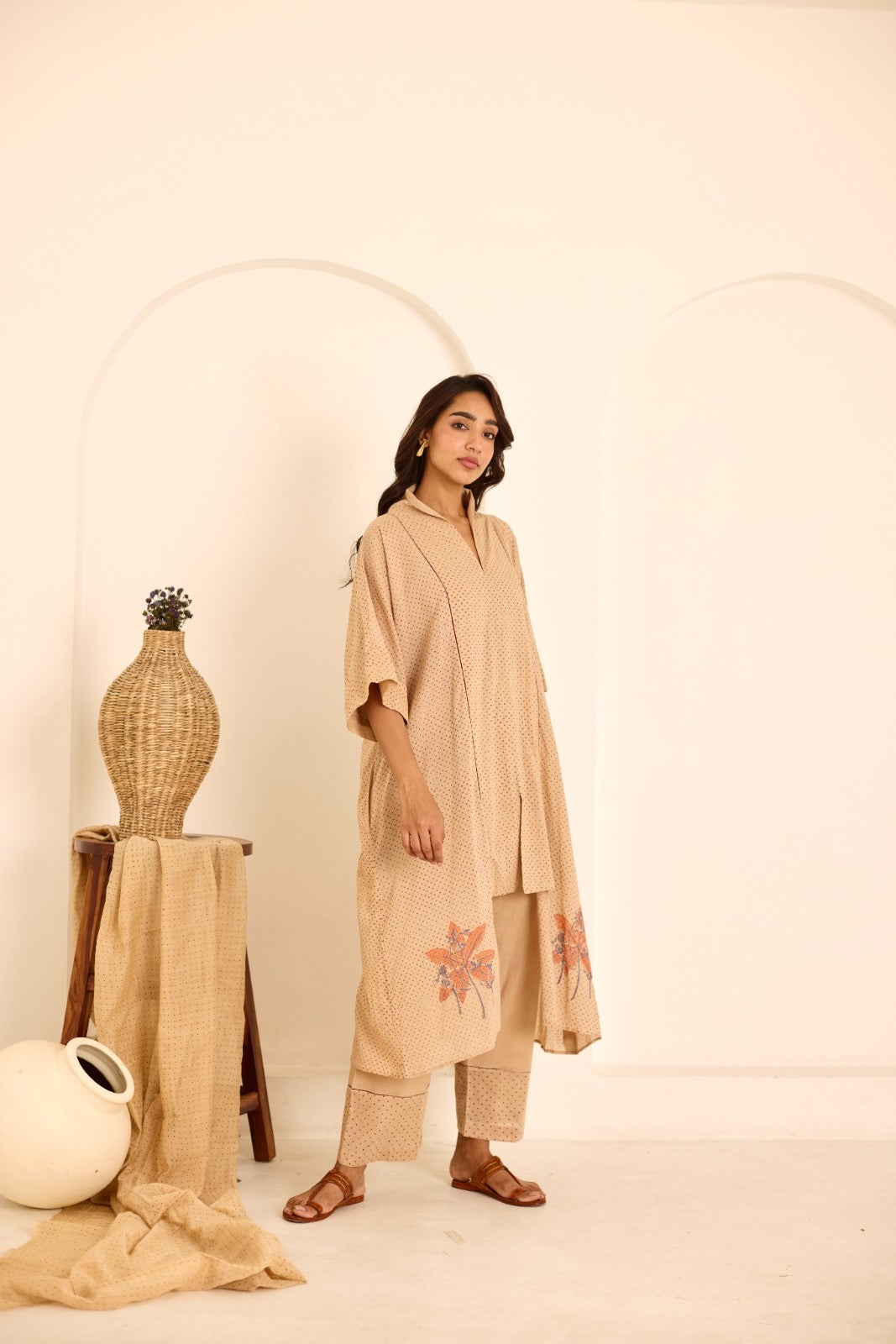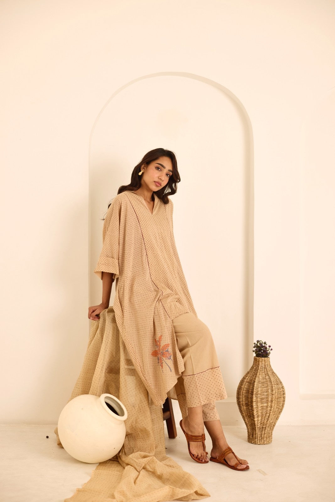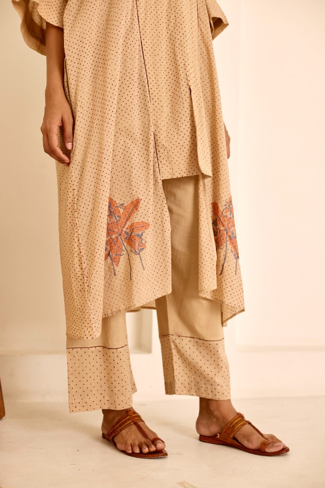 Deeya tea hand block printed with jaali embroidery mulmul kaftan (Pants separate)
