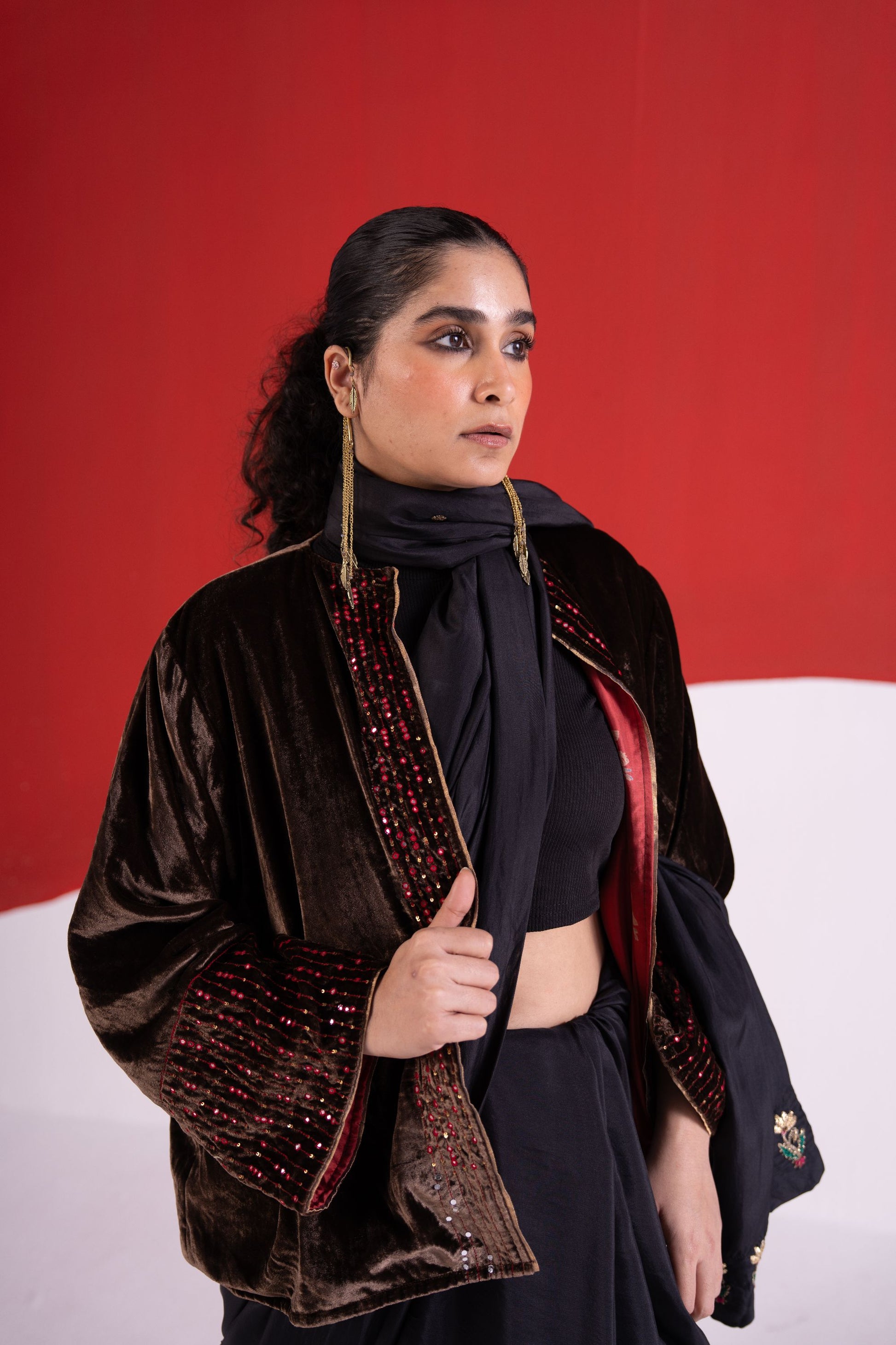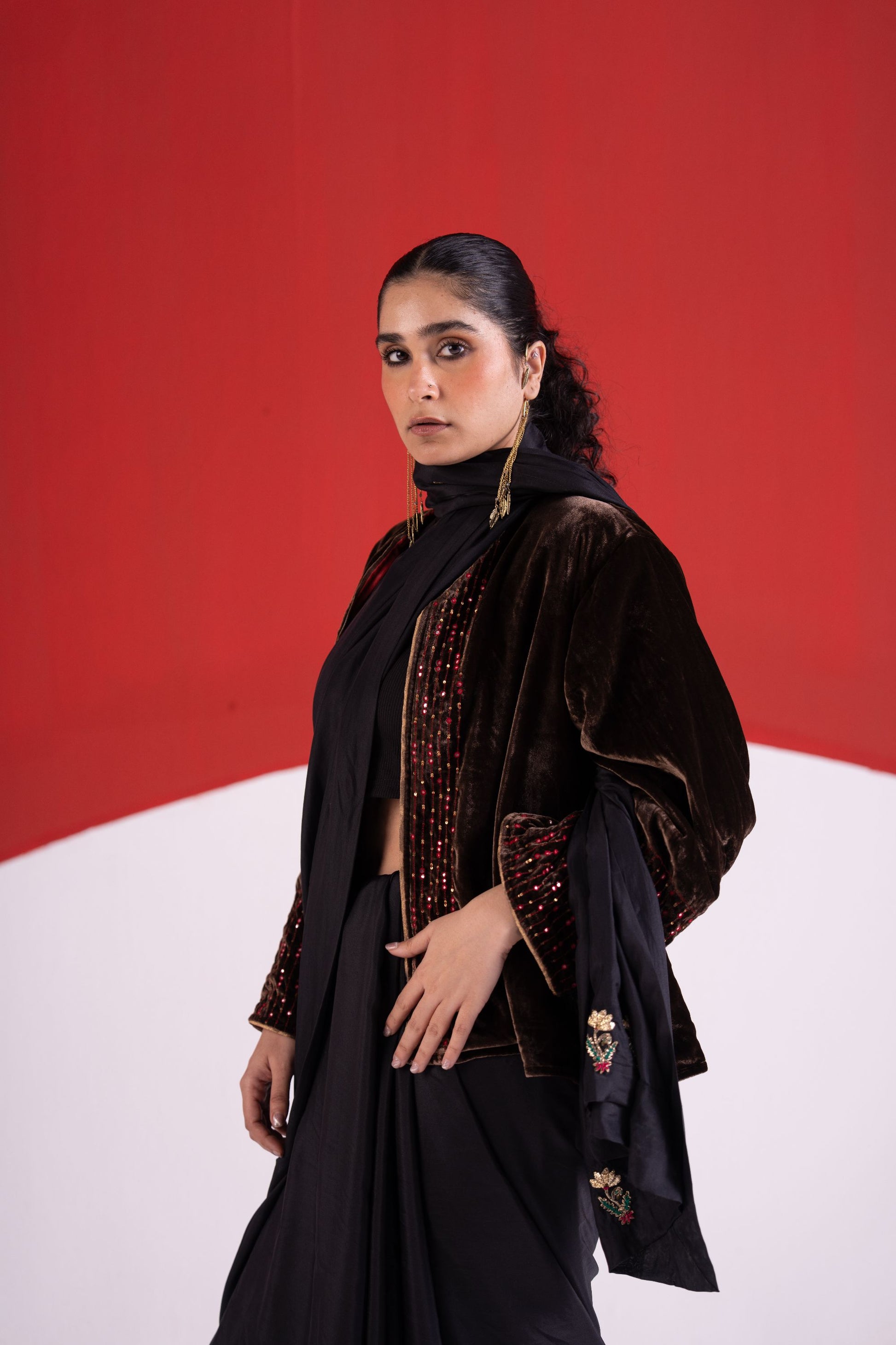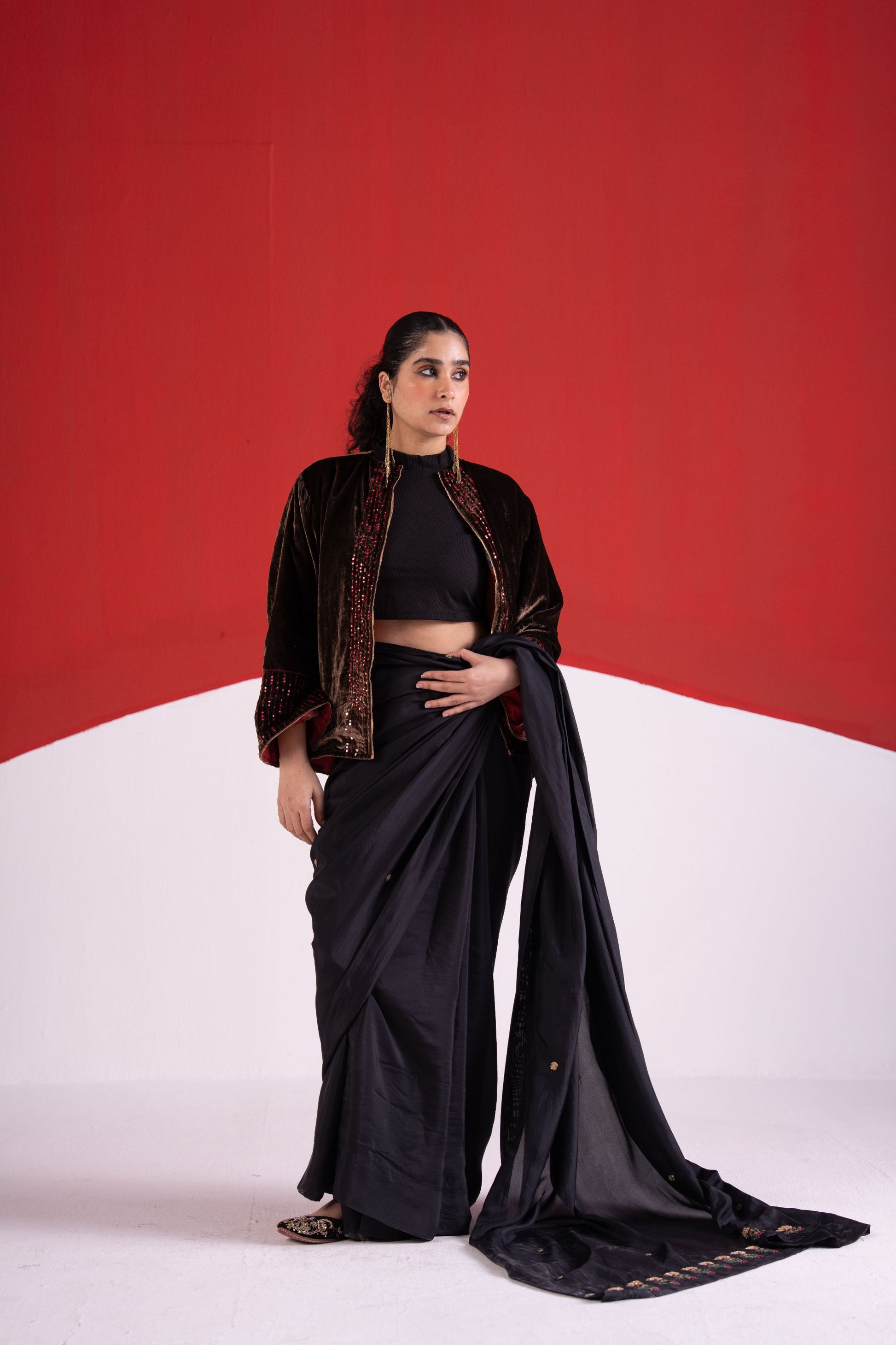 Fiza black dabka pitta and thread work silk saree