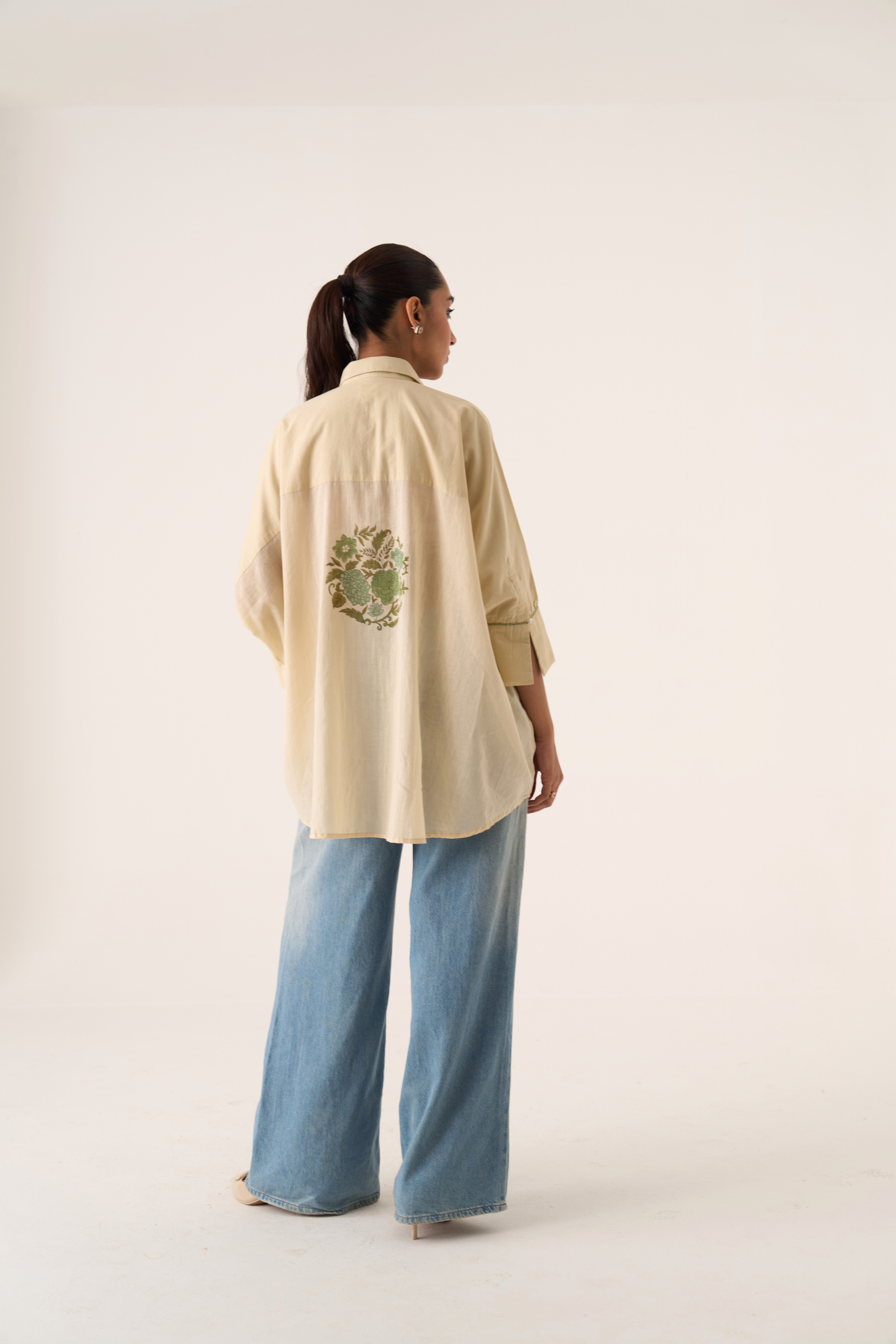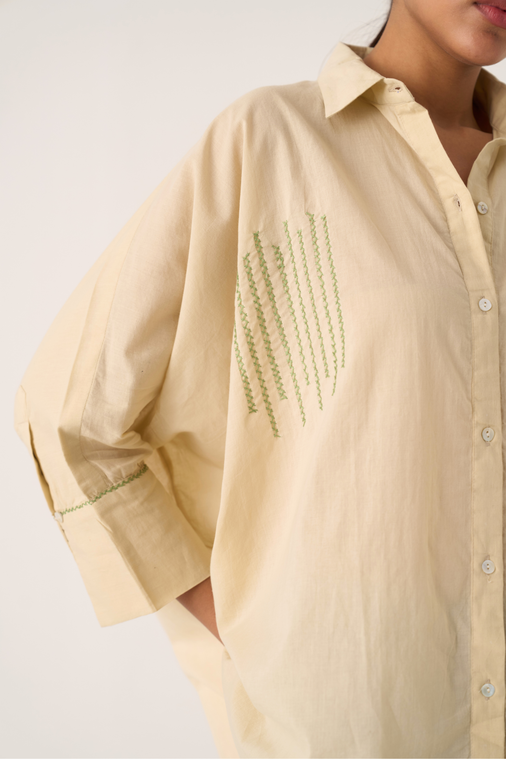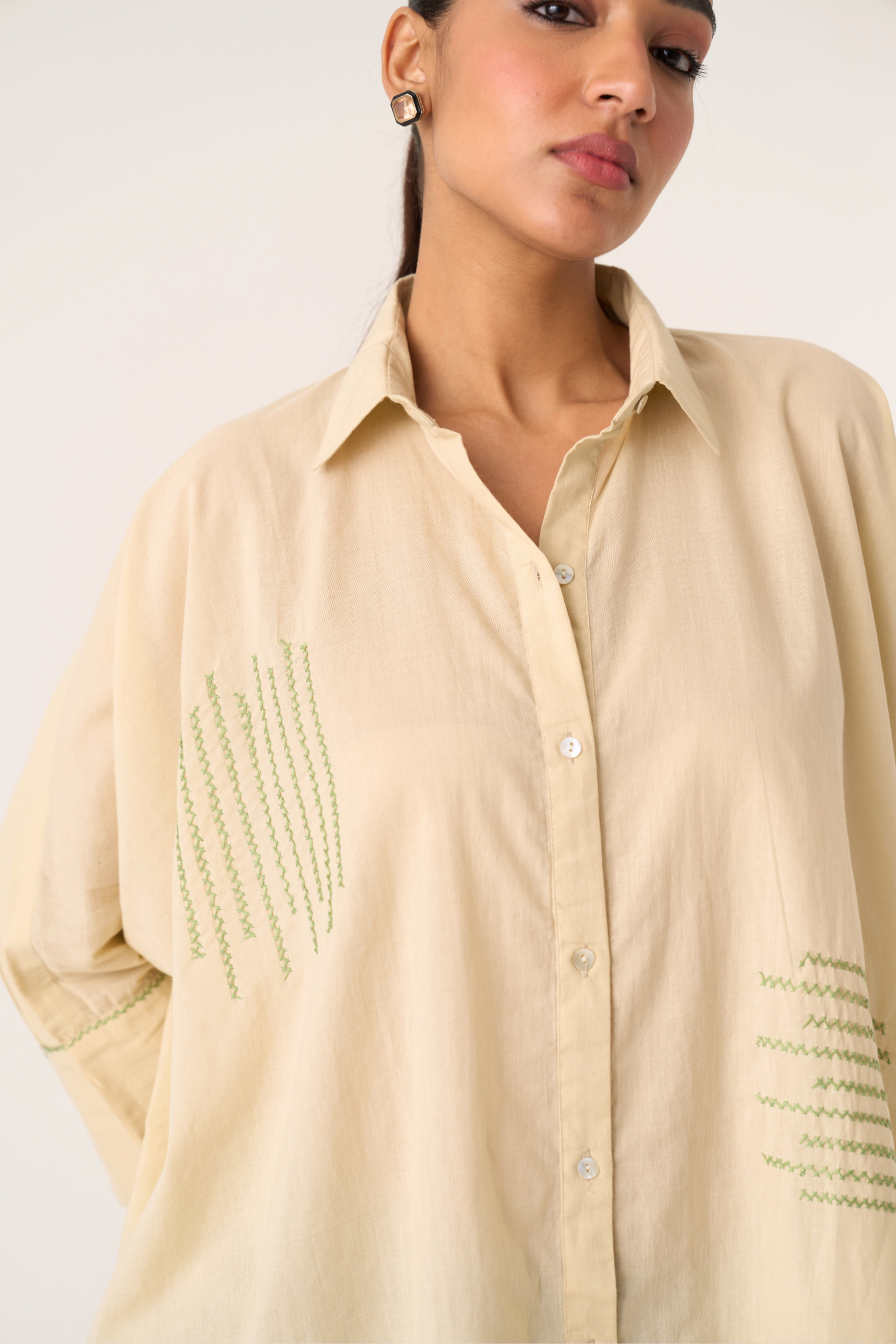 Gul ivory-celedon hand thread embroidered cotton kaftan shirt