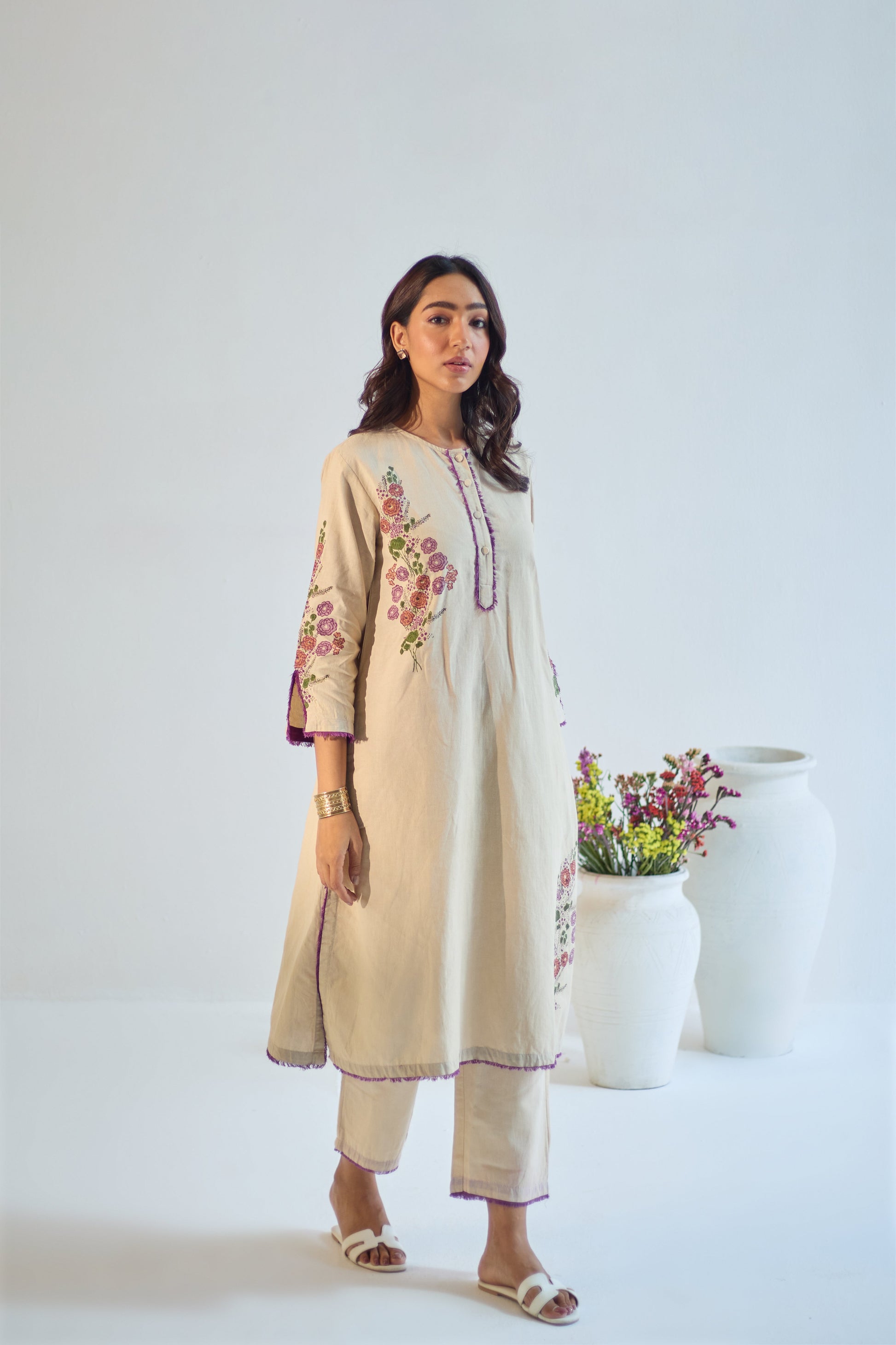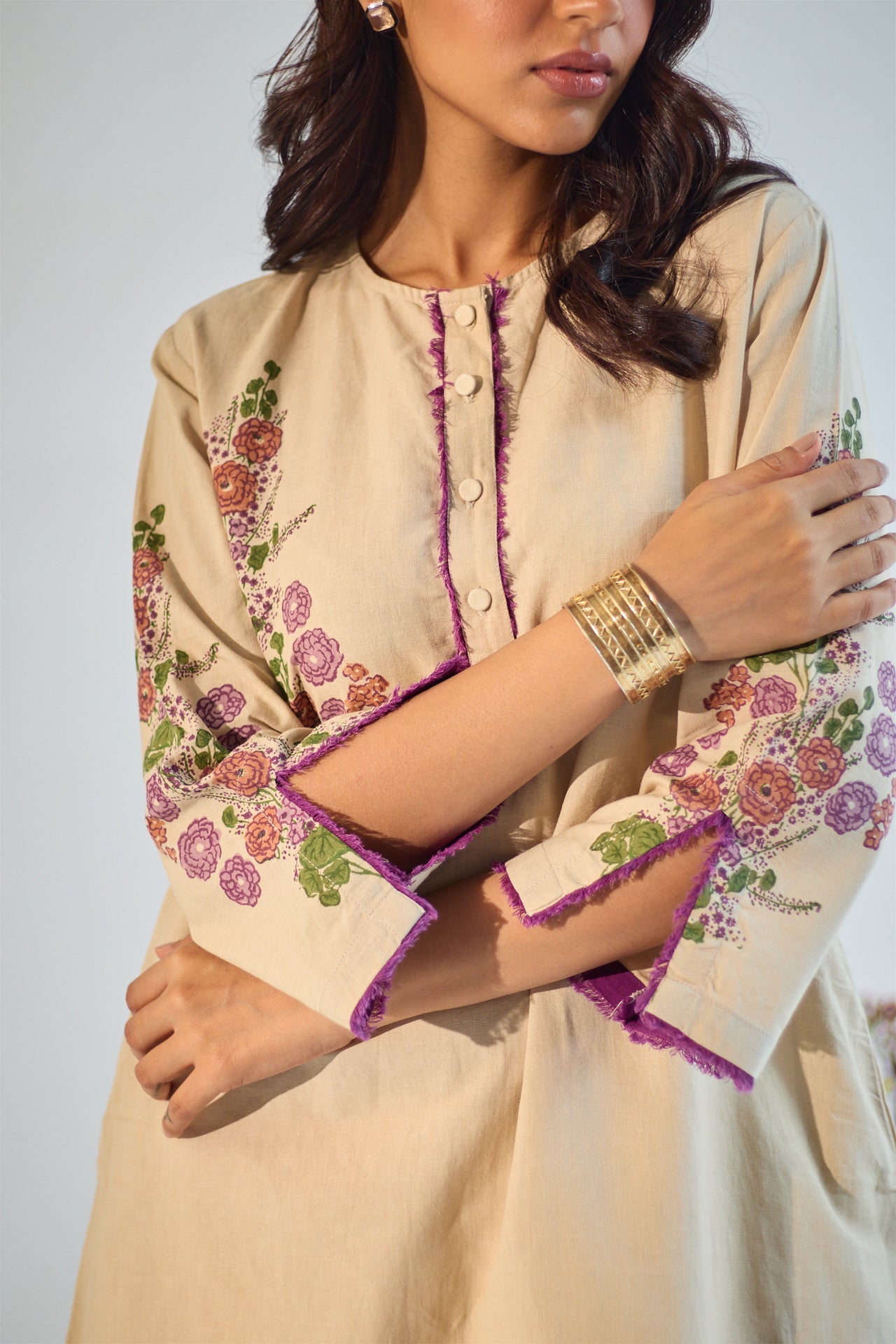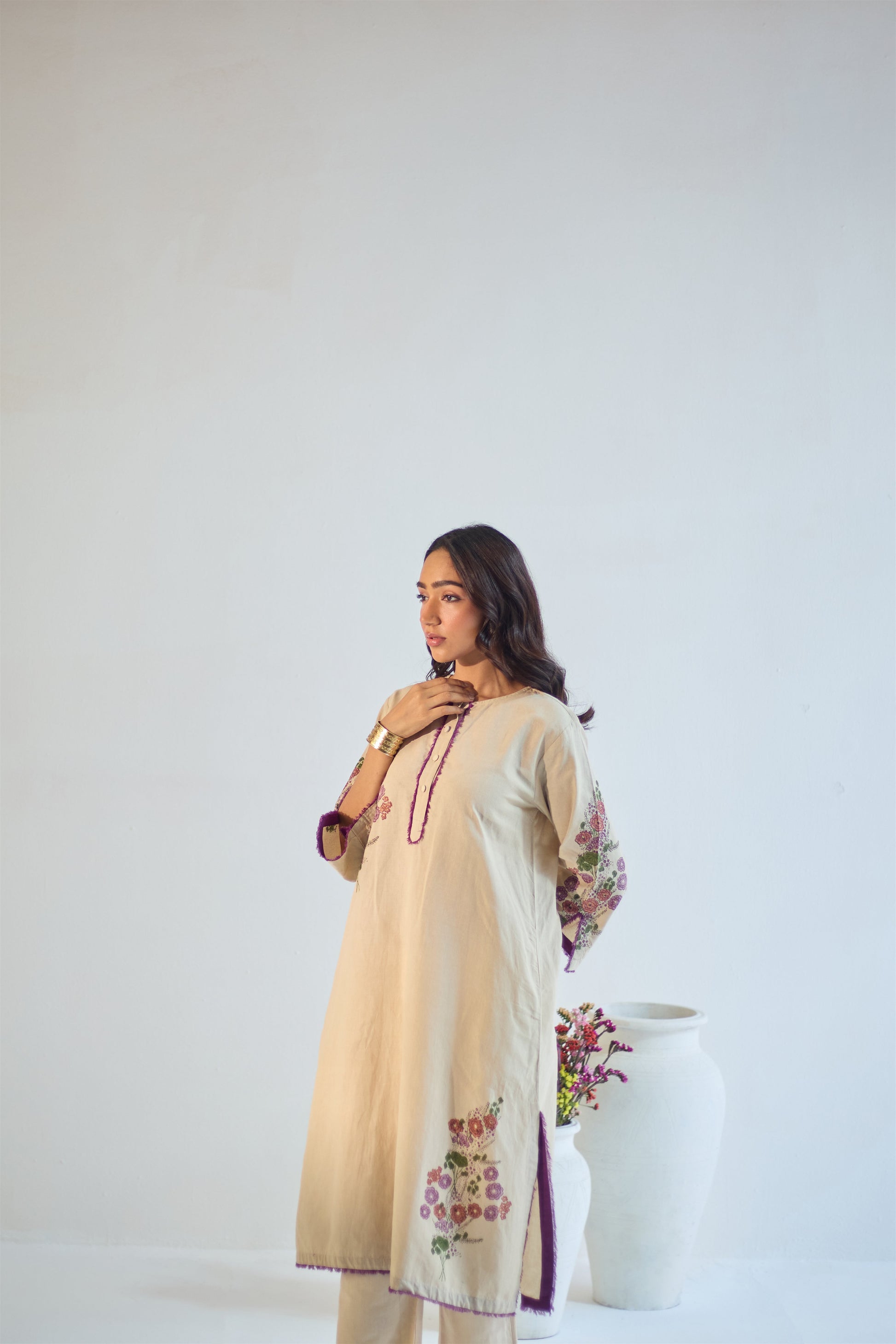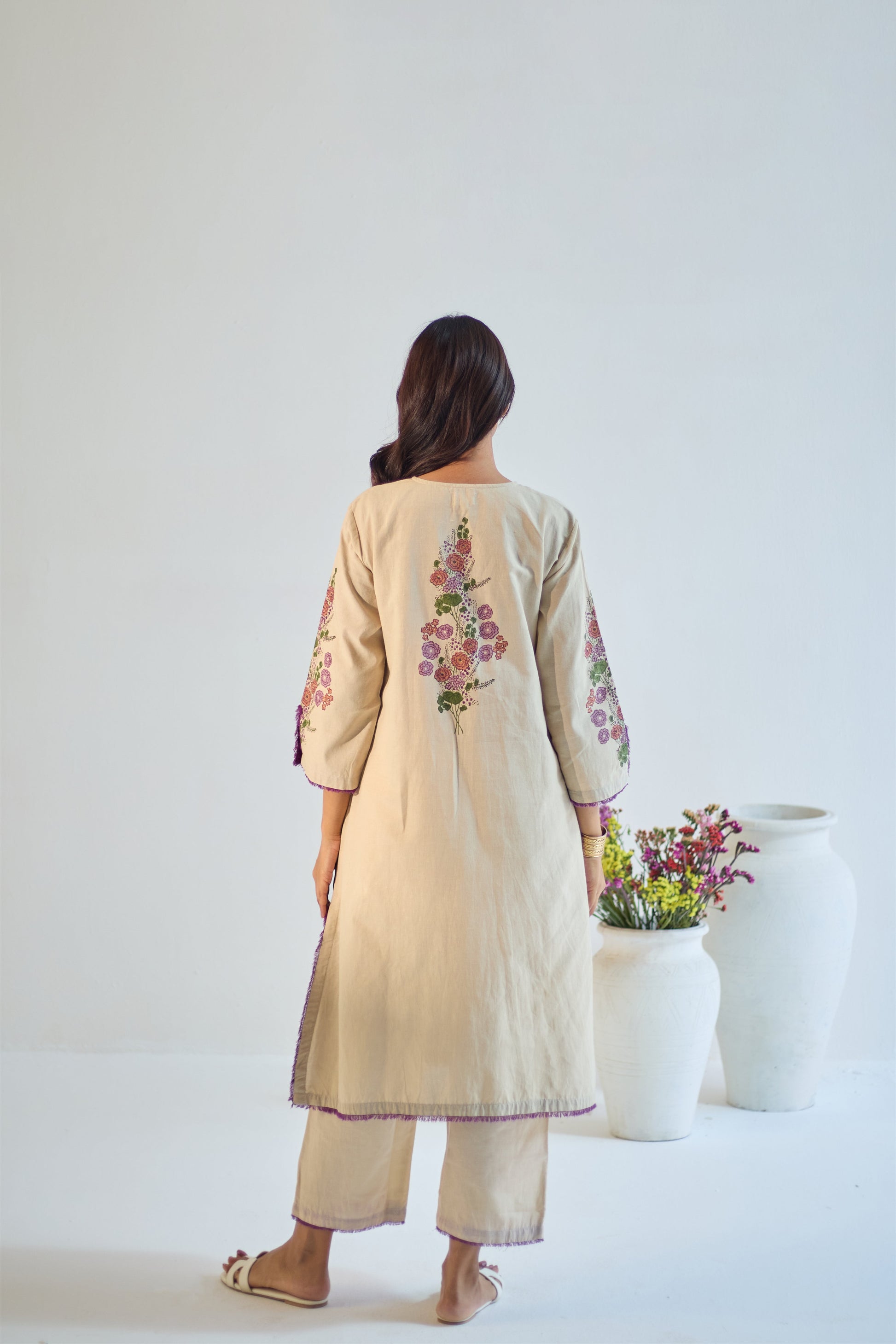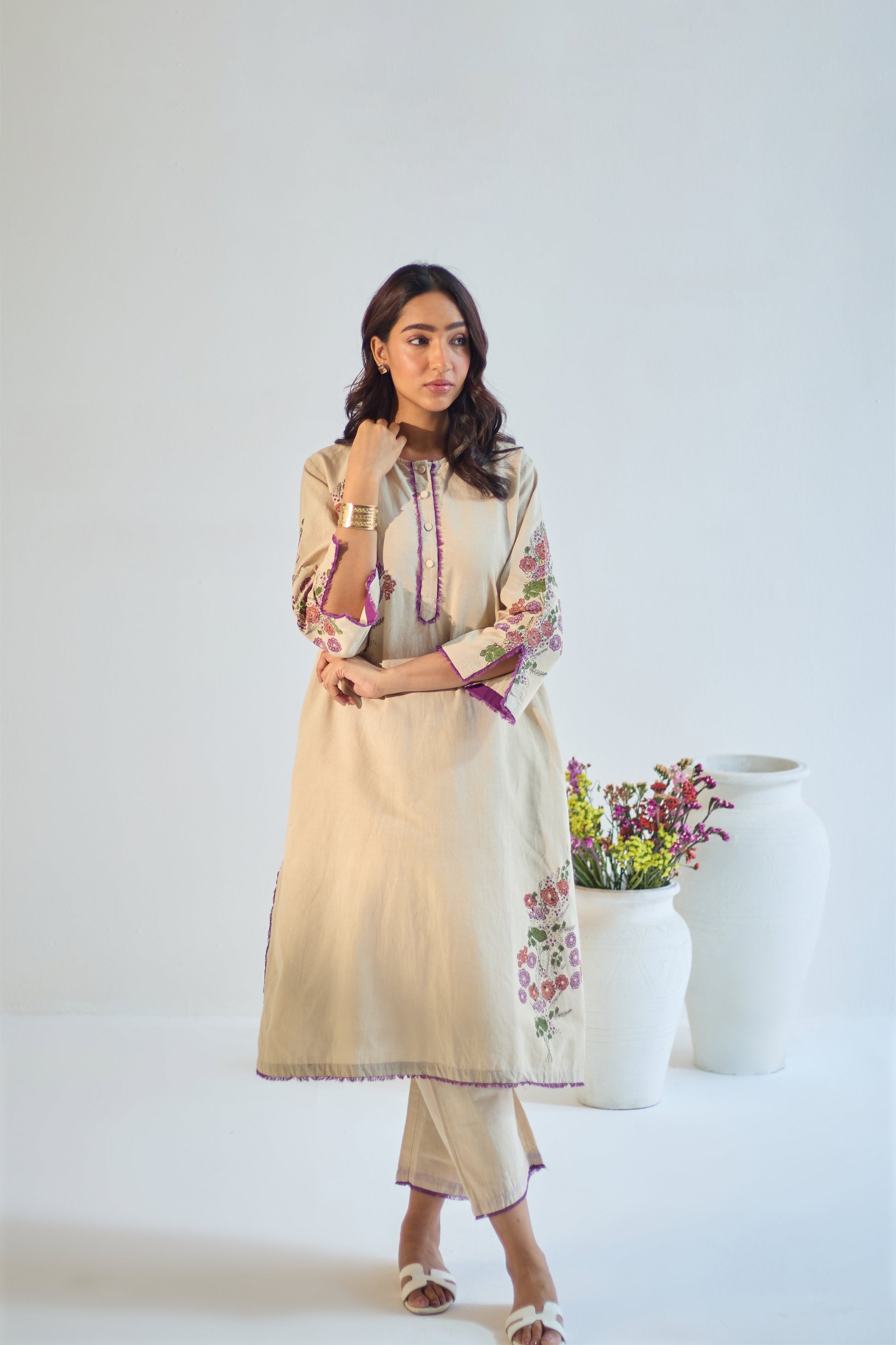 Gulaab sand plum hand block printed linen kurta set (set of 2)