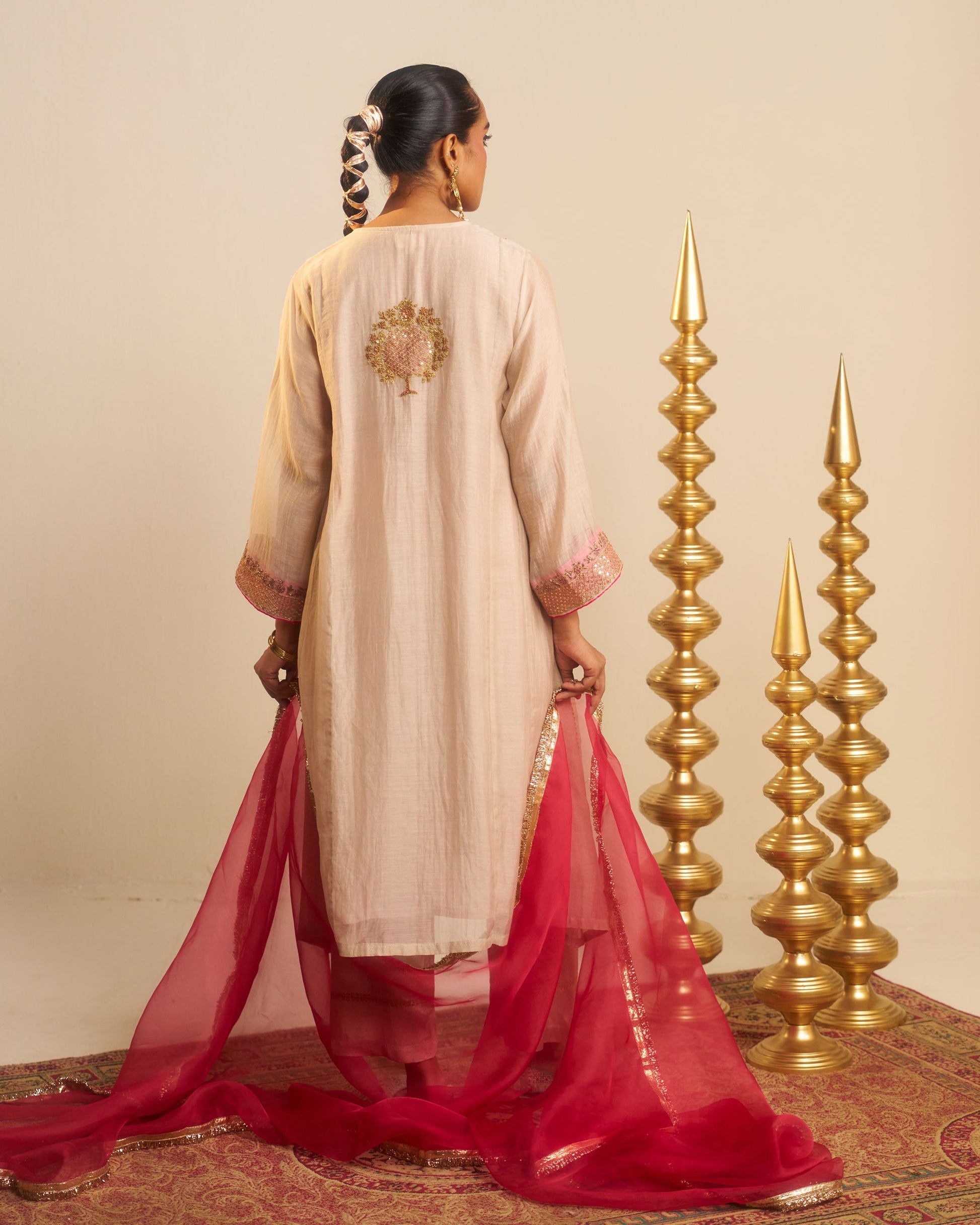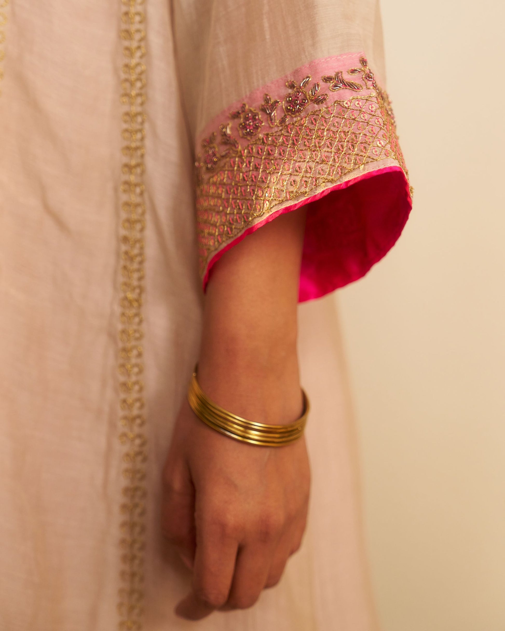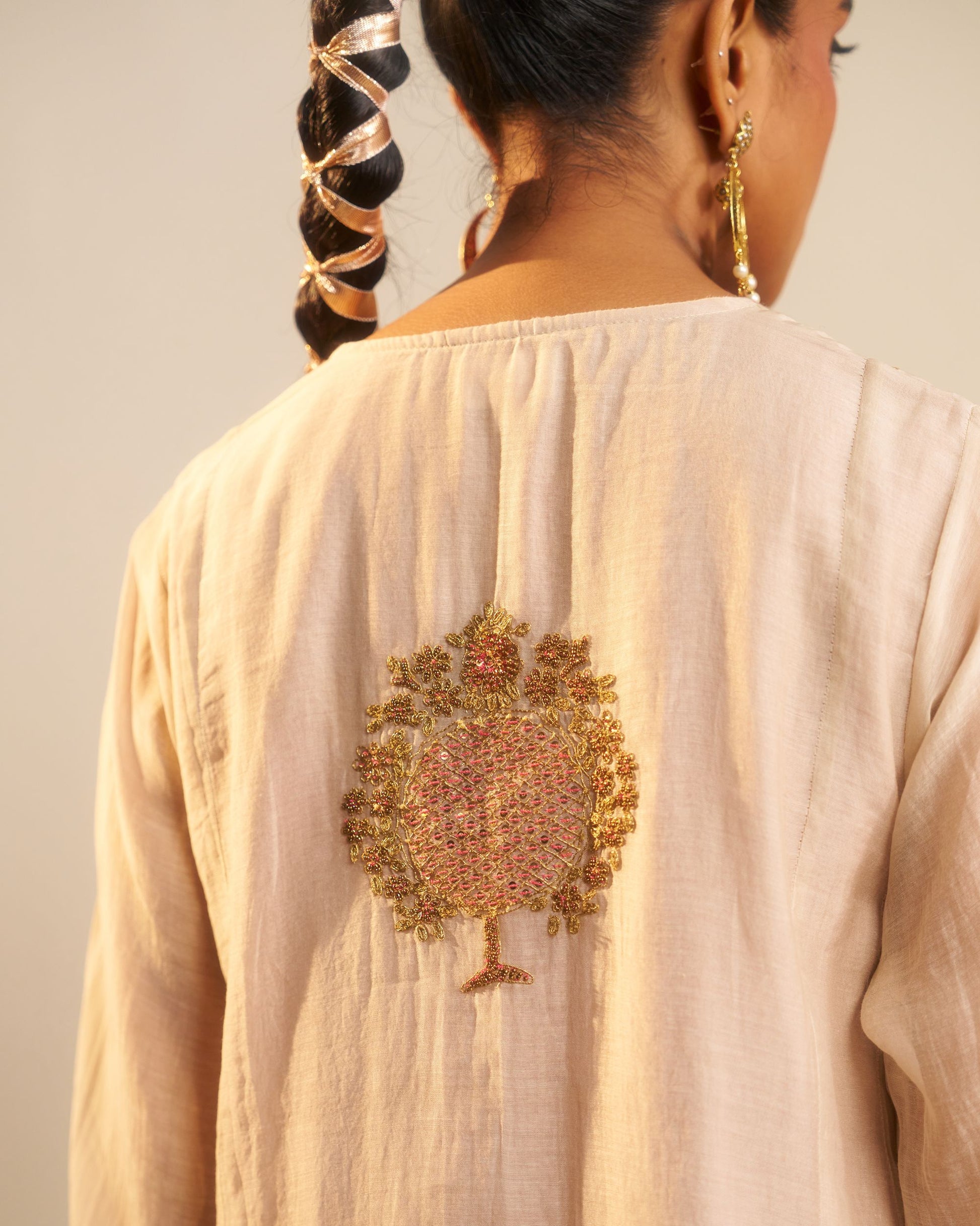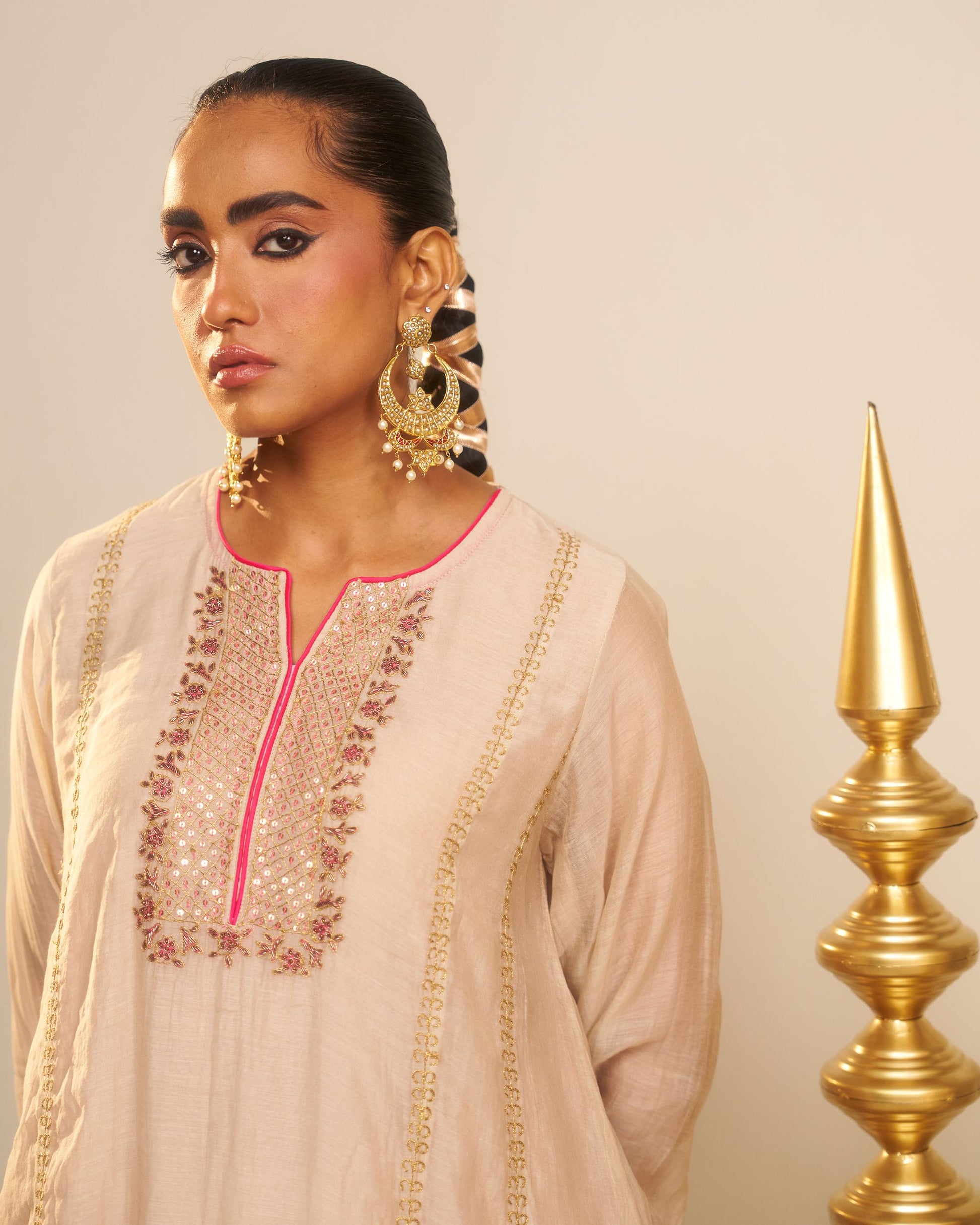 Ibaadat smoke grey hand embroidered chanderi kurta set.