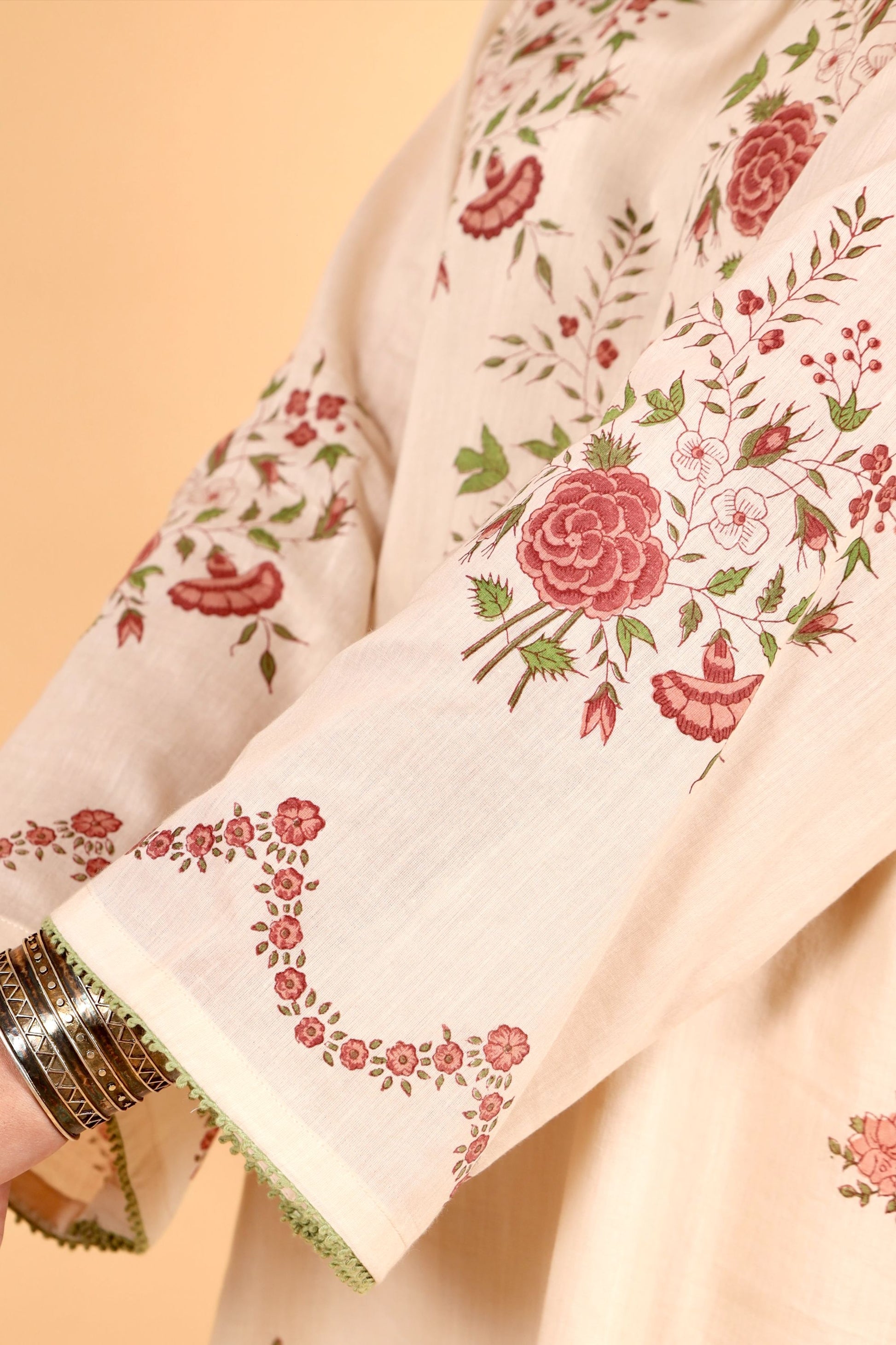 The colors seen in the image may vary from the actual product due to different computer screen resolutions and displays. This product is hand-block printed and there might be slight irregularities in color and prints occurring. These irregularities are the hallmark of hand-block printed products and make each exquisite piece one-of-its-kind.