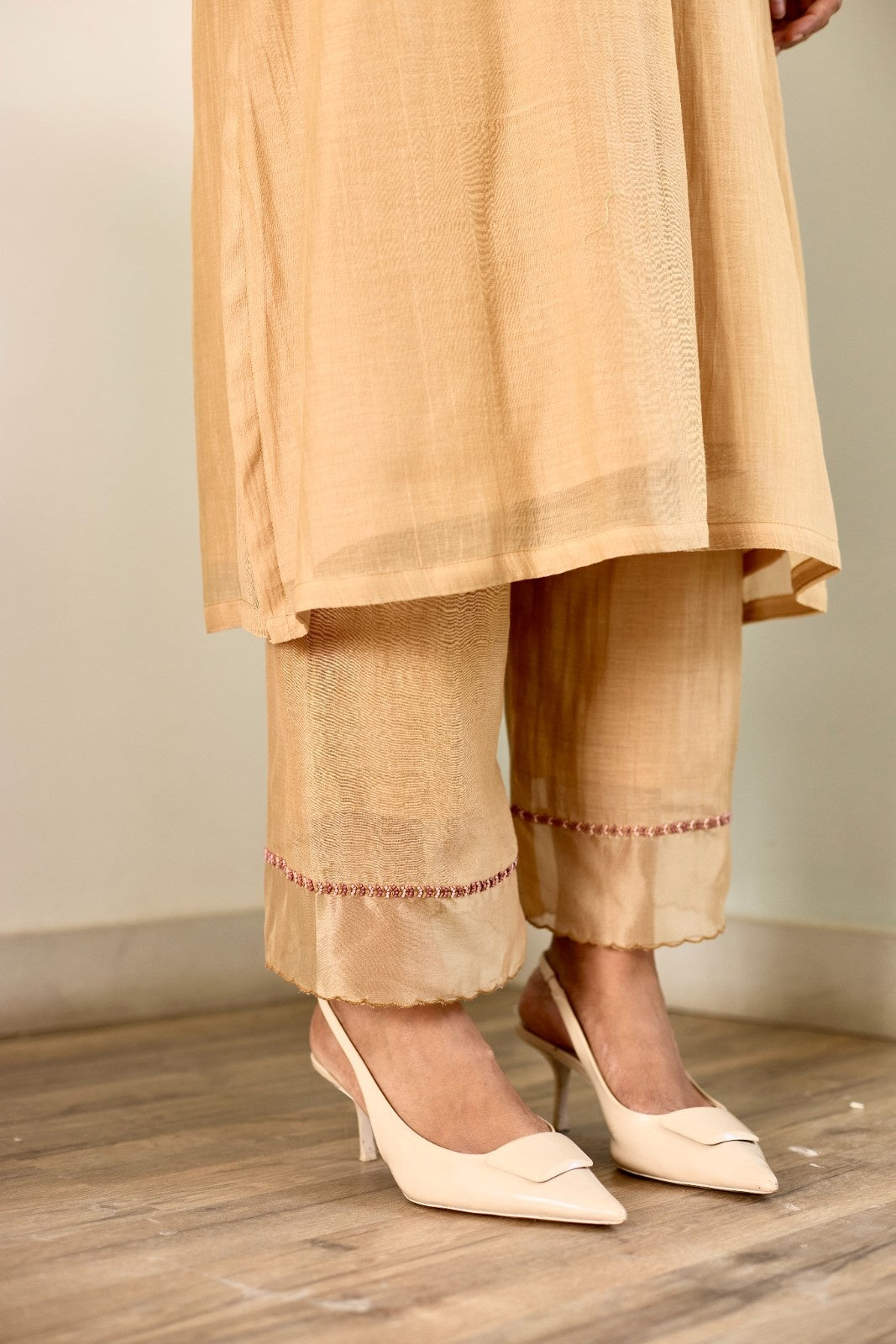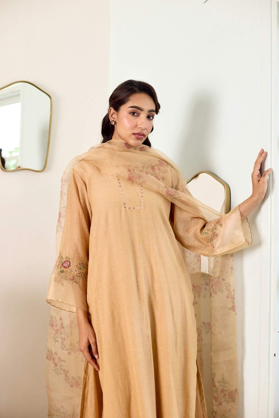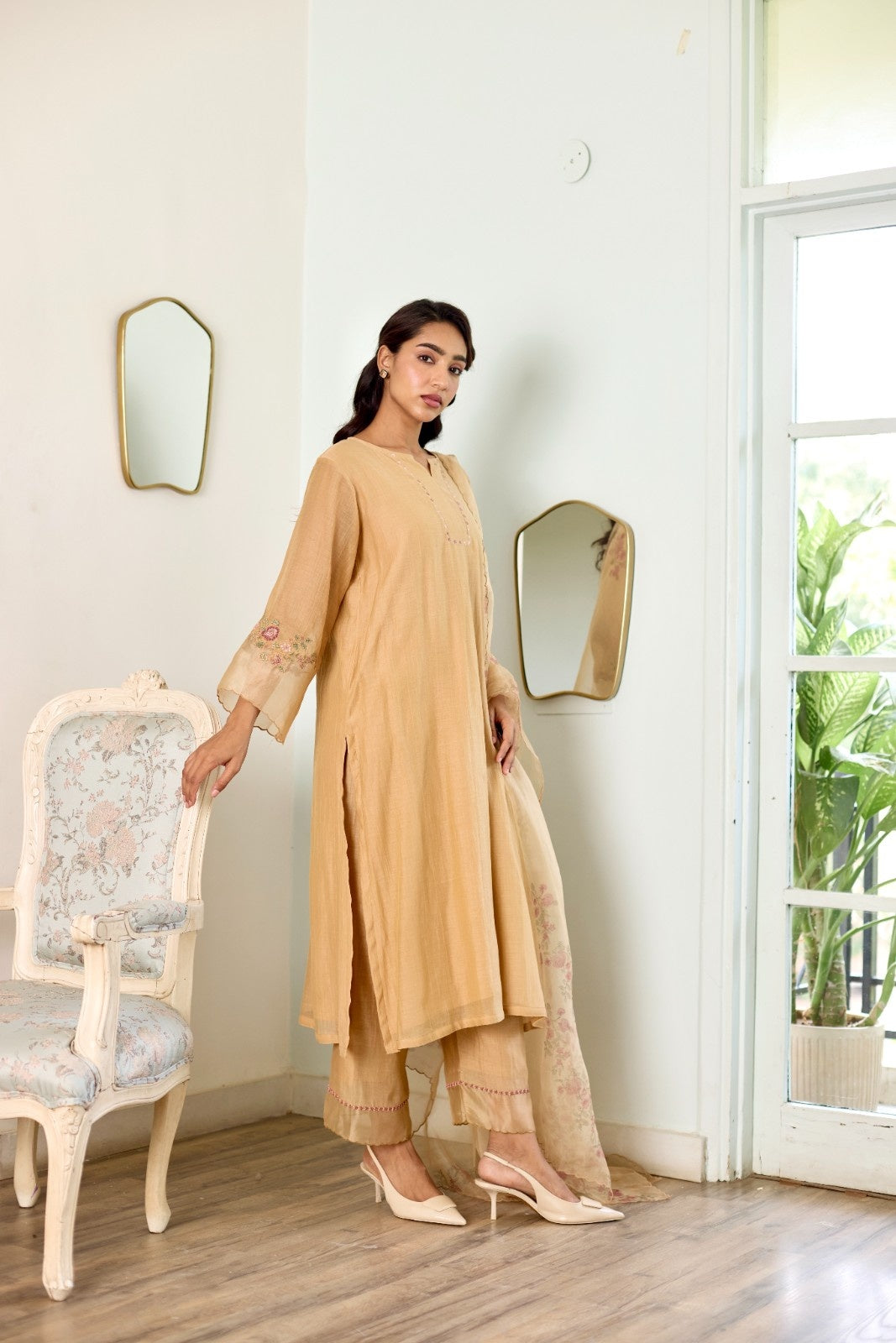 Meadows stone organza applique hand embroidered chanderi kurta set (set of 3)