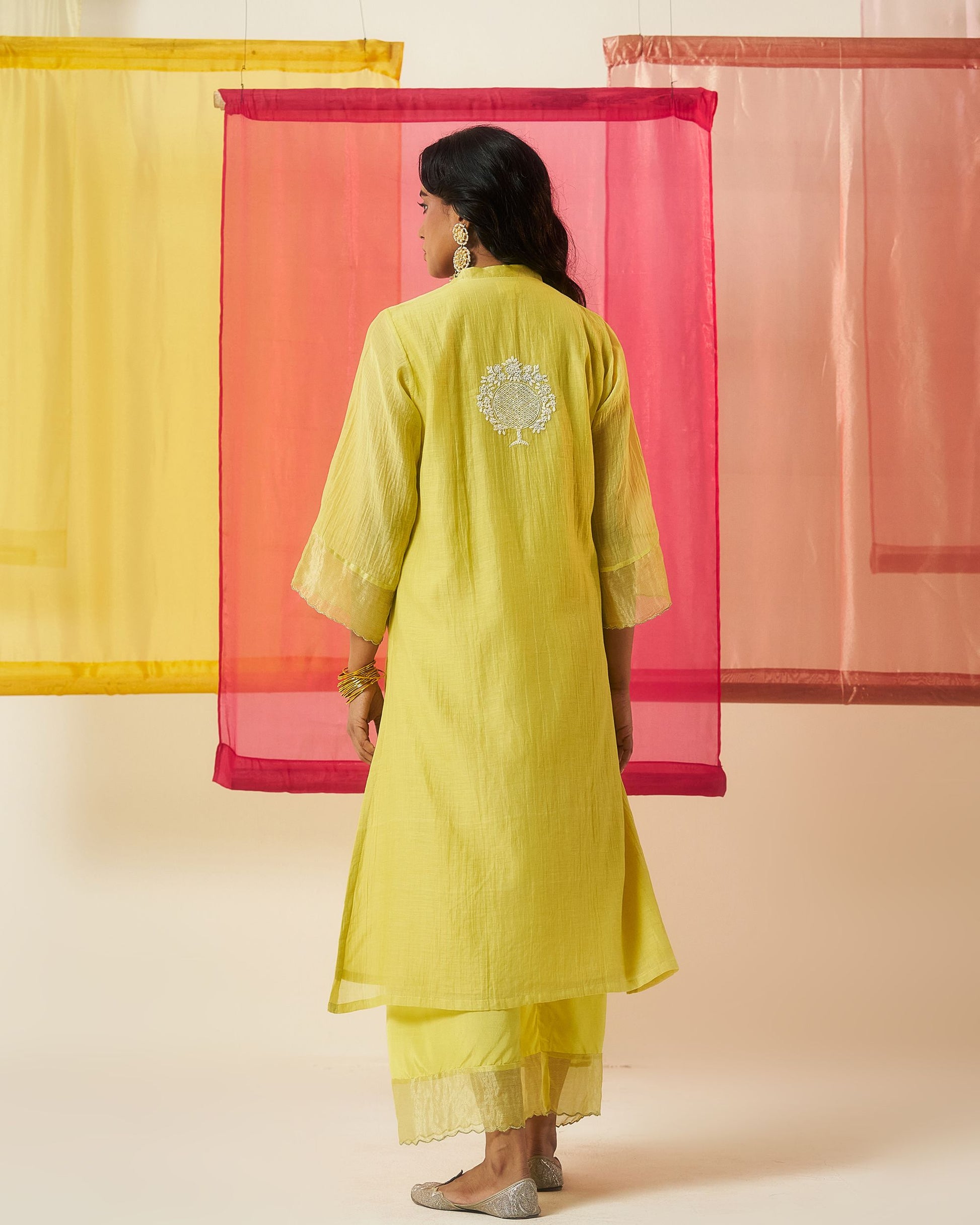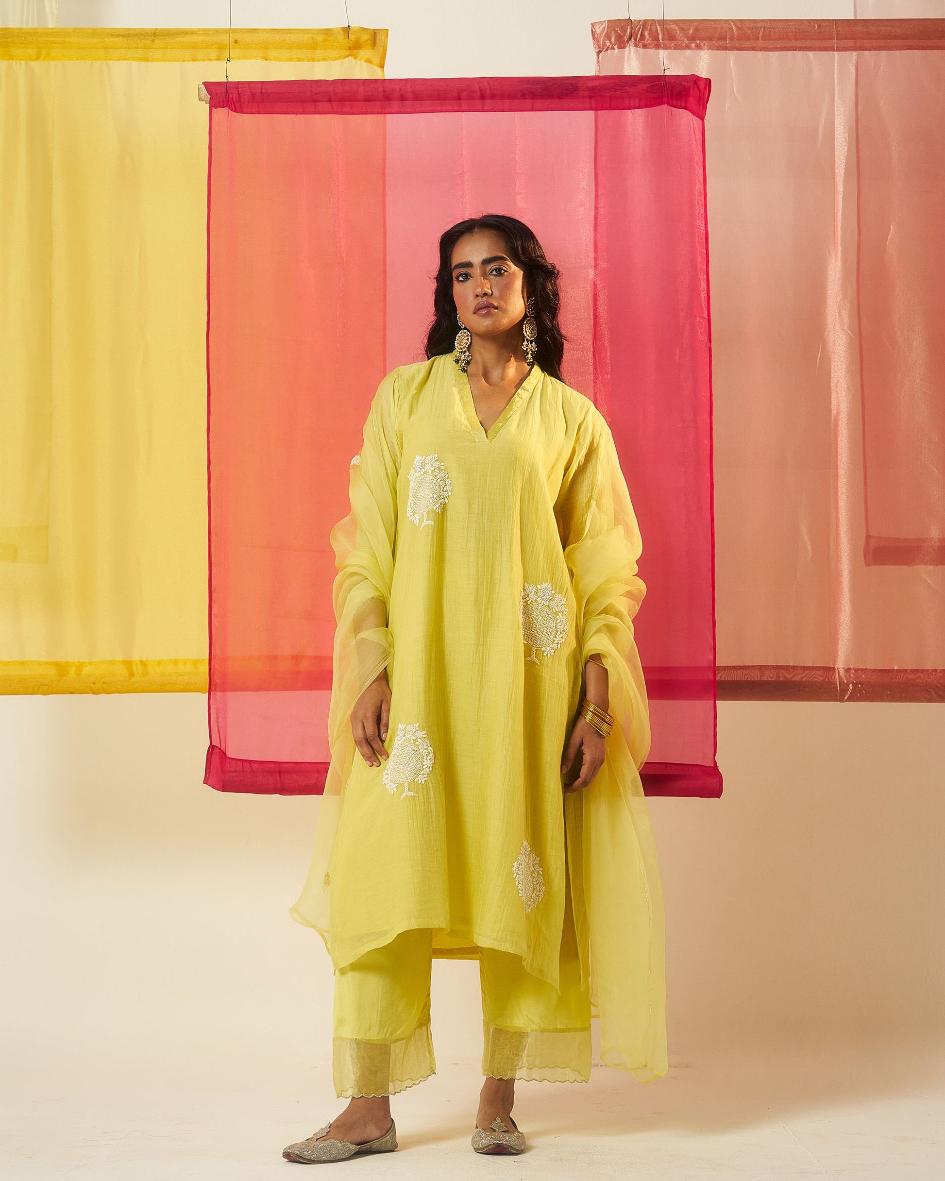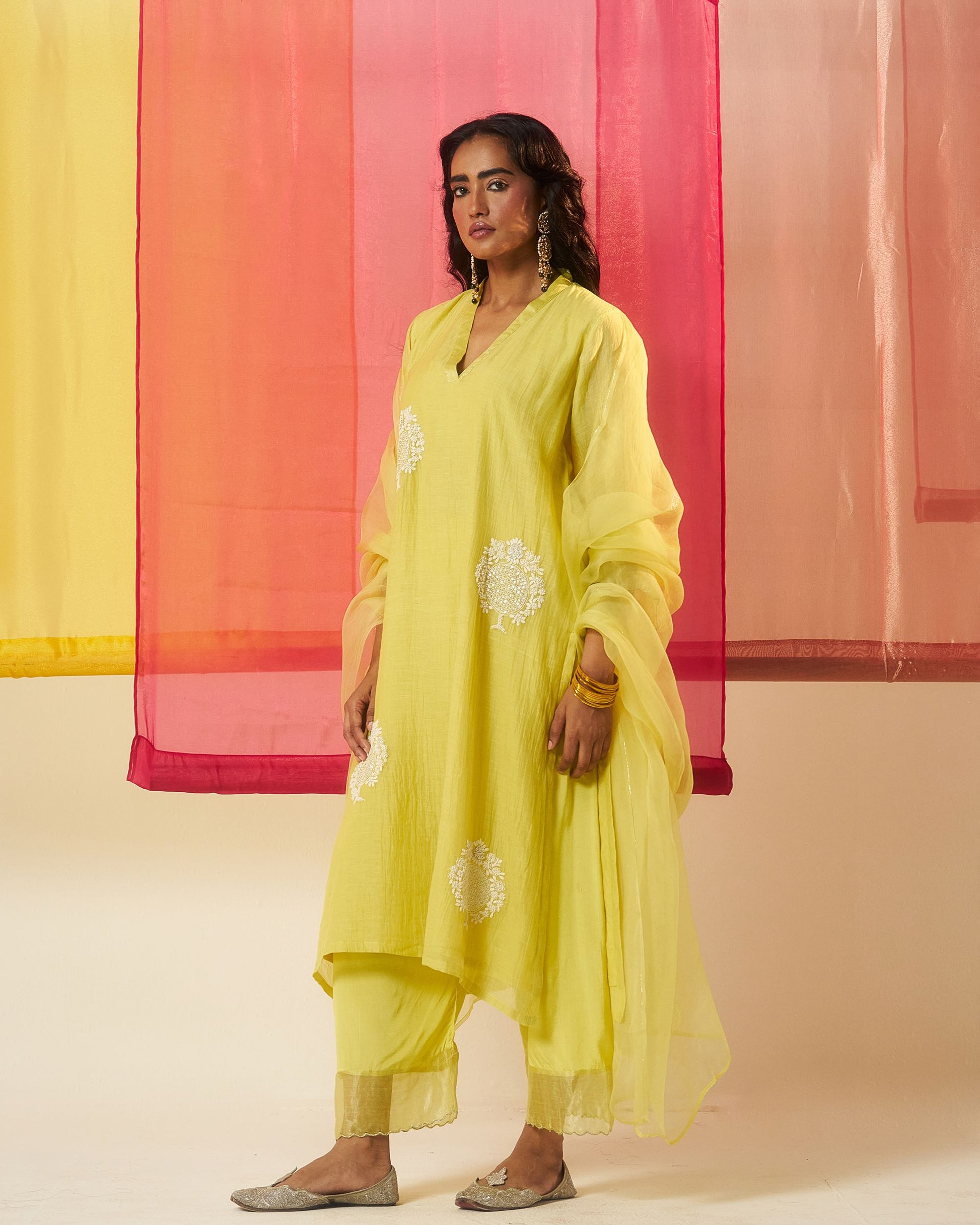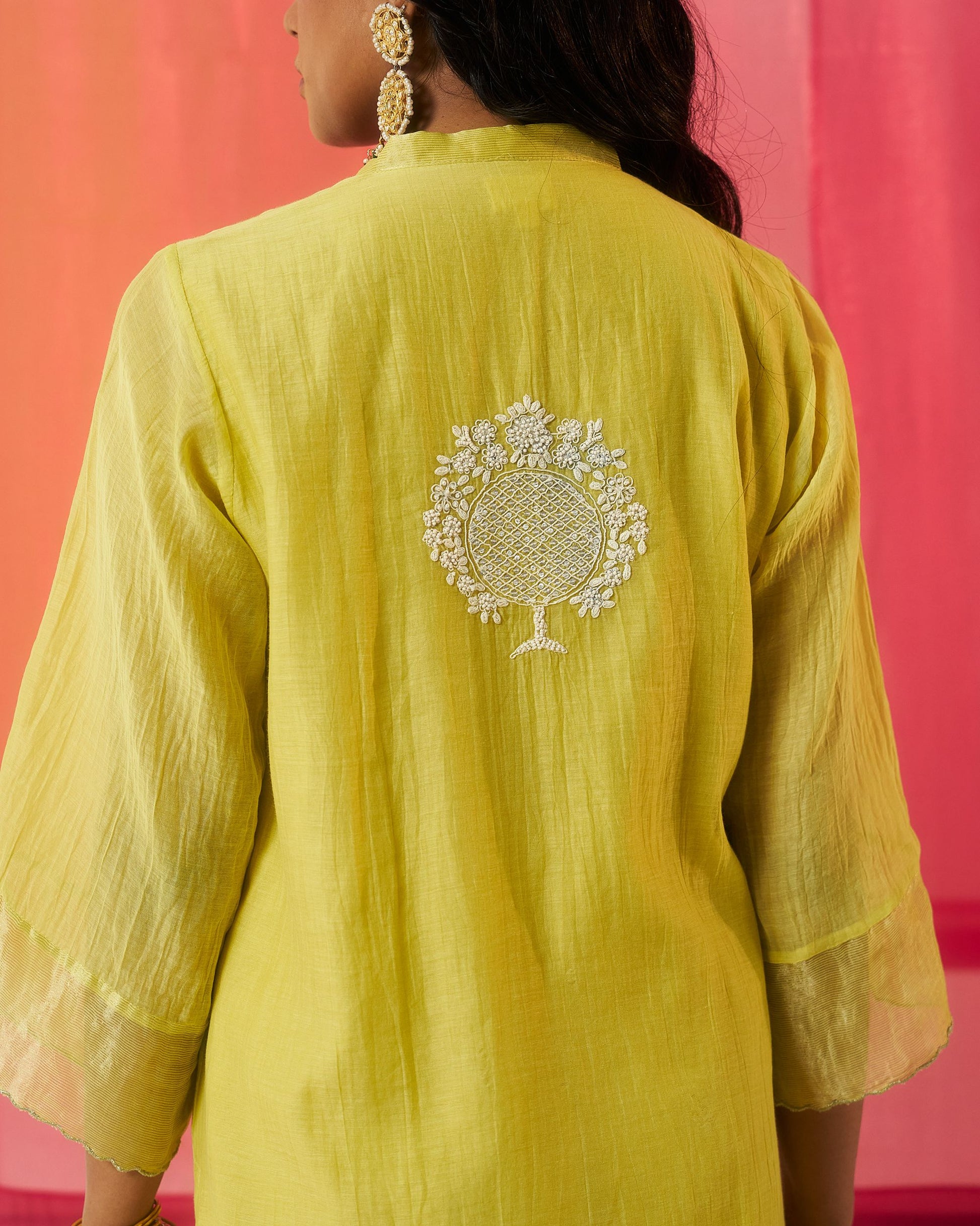 Mehraab lemon yellow dori sequins & beads hand embroidered kurta set