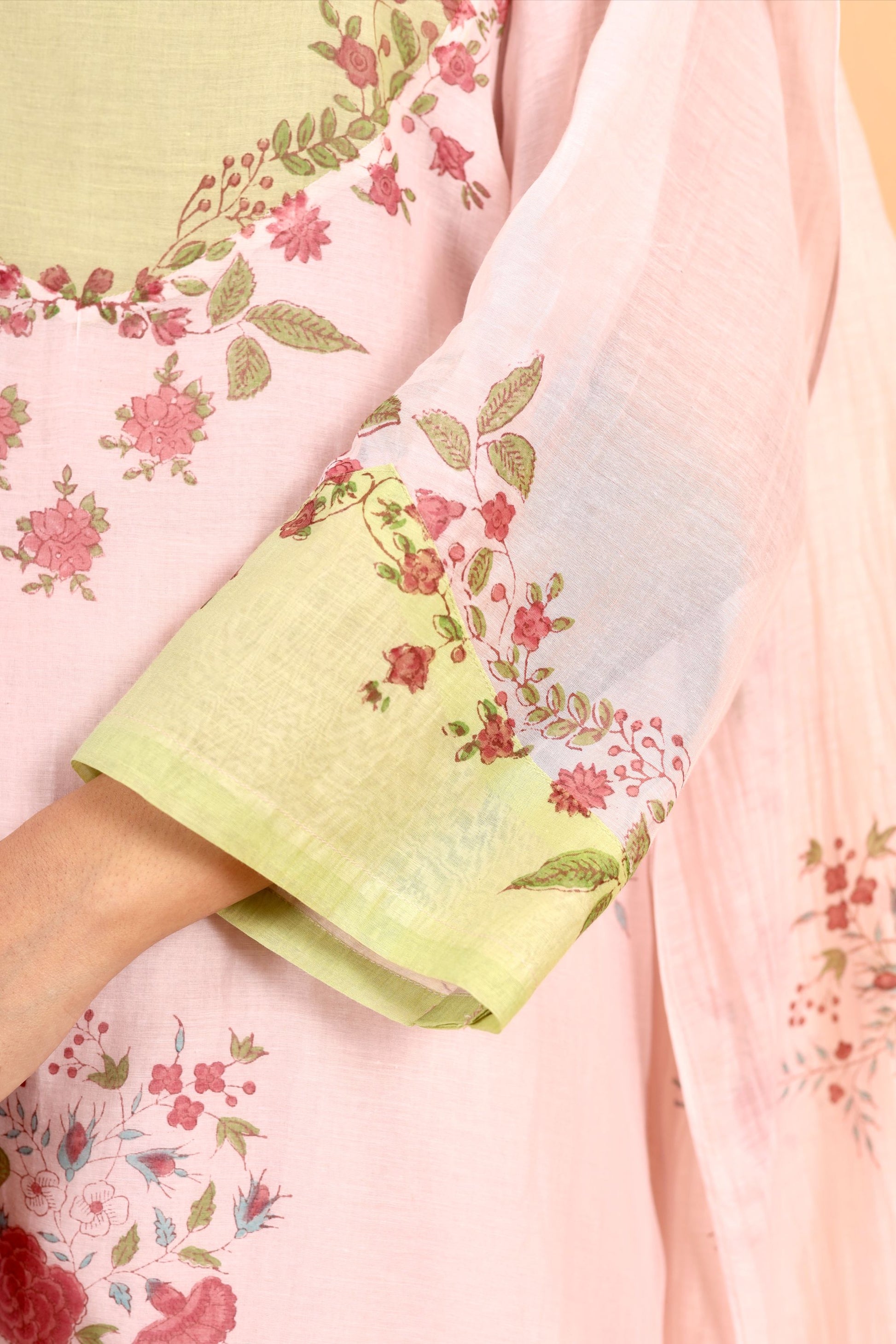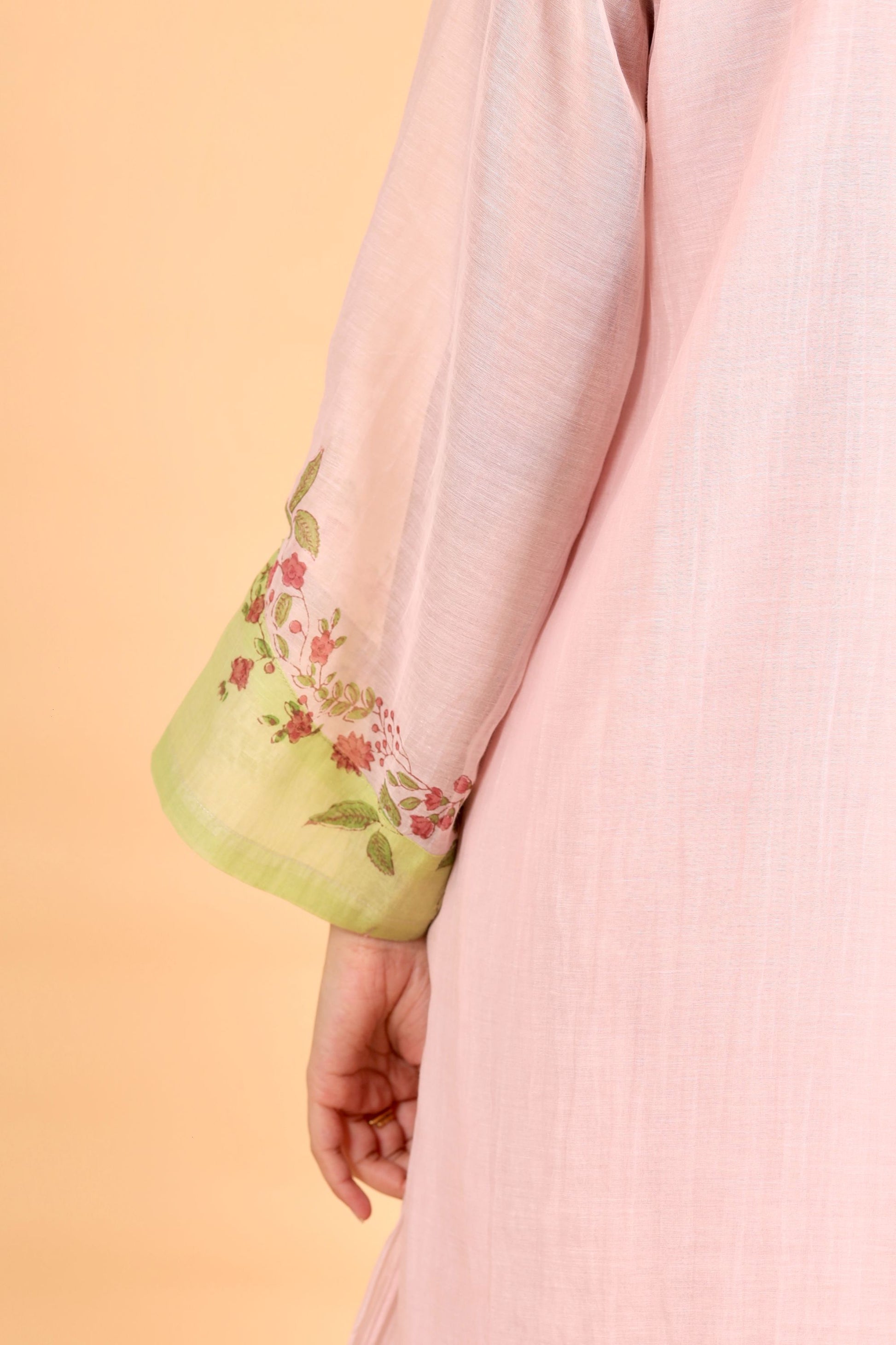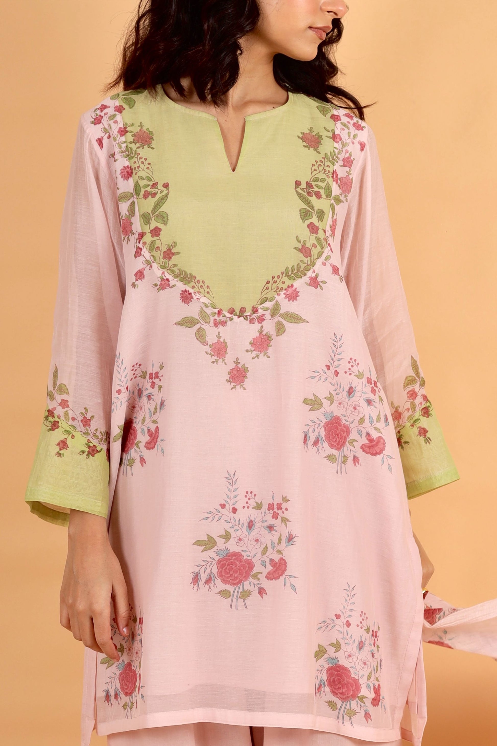 Nadley kosumi pink hand block printed chanderi short kurta set