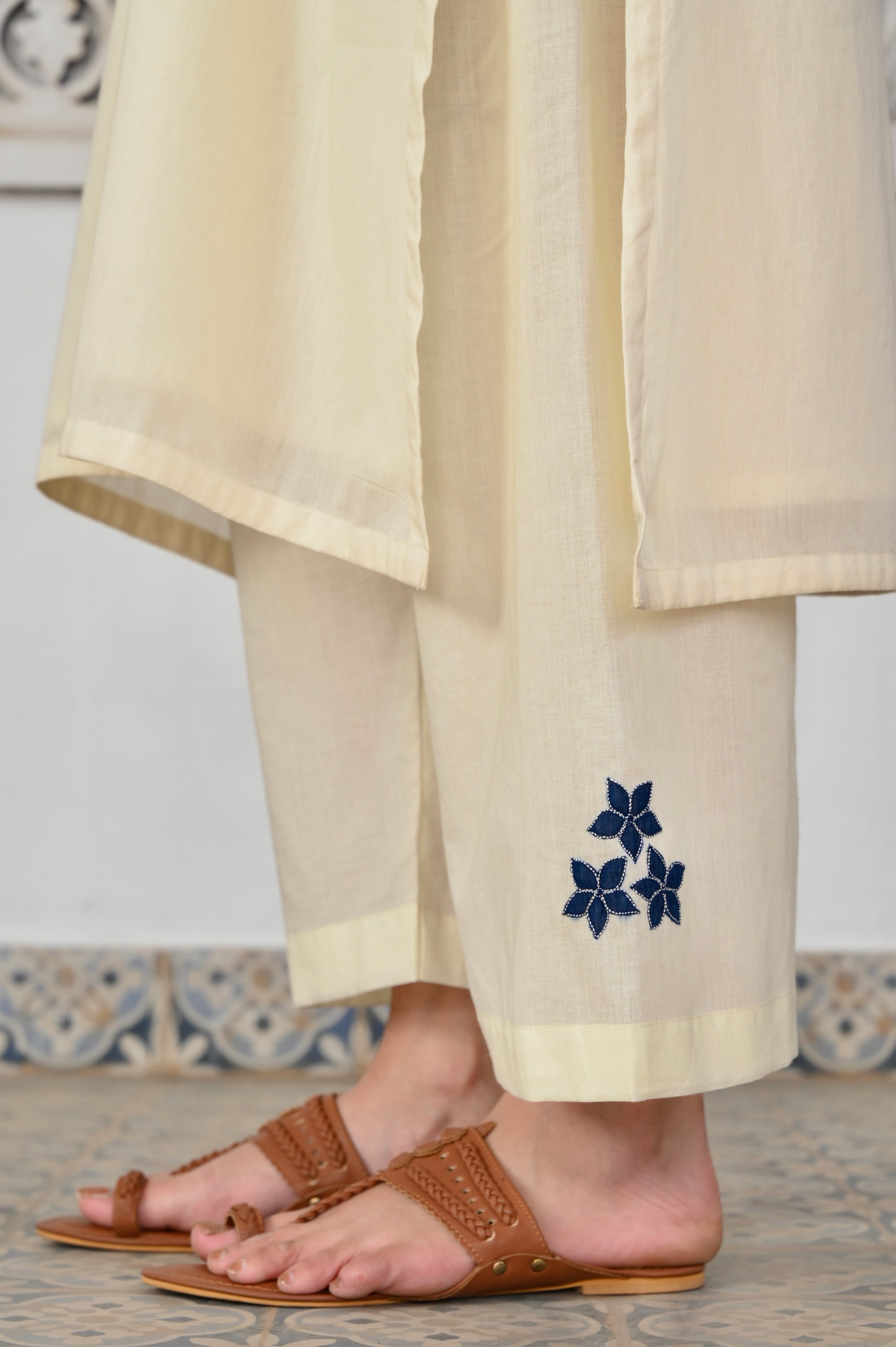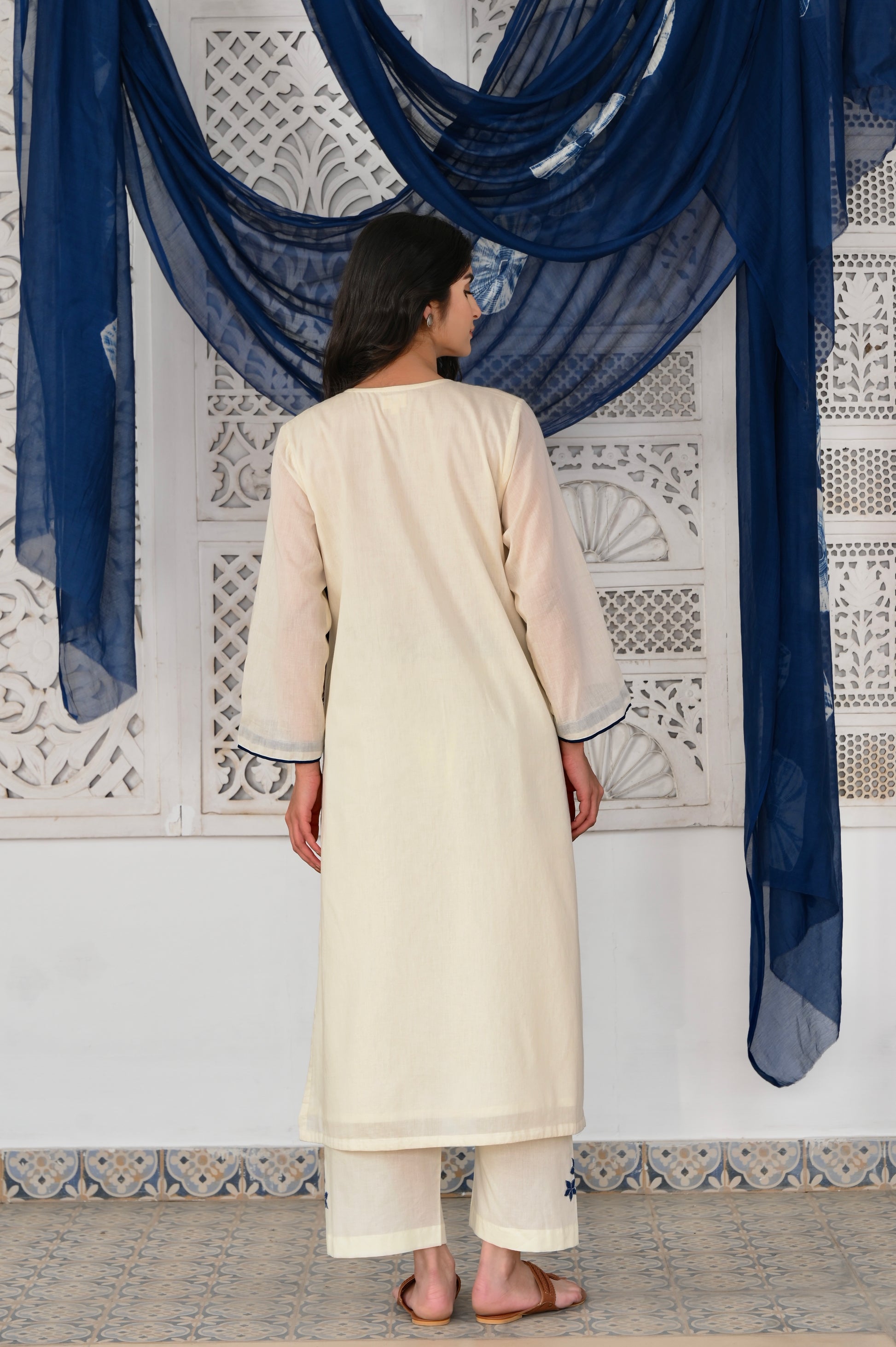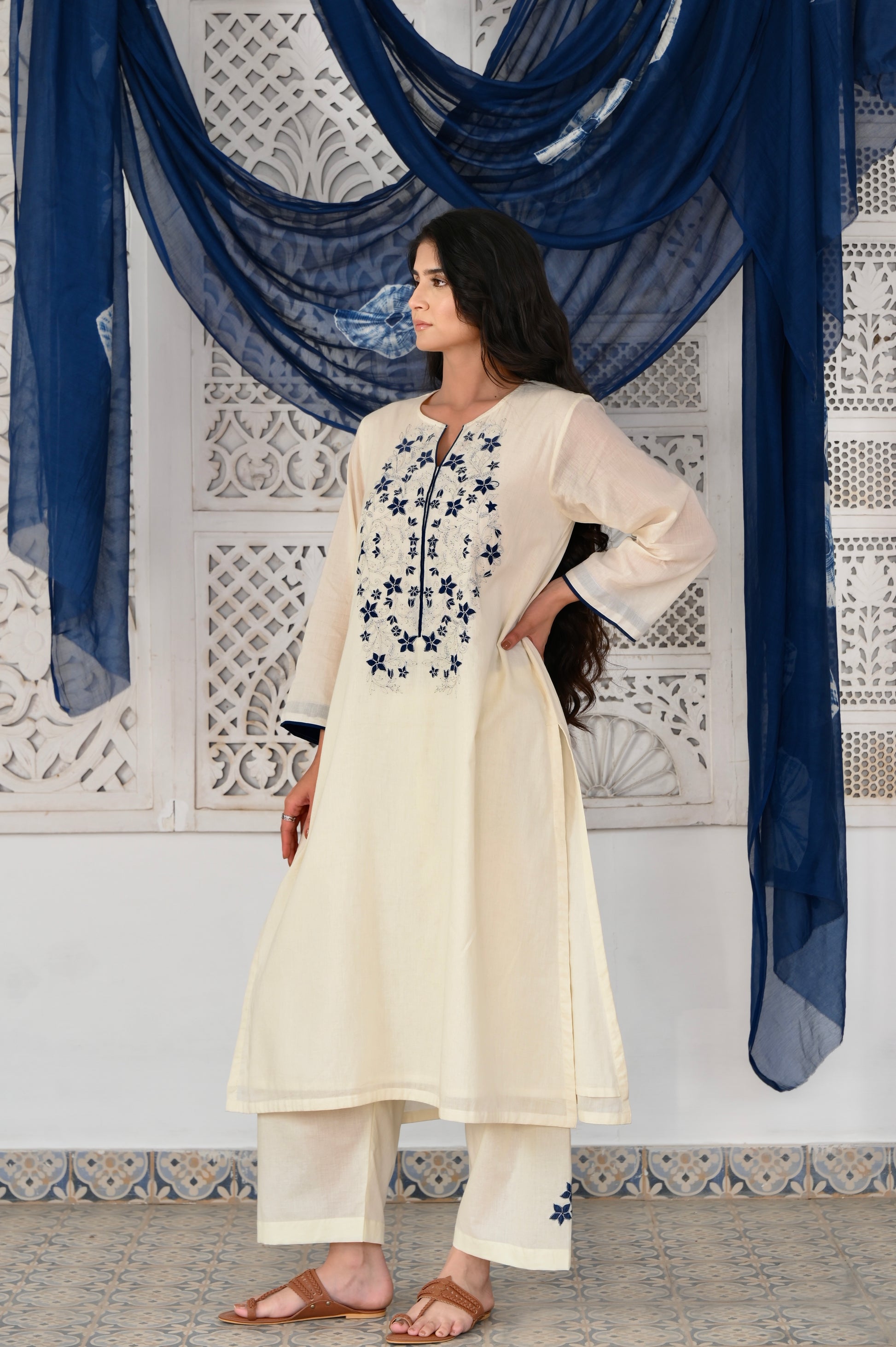 Neel ivory hand applique and dori work mulmul kurta (Pant separate)