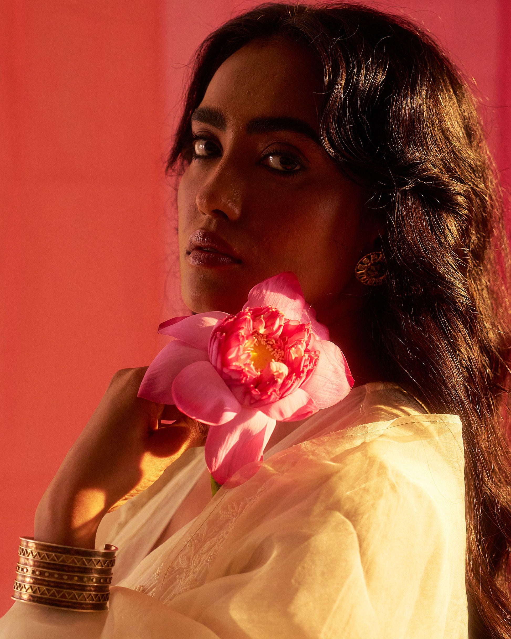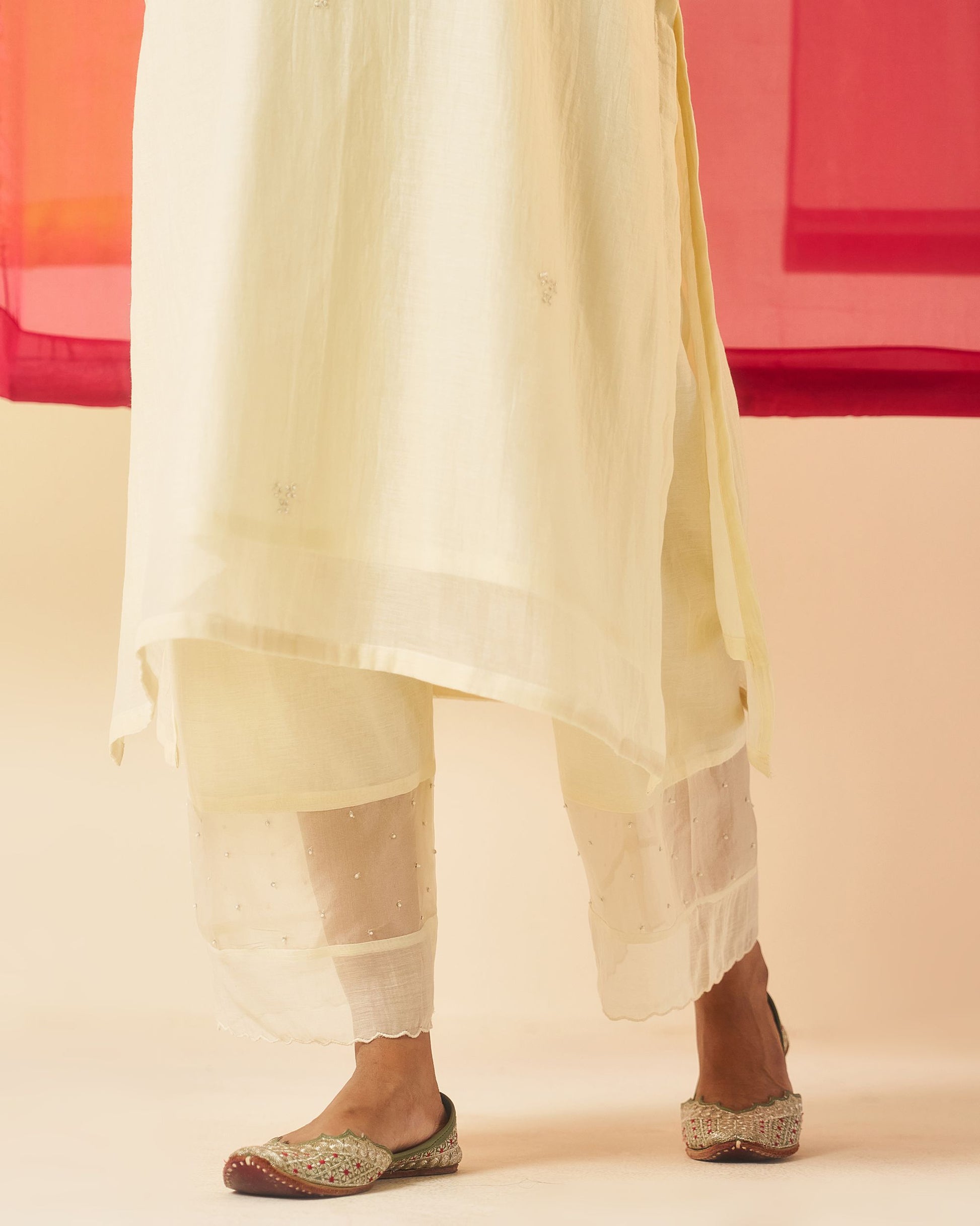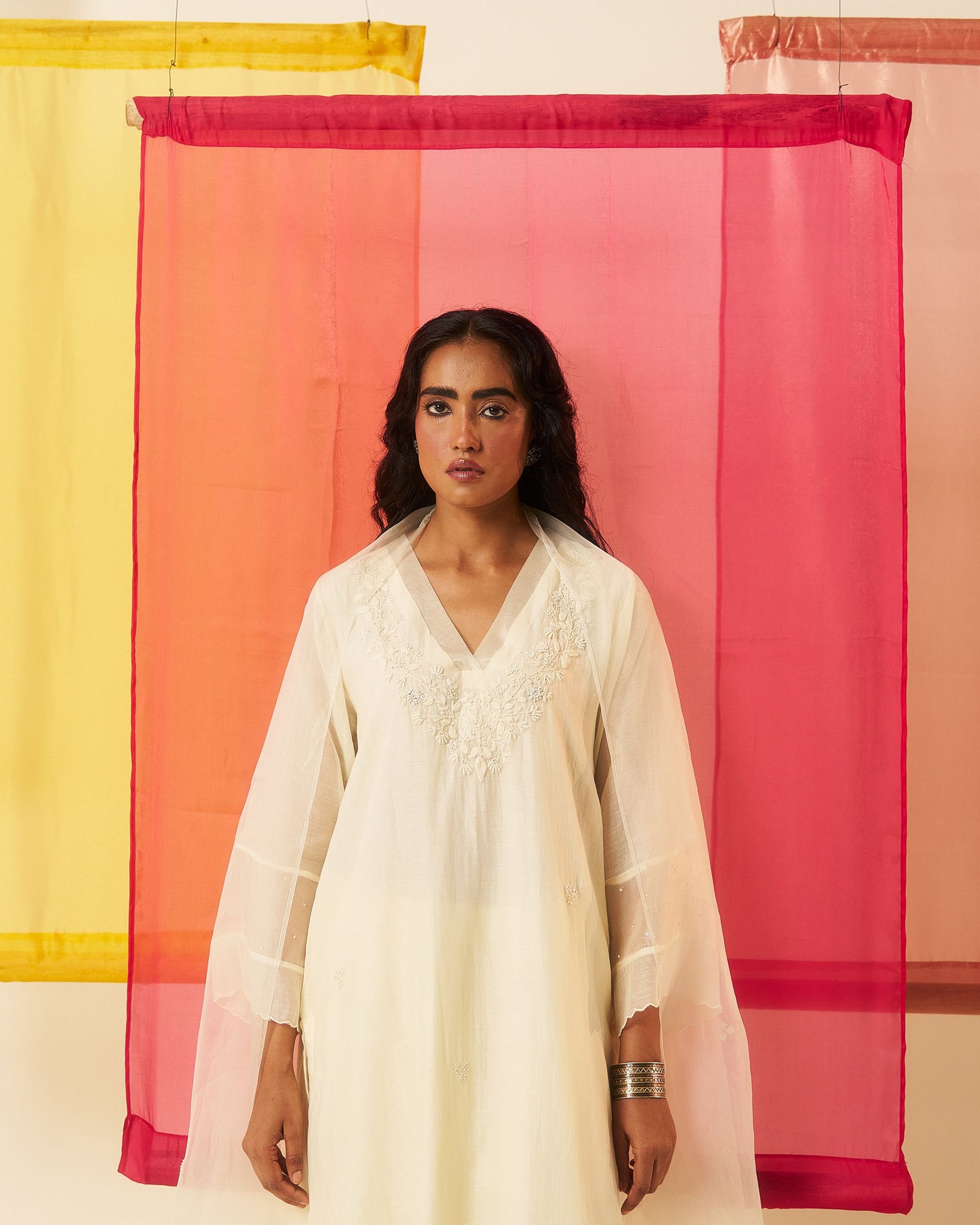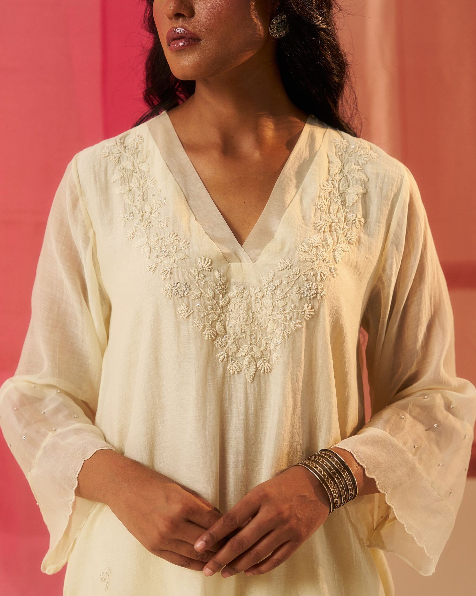 Phoolkari milky white dori hand embroidered chanderi kurta set