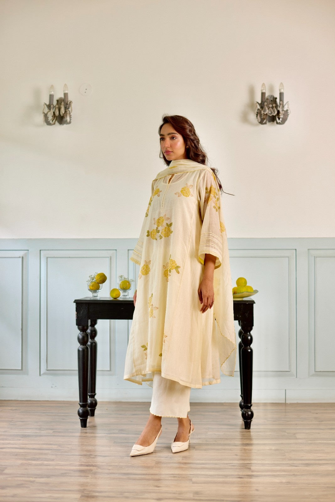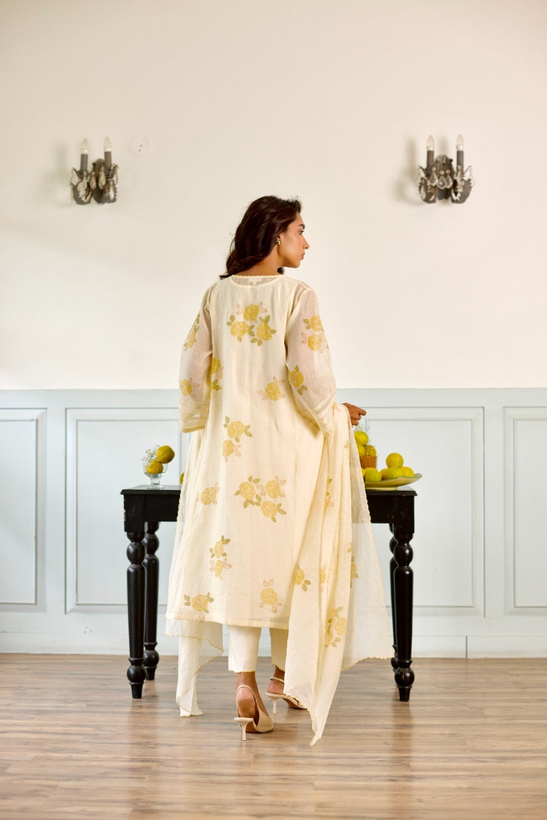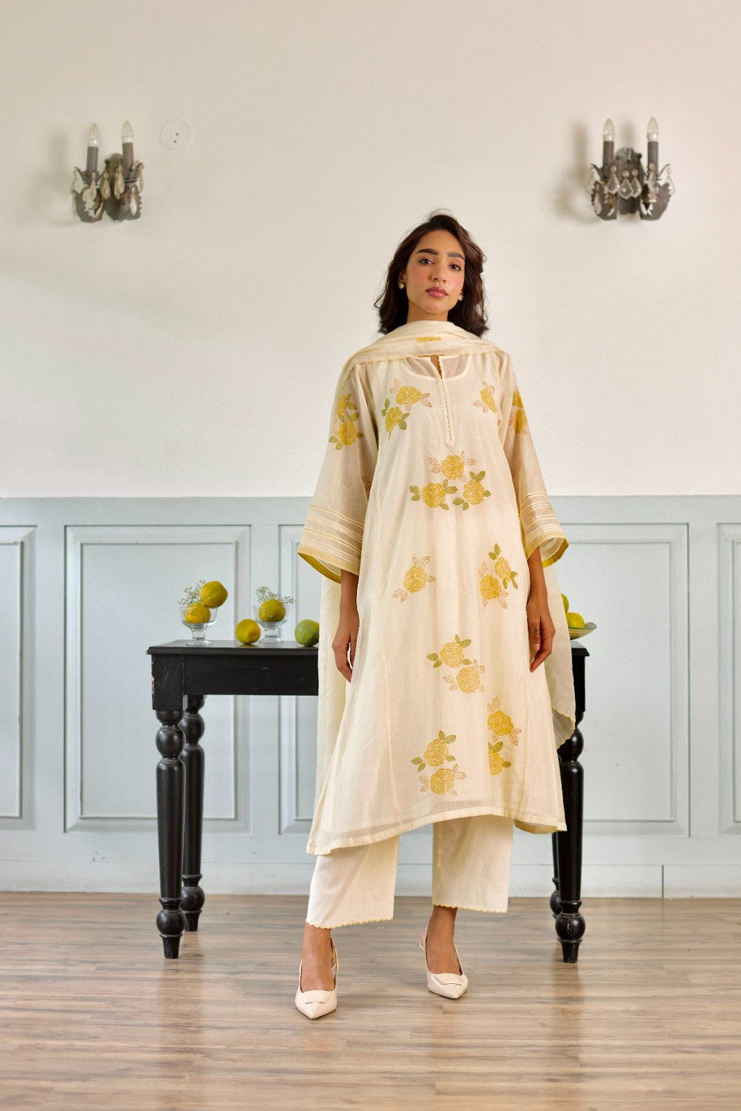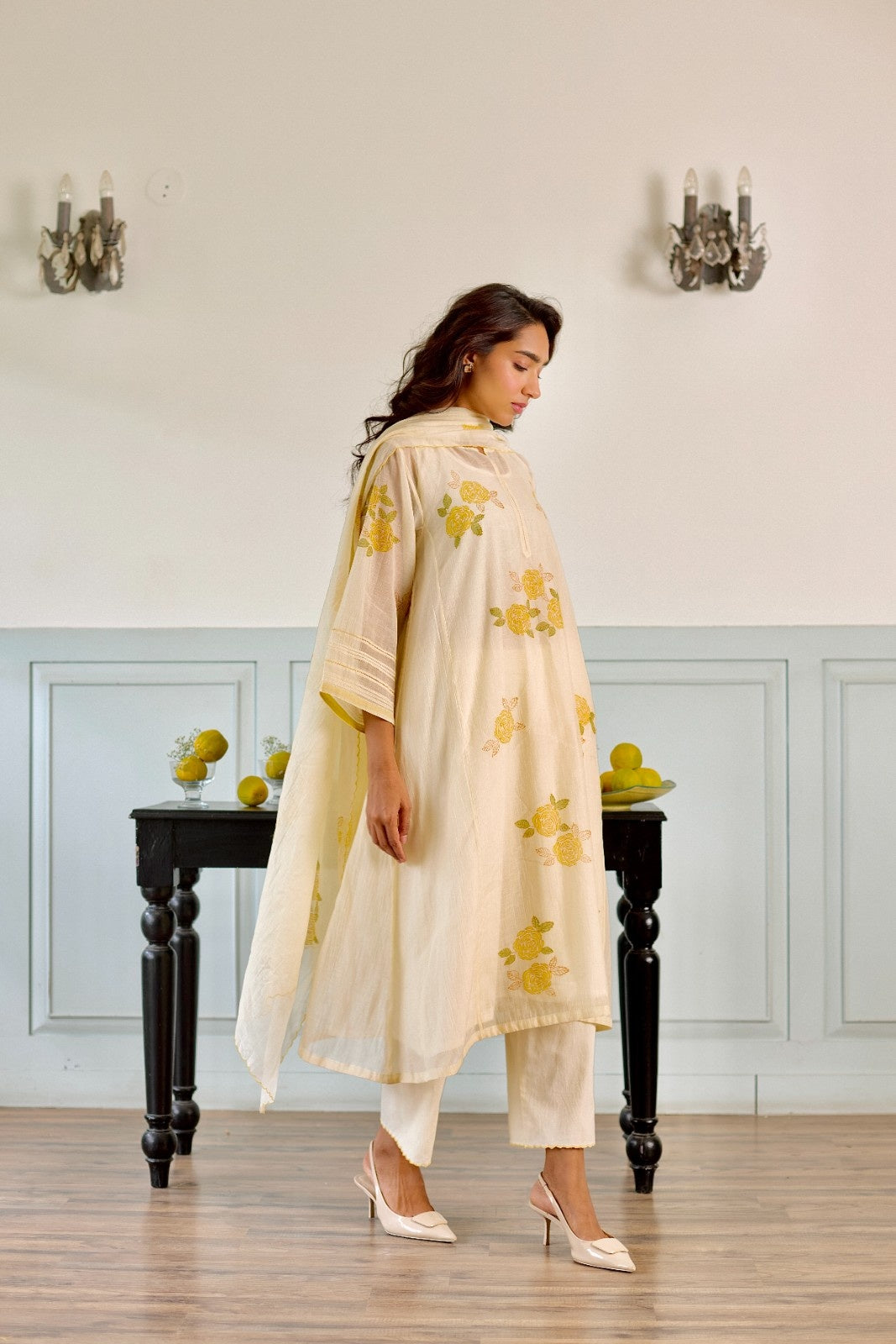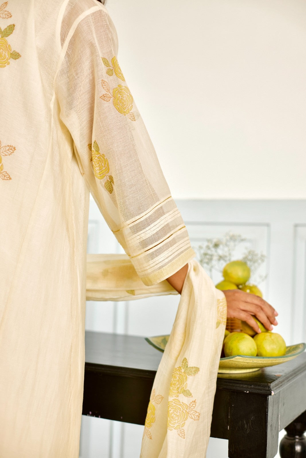 Rose milky white hand block printed chanderi kurta set (set of 3)