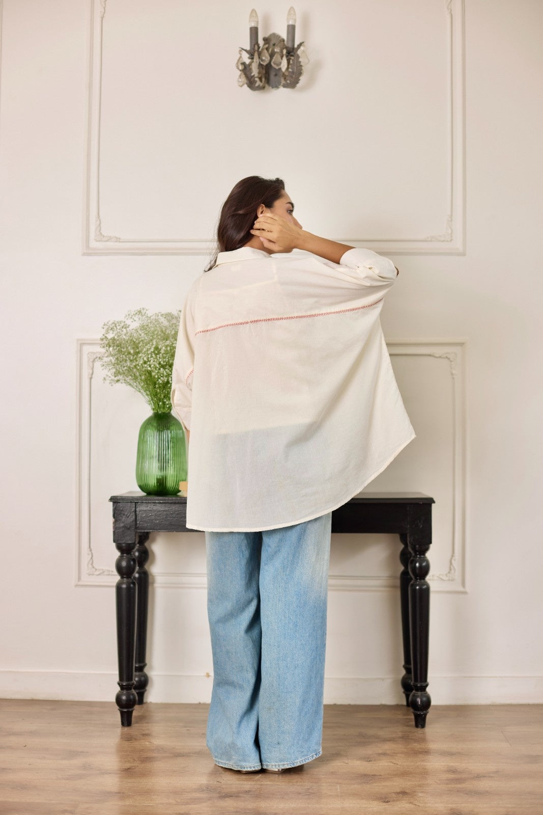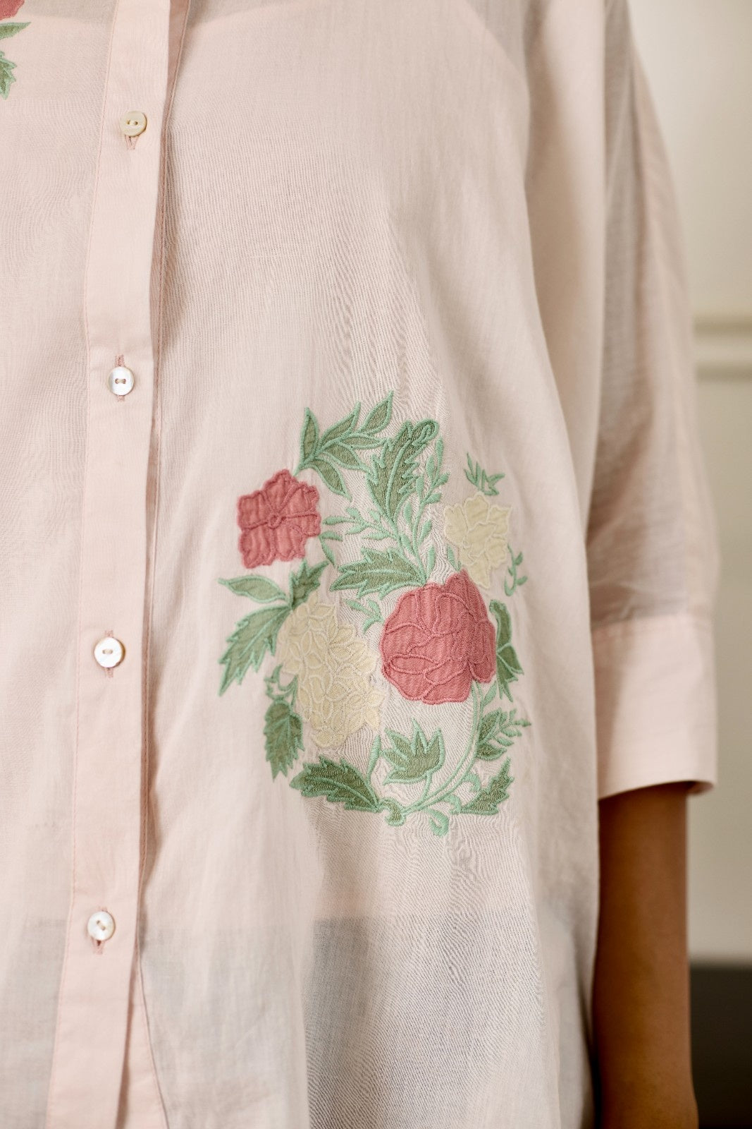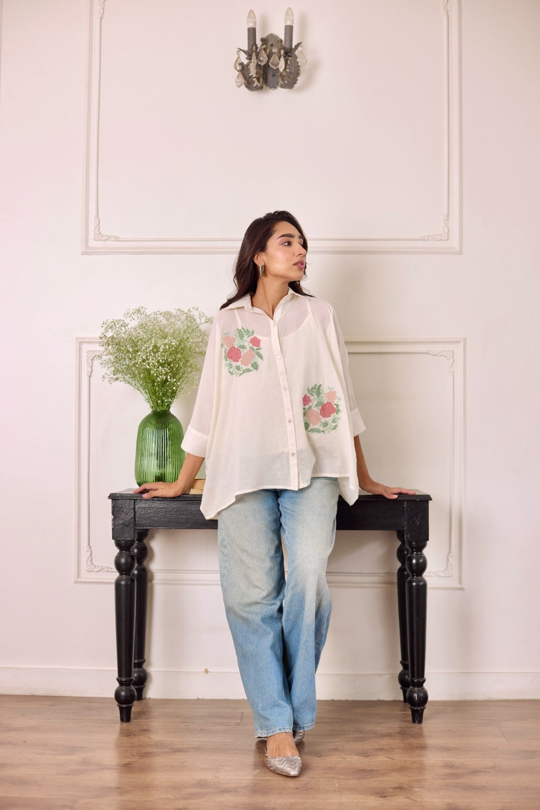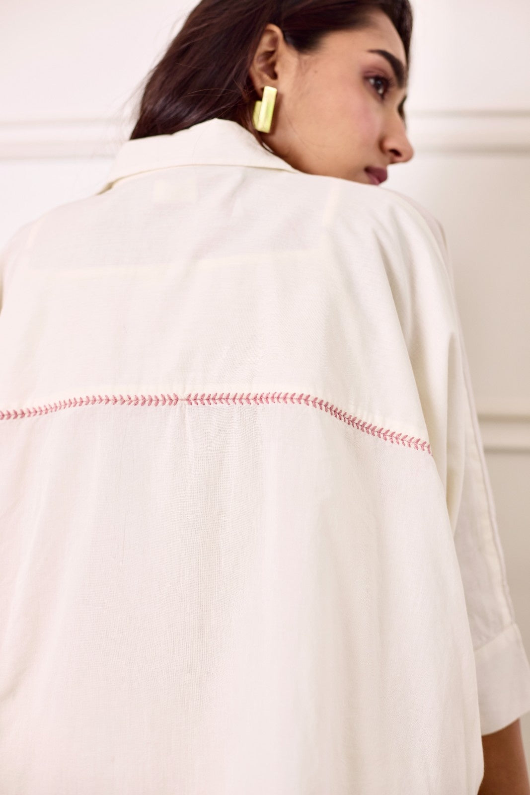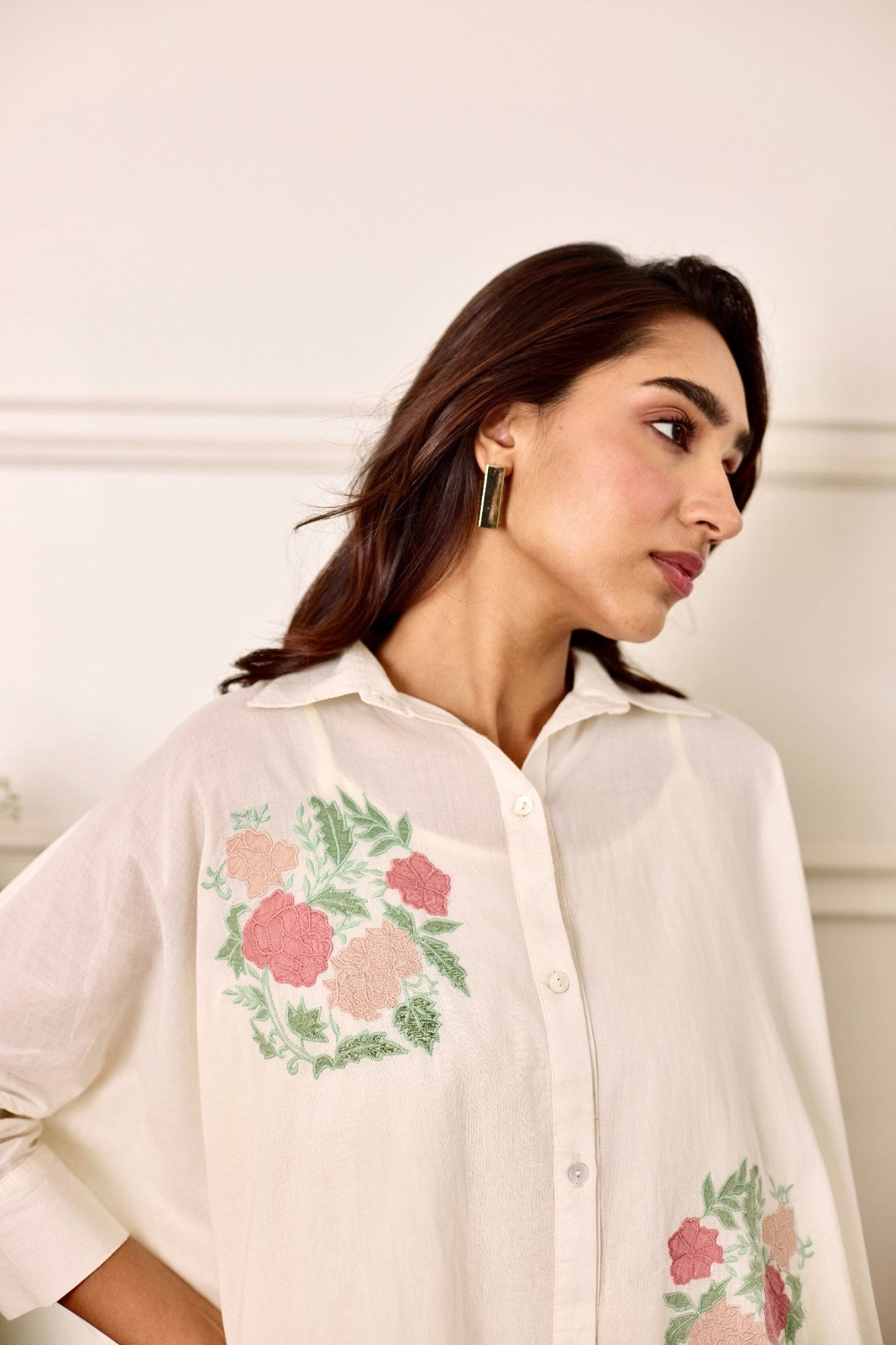 Rosette milky white multicolor patchwork mulmul shirt