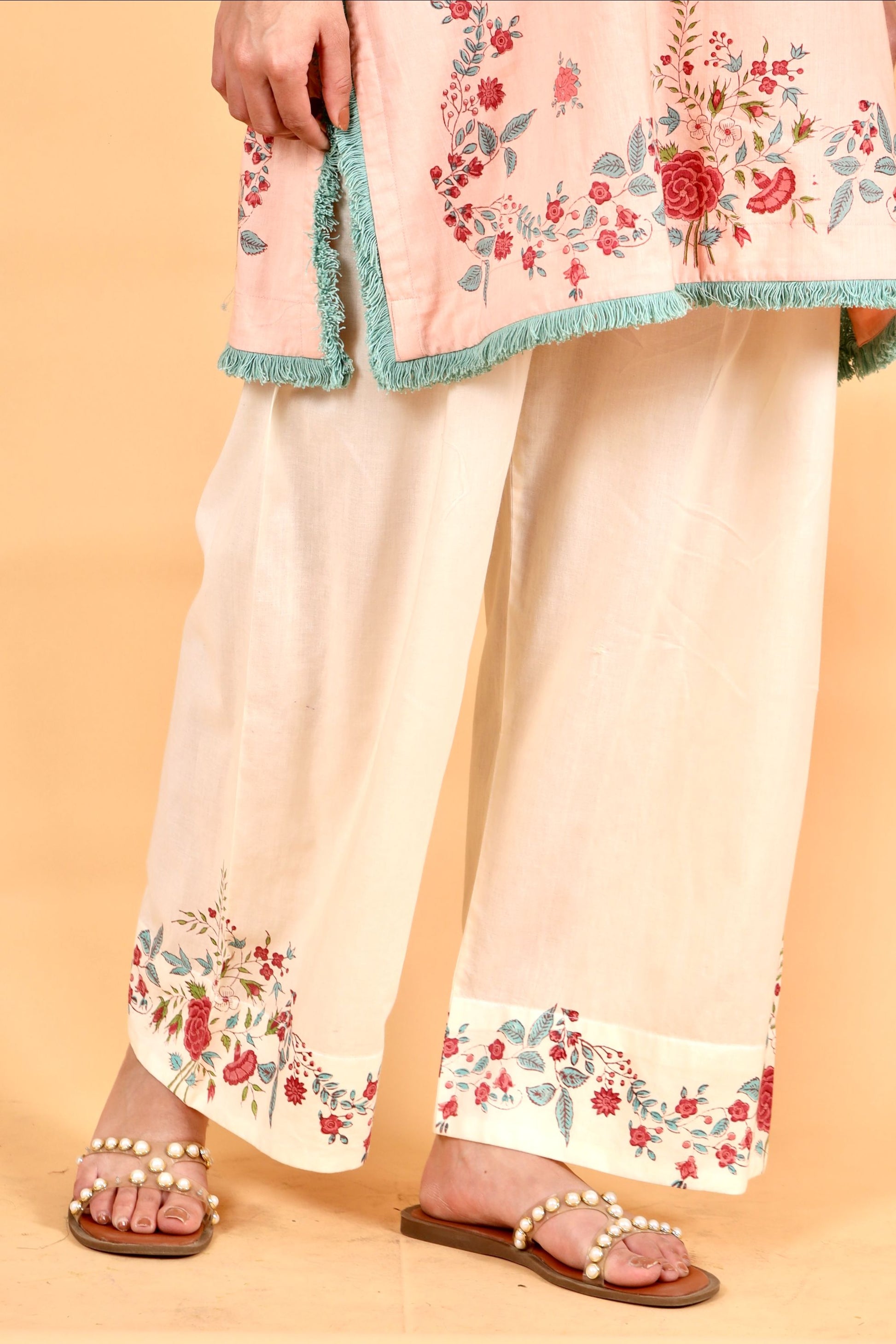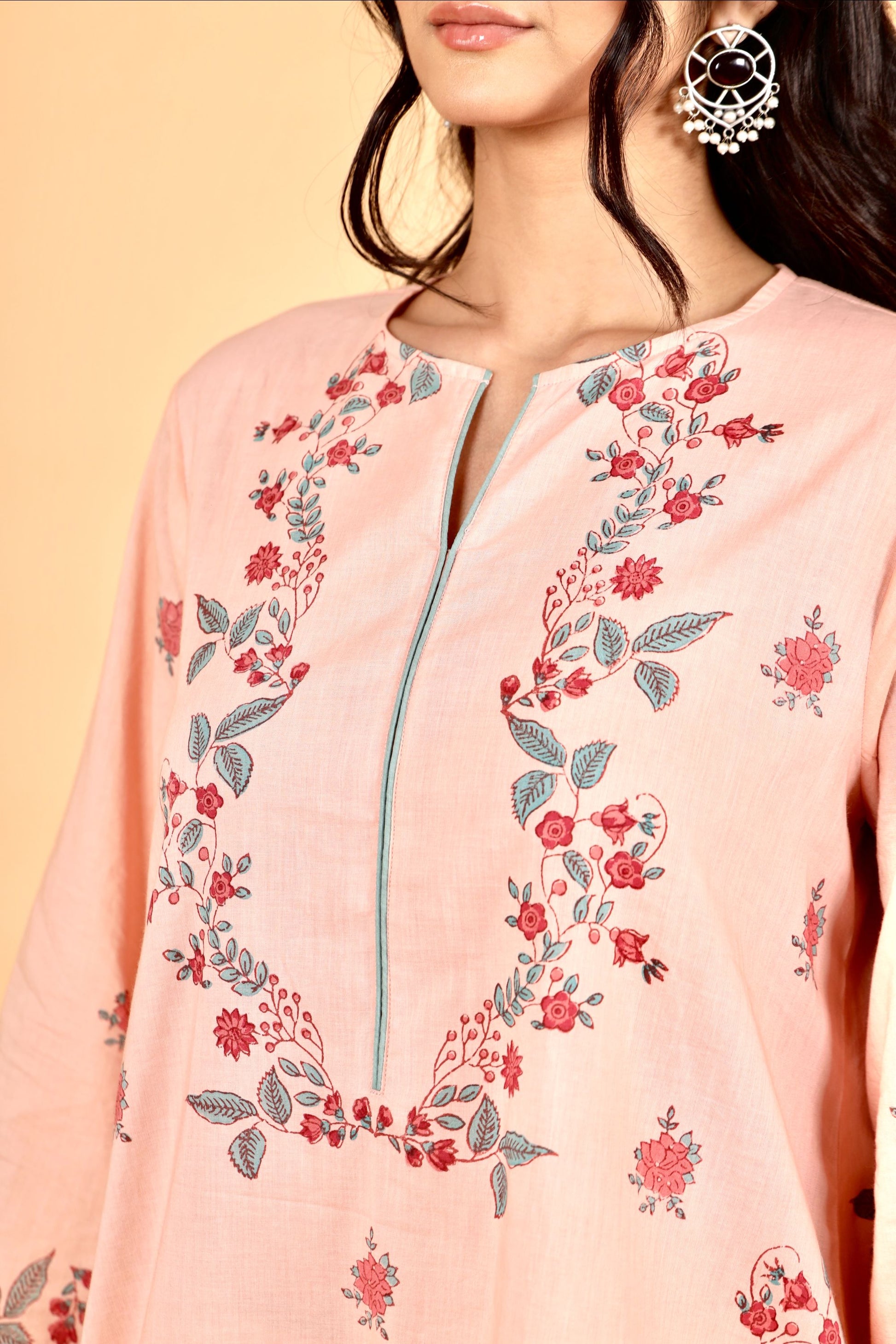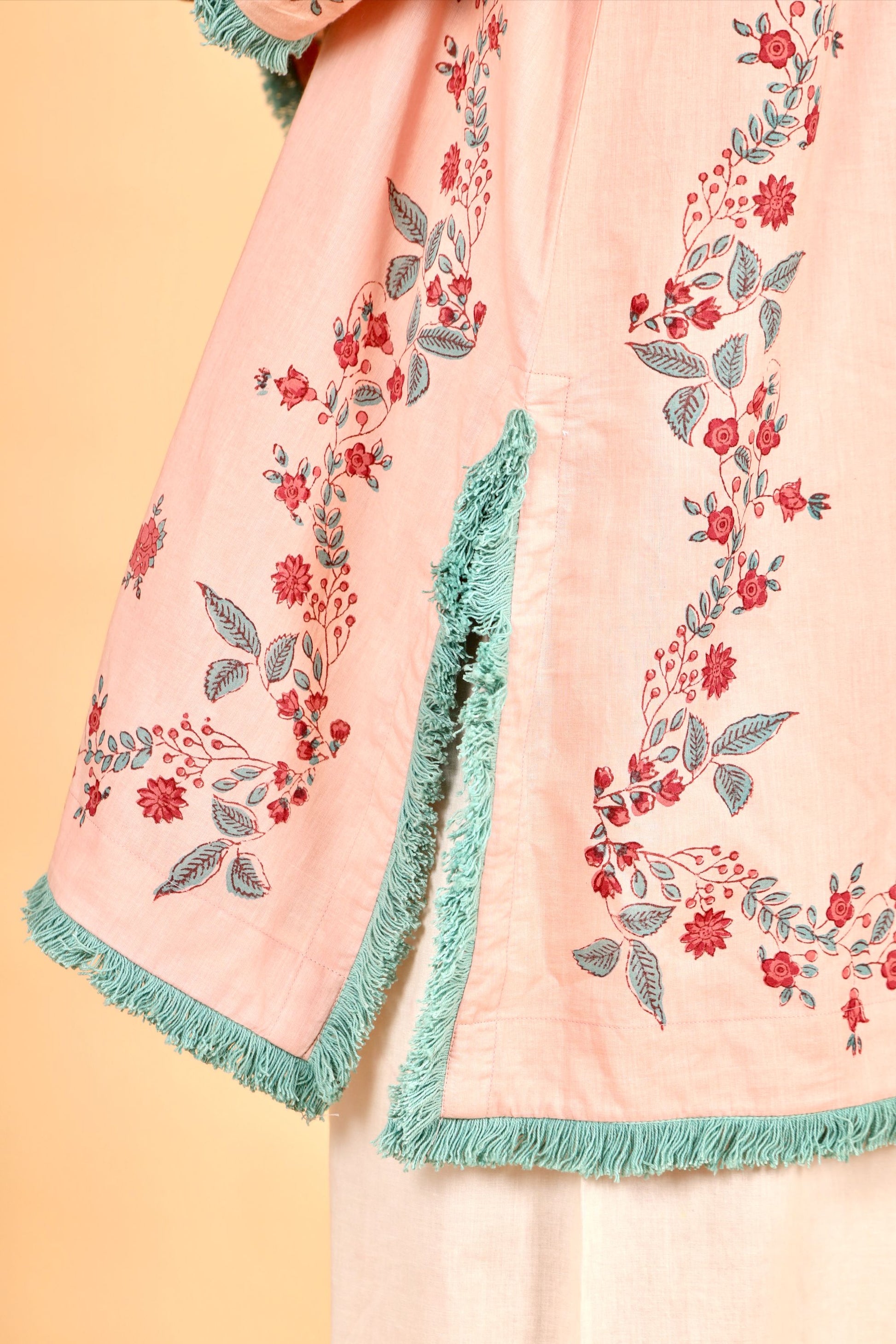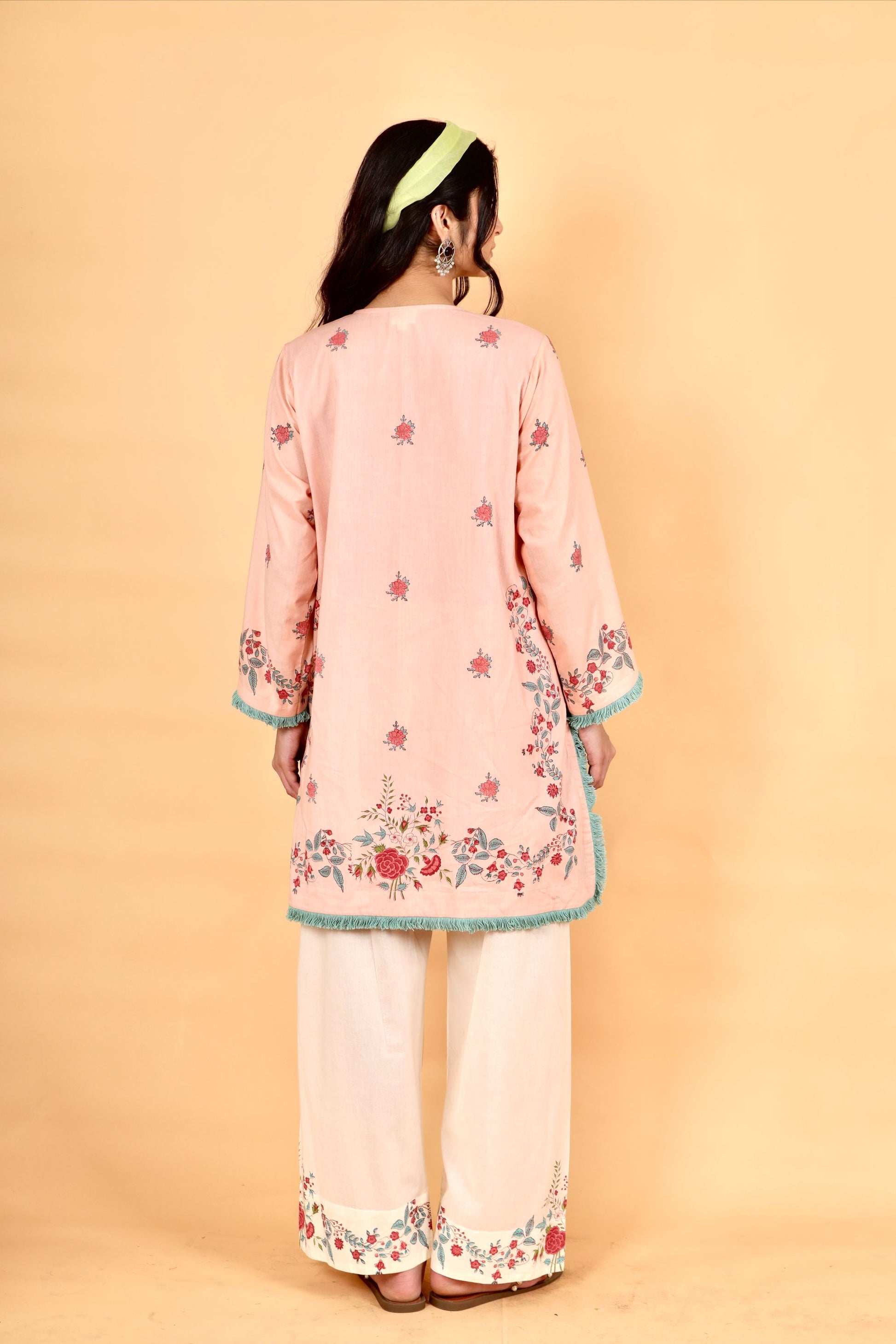 Sarah pink hand block printed cotton short kurta set