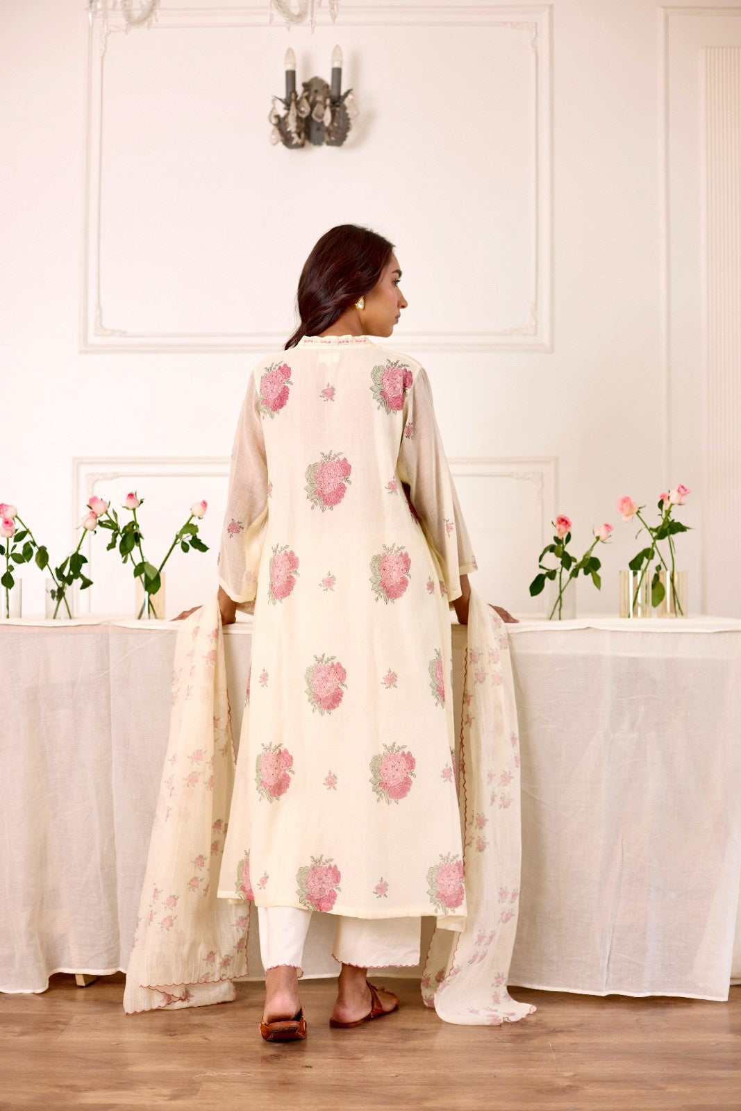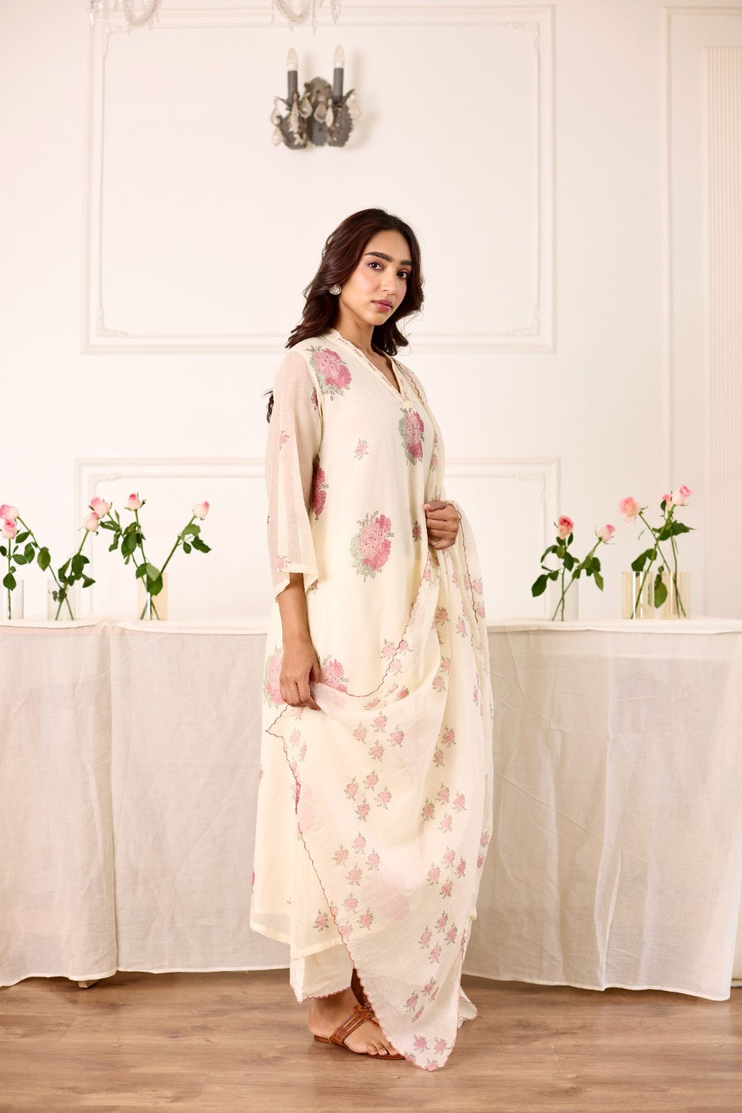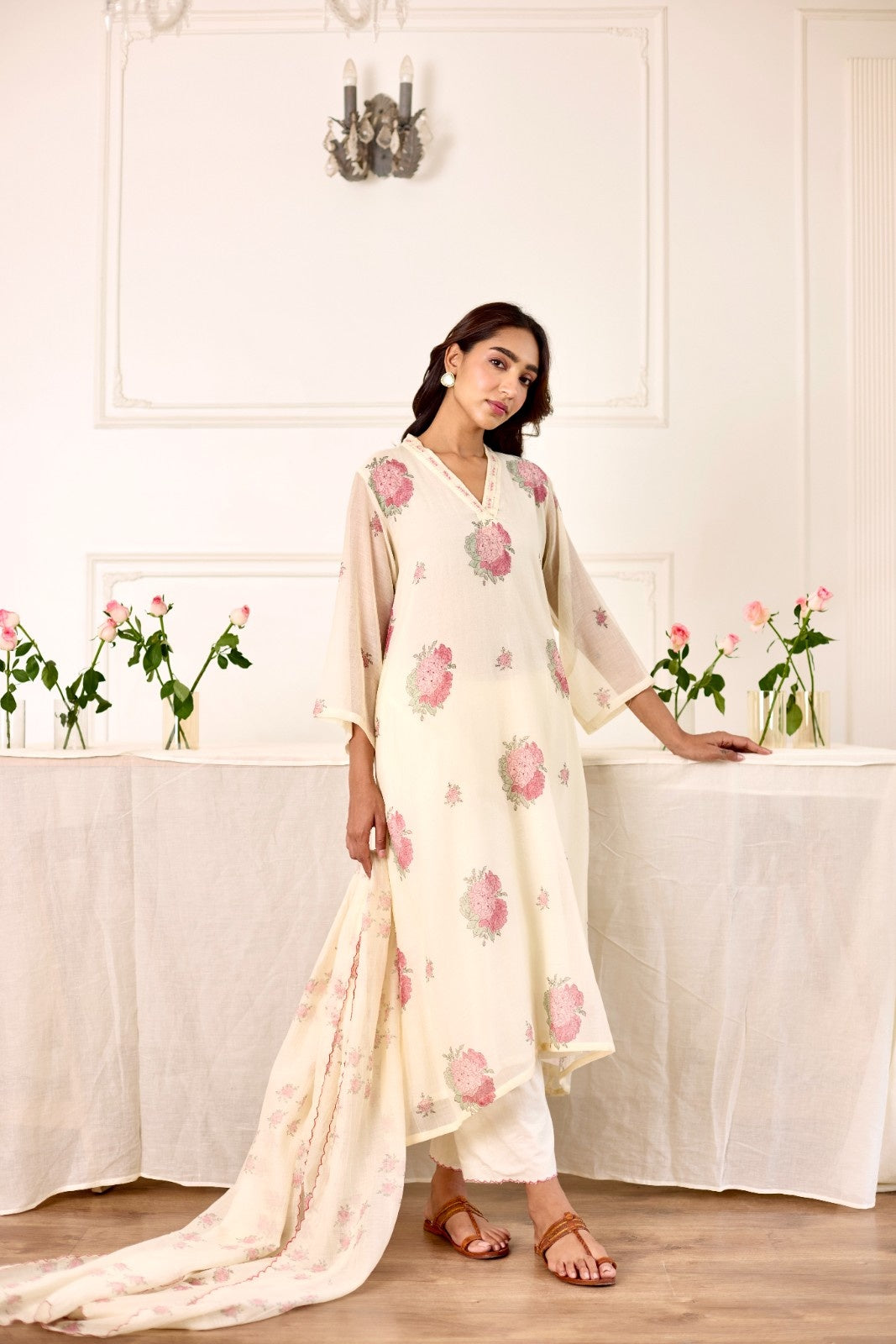 Serene milky white hand block printed chanderi kurta set (set of 3)