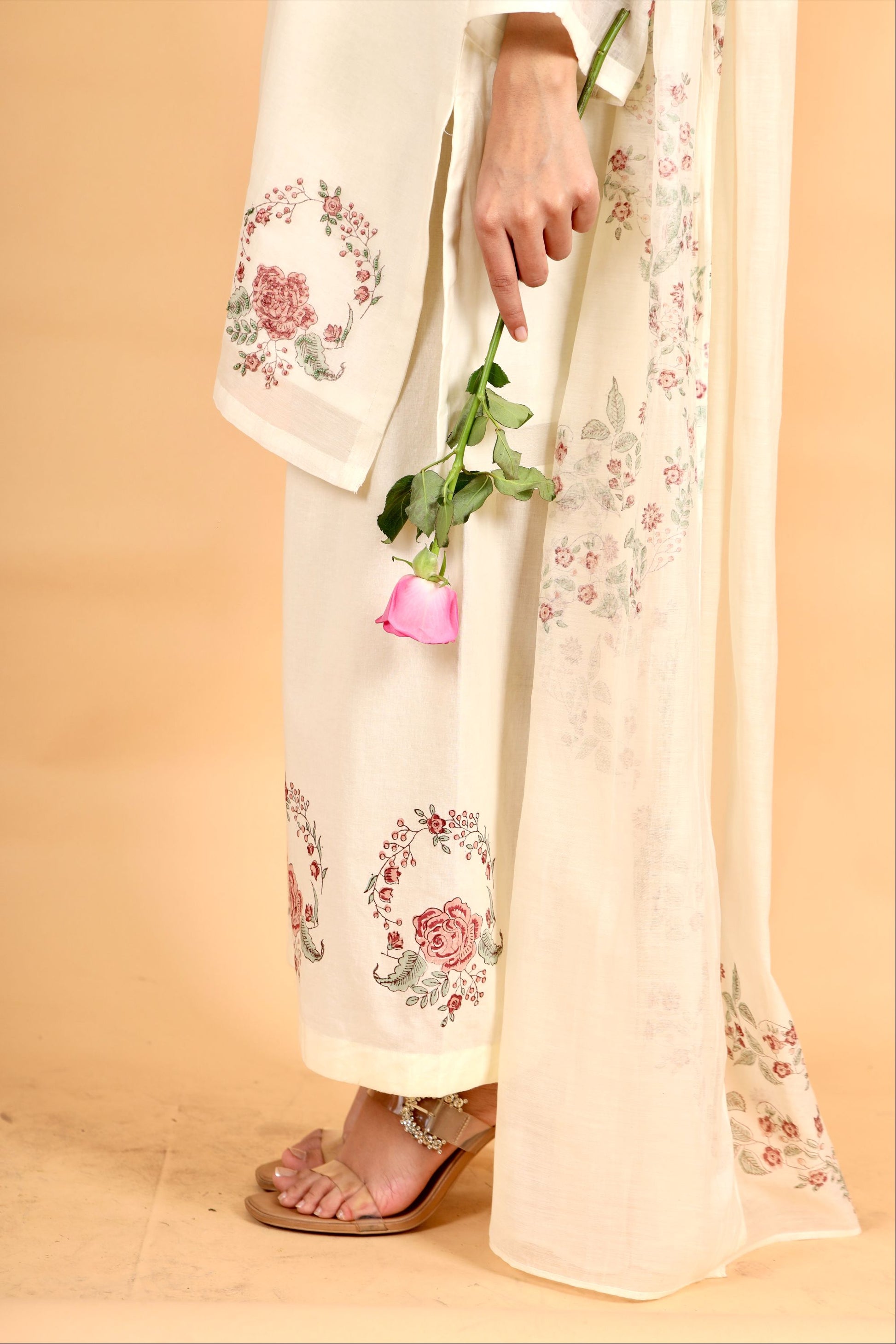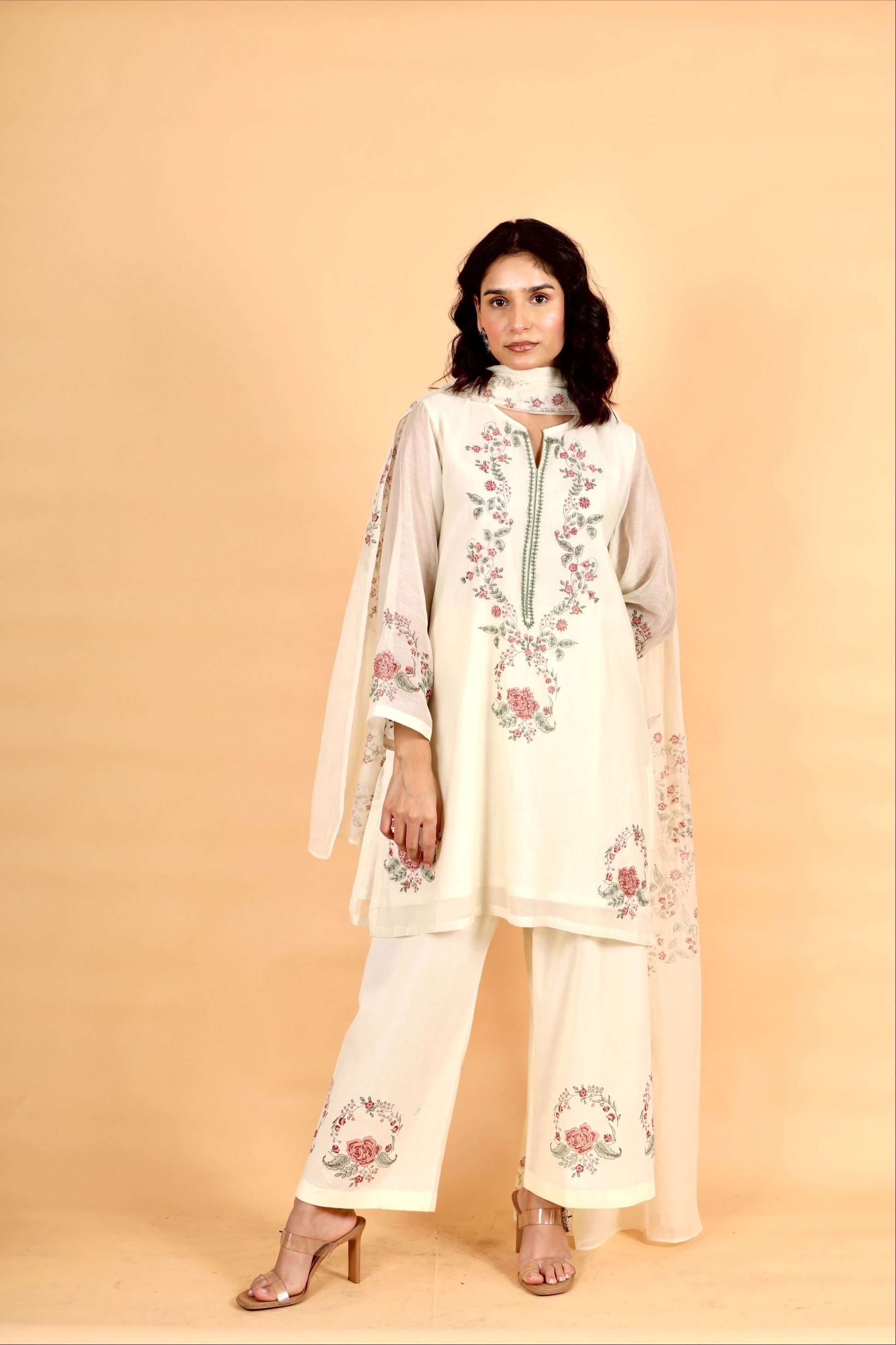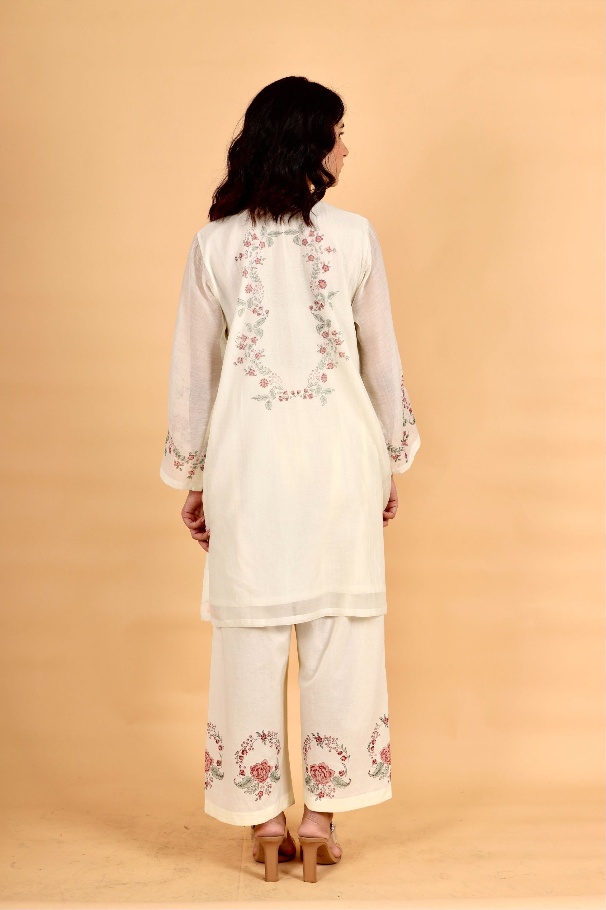 Sitara milky white hand block printed chanderi short kurta set
