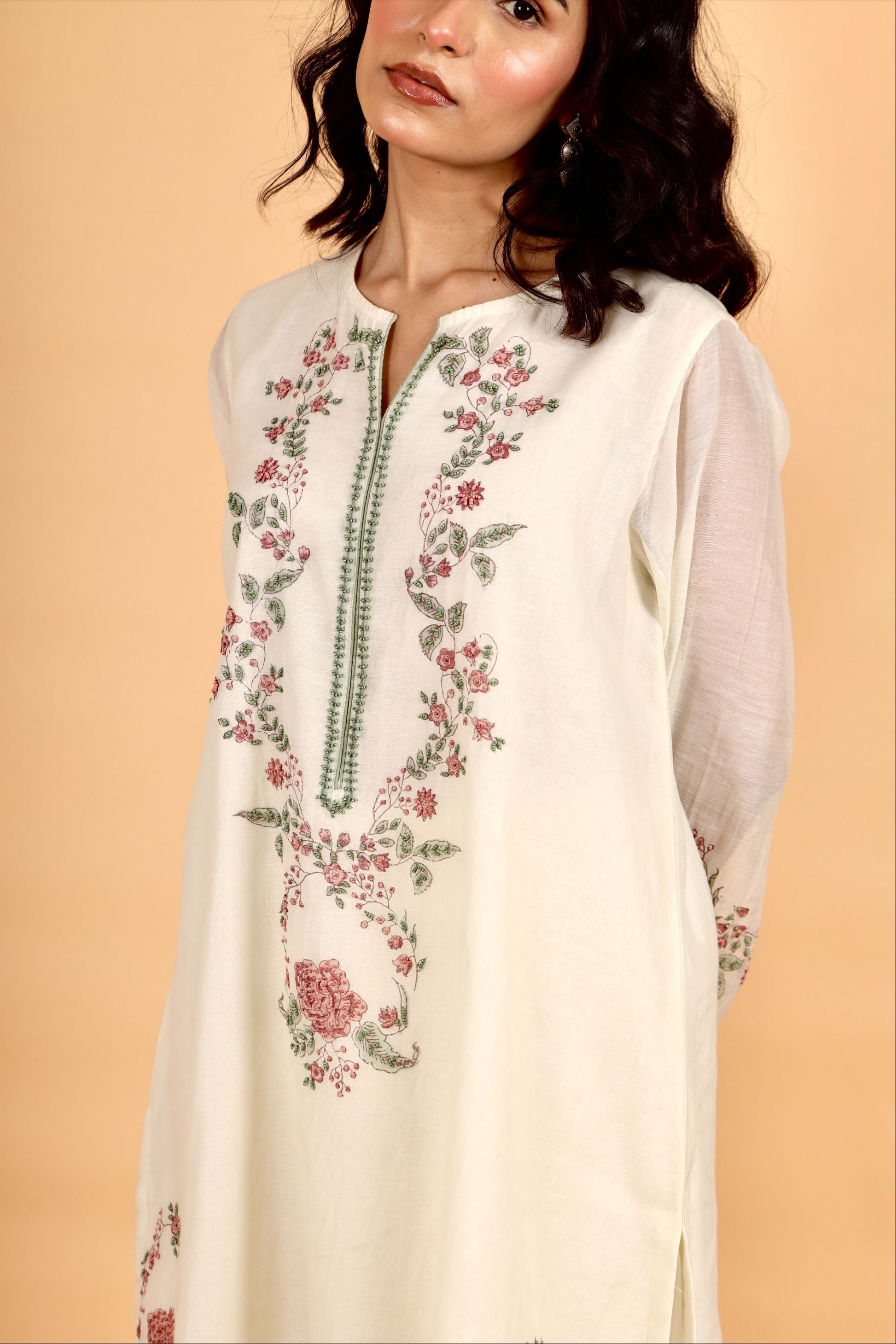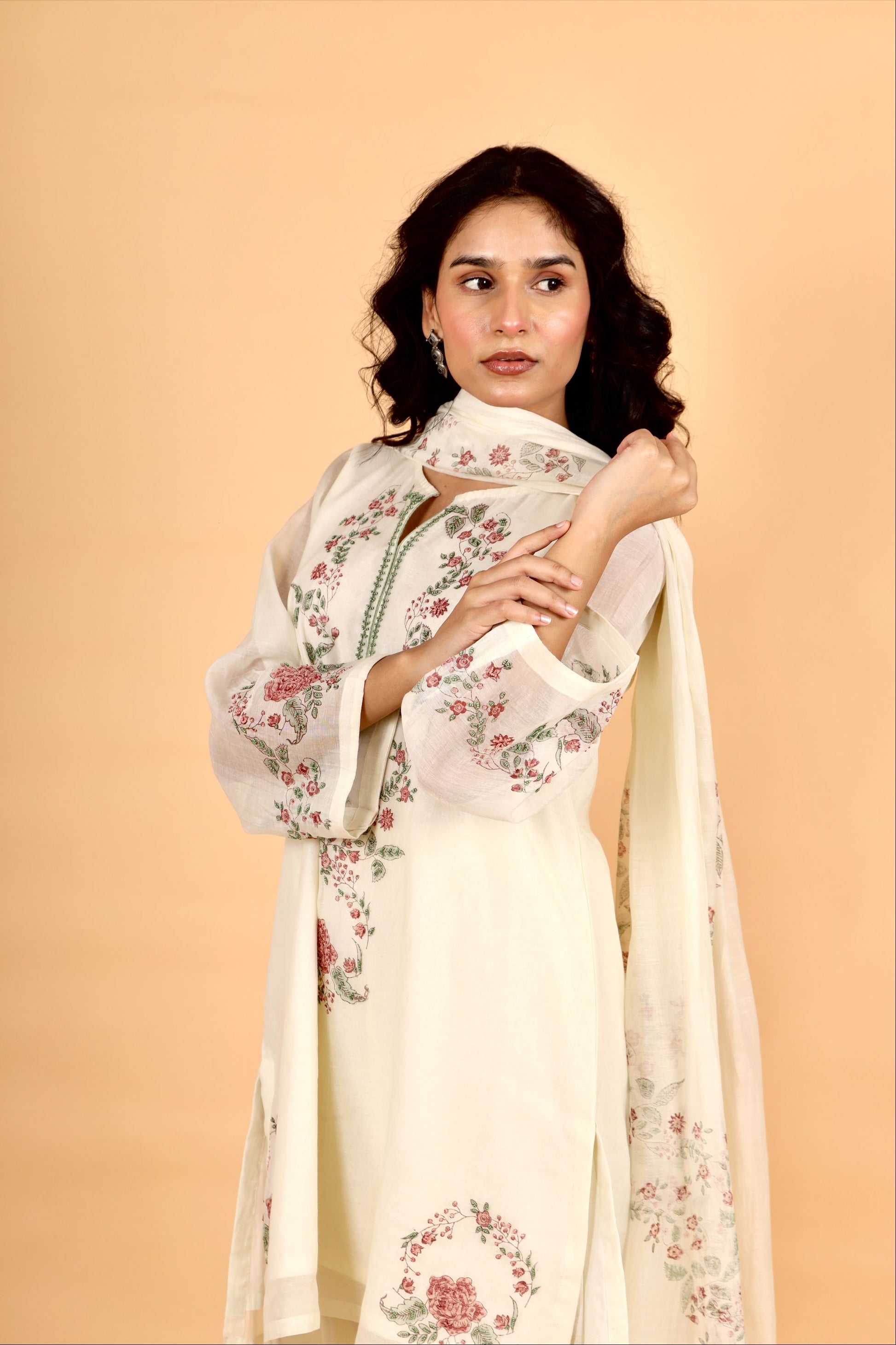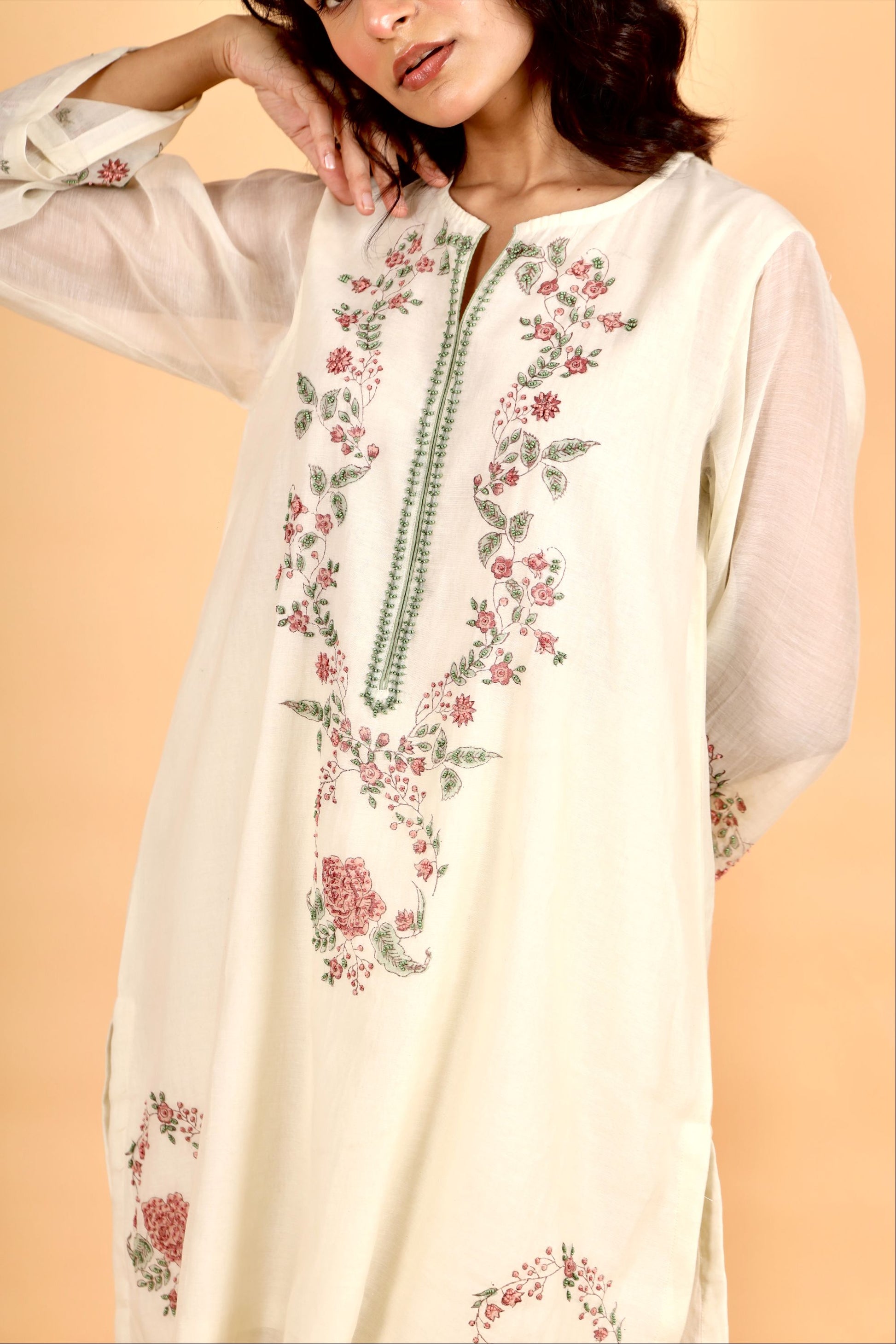 Sitara milky white hand block printed chanderi short kurta set